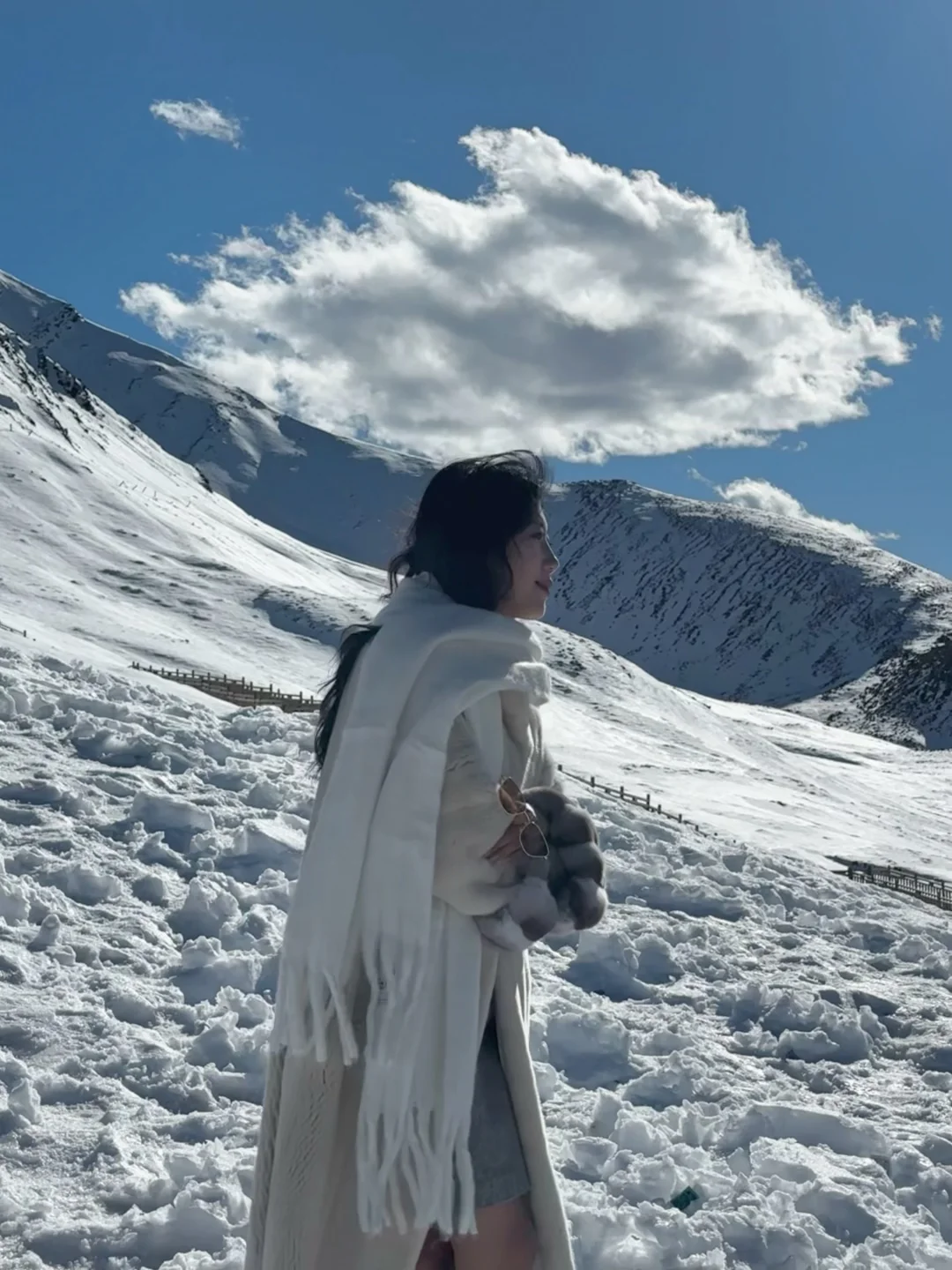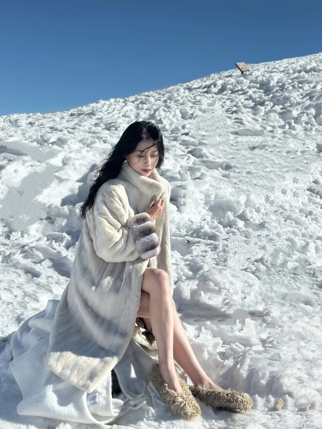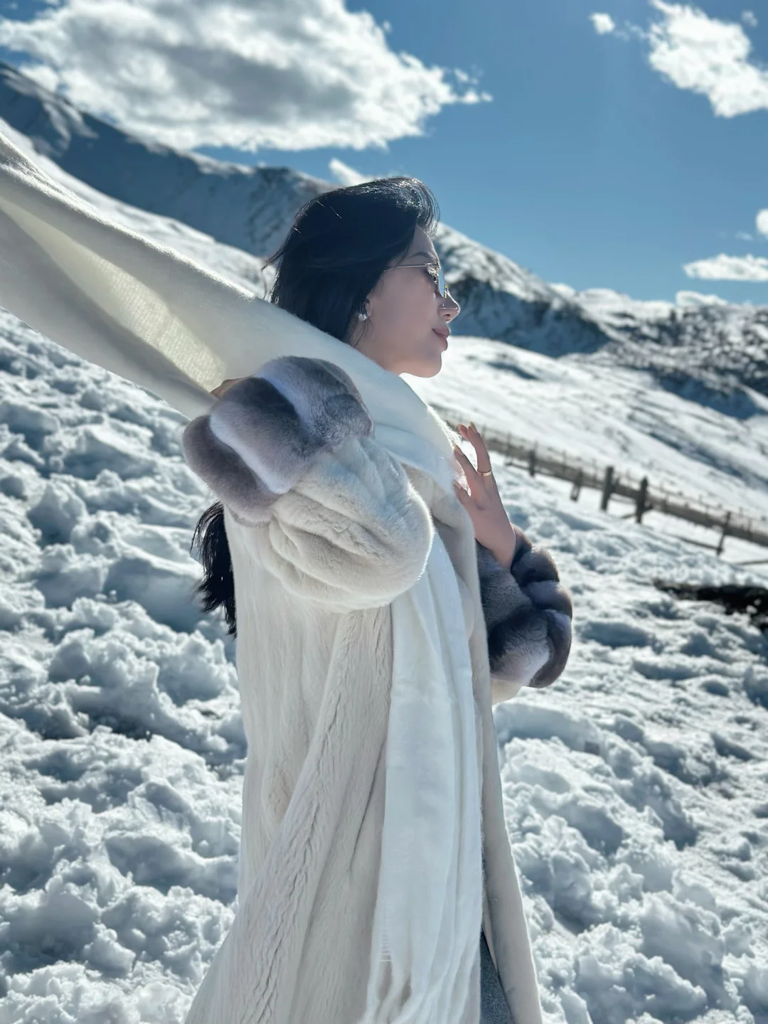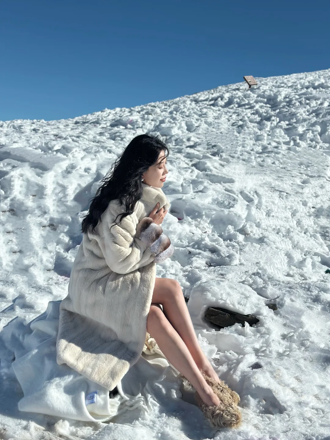 雪落下来的时候,世界忽然就静了。 穿着那件爱的皮草去往雪山之地,手指陷进丰盈的绒毛里,便觉着这个冬天再寒冷也可以安然度过。 穿着它走进雪地,脚步不自觉地慢下来。皮草包裹着会呼吸的暖,风在毛尖打着旋儿,却透不进肌肤。偶尔有雪花落在衣领上,久久不化。那双毛茸茸的单鞋也在雪地上留下深浅的印记。那份妥帖,仿佛把整个冬天的温柔都穿在了身上。 天地素白,而我希望自成风景。这大约就是冬天最诗意的穿法了——不为取悦谁,只为在岁暮天寒里,与自己好好相处。