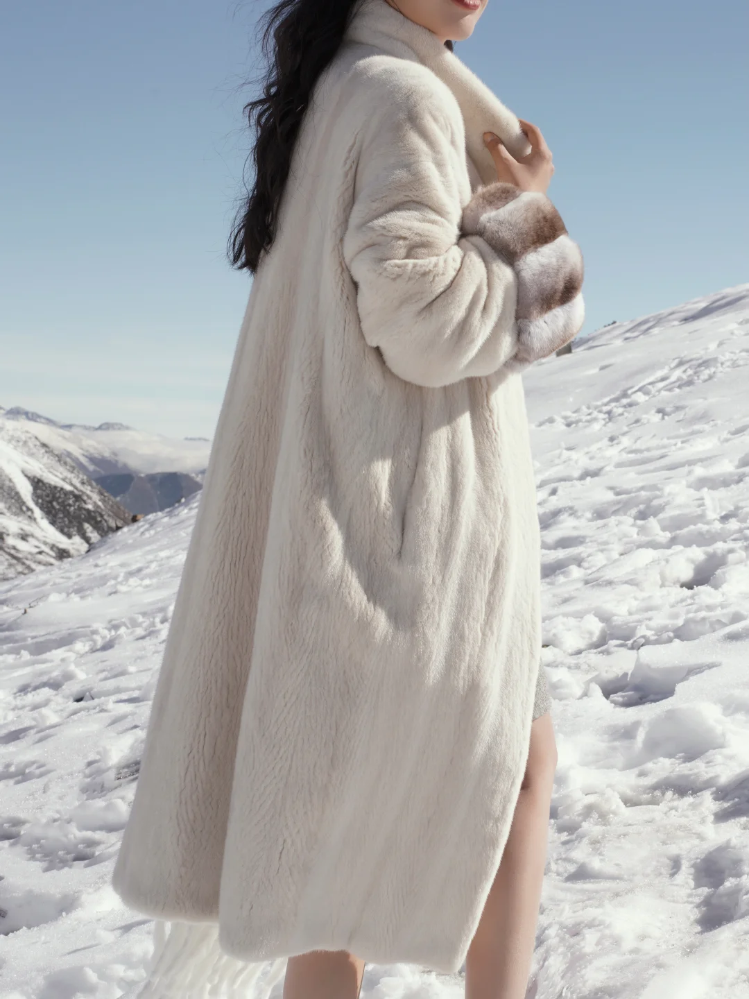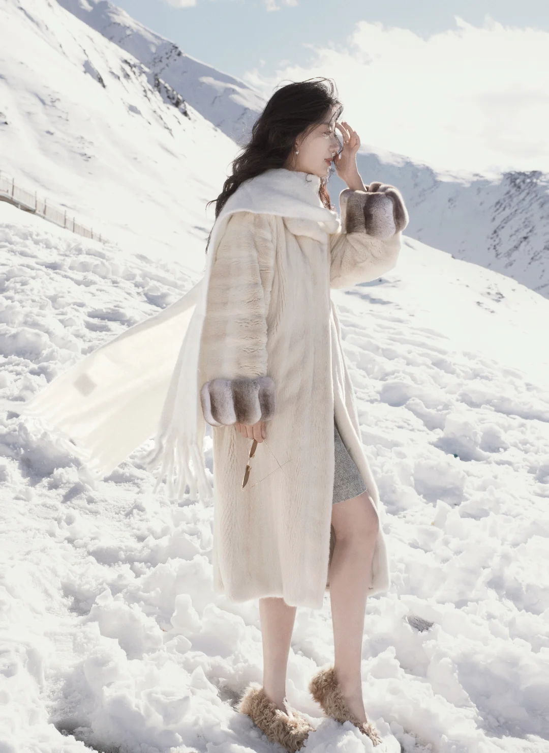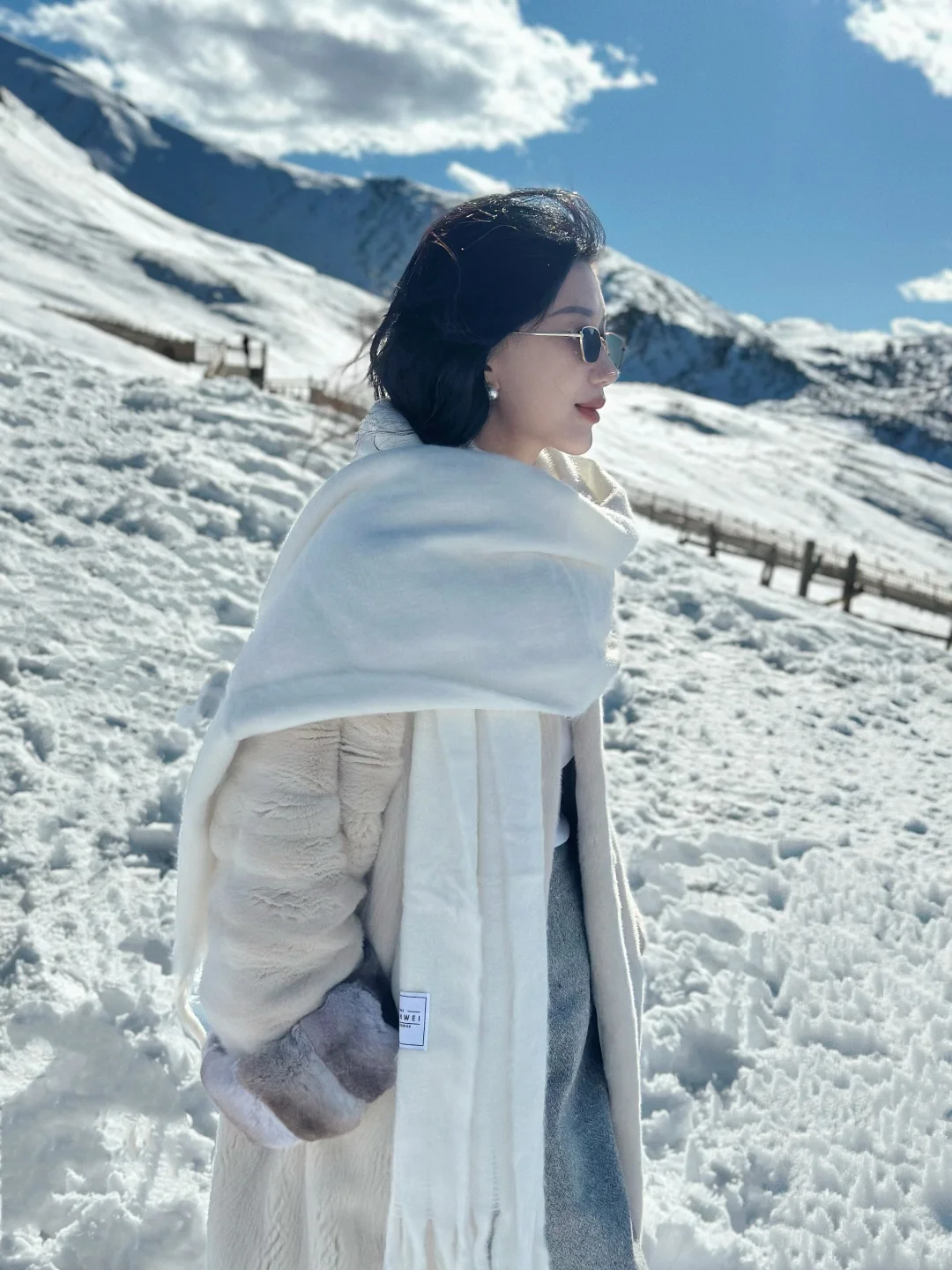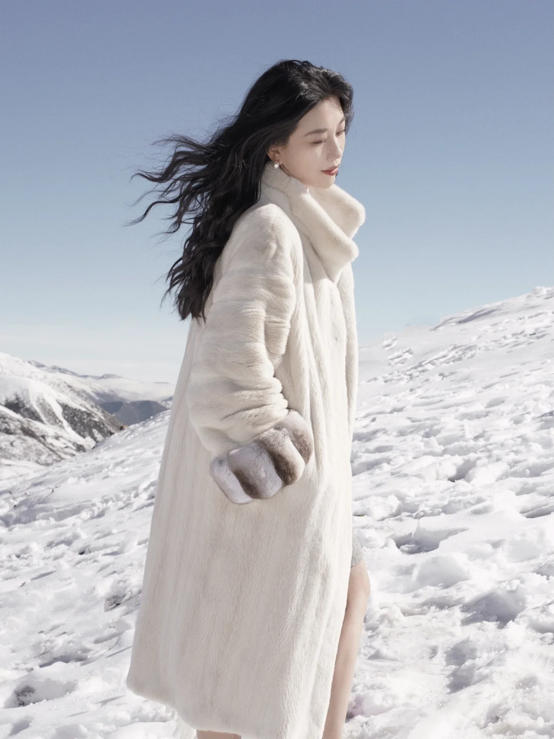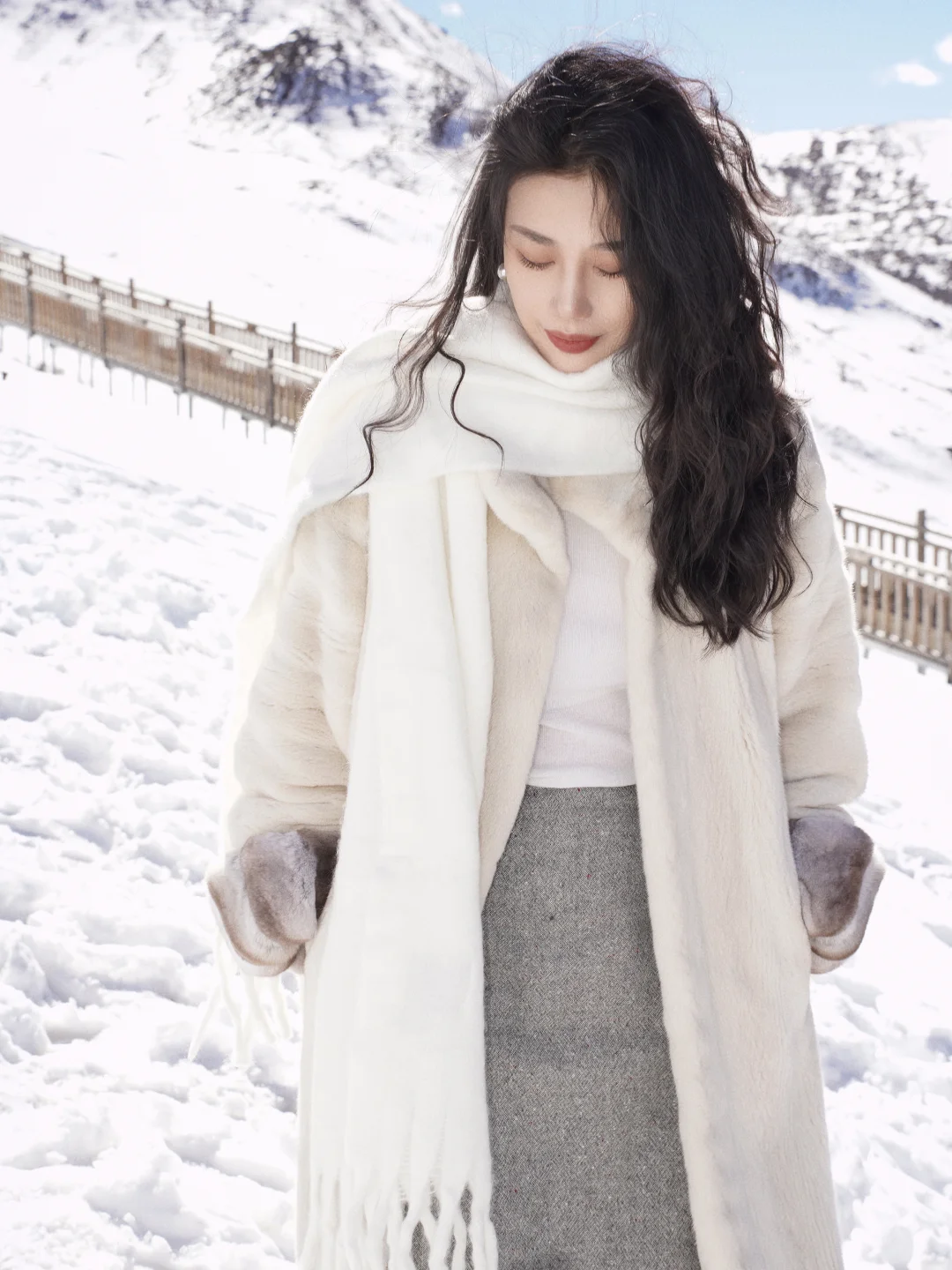 雪落下来的时候,世界忽然就静了。 穿着那件爱的皮草去往雪山之地,手指陷进丰盈的绒毛里,便觉着这个冬天再寒冷也可以安然度过。 穿着它走进雪地,脚步不自觉地慢下来。皮草包裹着会呼吸的暖,风在毛尖打着旋儿,却透不进肌肤。偶尔有雪花落在衣领上,久久不化。那双毛茸茸的单鞋也在雪地上留下深浅的印记。那份妥帖,仿佛把整个冬天的温柔都穿在了身上。 天地素白,而我希望自成风景。这大约就是冬天最诗意的穿法了——不为取悦谁,只为在岁暮天寒里,与自己好好相处。