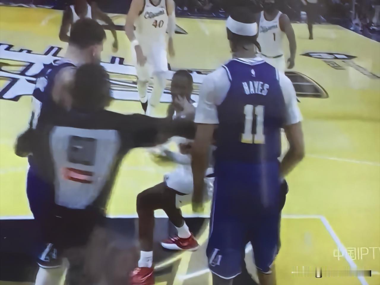 突发!!!NBA打起来了! 刚刚结束的湖人主场对阵快船比赛中, 惊现群殴。 比赛进行到第四节,临近结束4分钟左右, 比分来到湖人123:113快船之际。 湖人东契奇持球进攻, 遭到快船邓恩暴力犯规。 东契奇爬起来找邓恩理论, 被邓恩拿皮球狠狠砸向胸口。 东契奇打球行,全场最高43分。 但打架不行。 队友海斯看不下去了, 从后面重重的推了邓恩一把, 邓恩回手就是一勾拳, 打在海斯凯尔面部。 此时,众人把双方拉开, 事件没有再升级。 裁判判罚邓恩两次技术犯规, 被驱逐出场! 最终场上比分定格在湖人135:128快船。 本次冲突全程,双方老将都没有参与。 看东契奇那不经世事的小眼神。