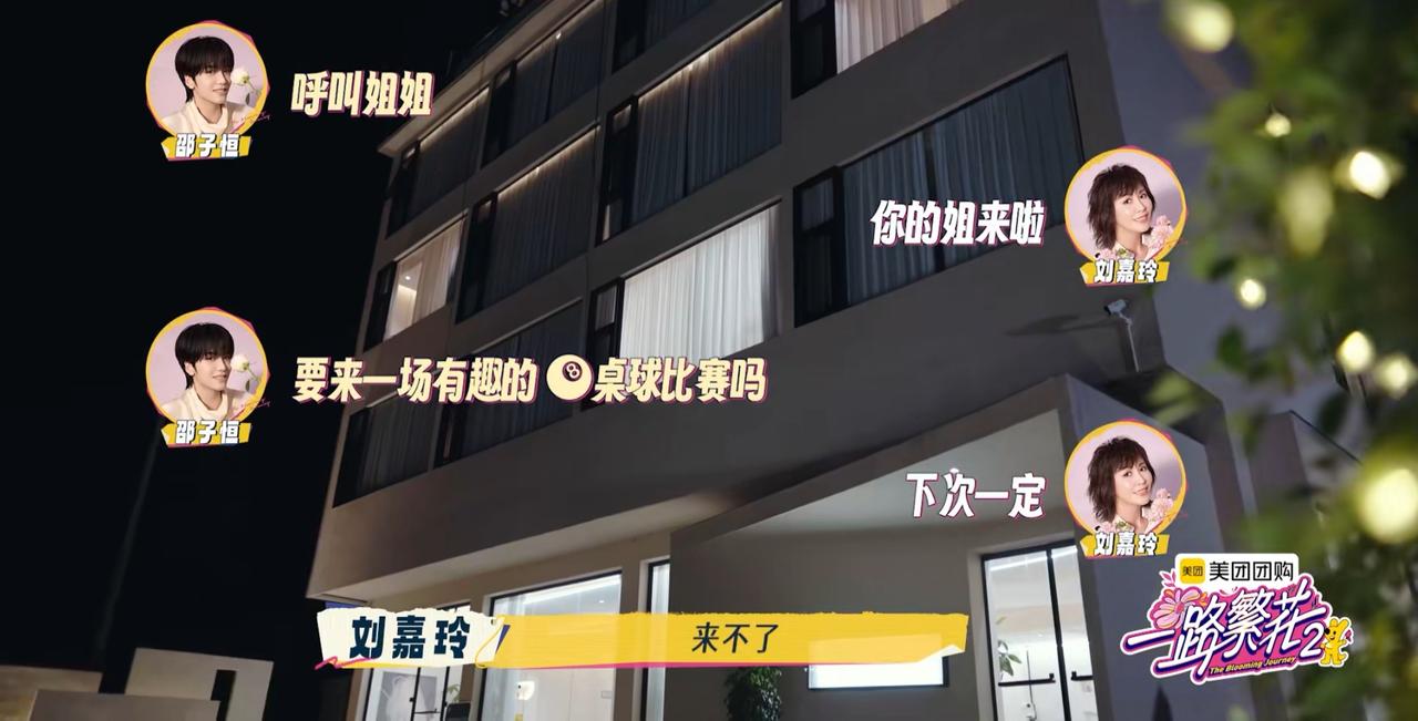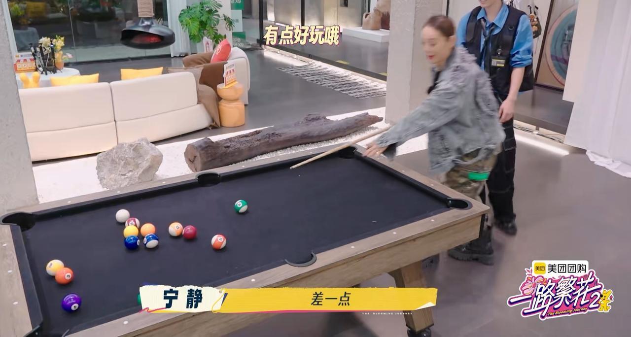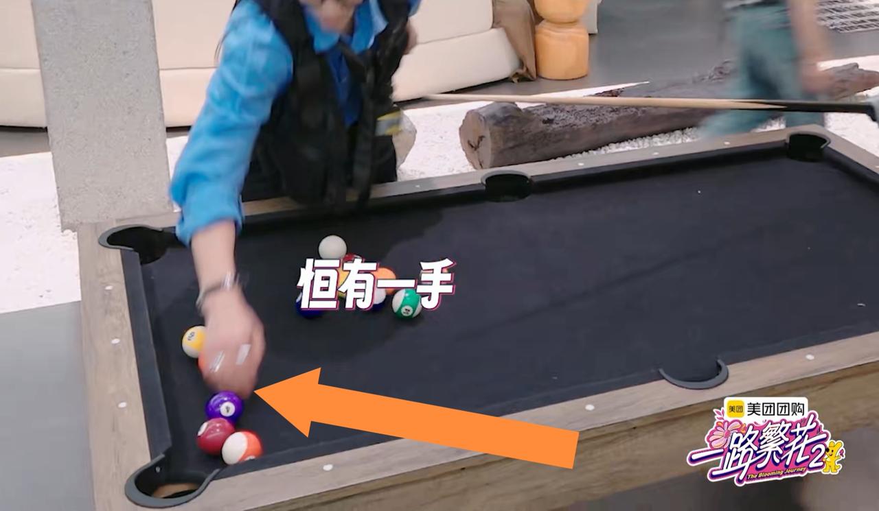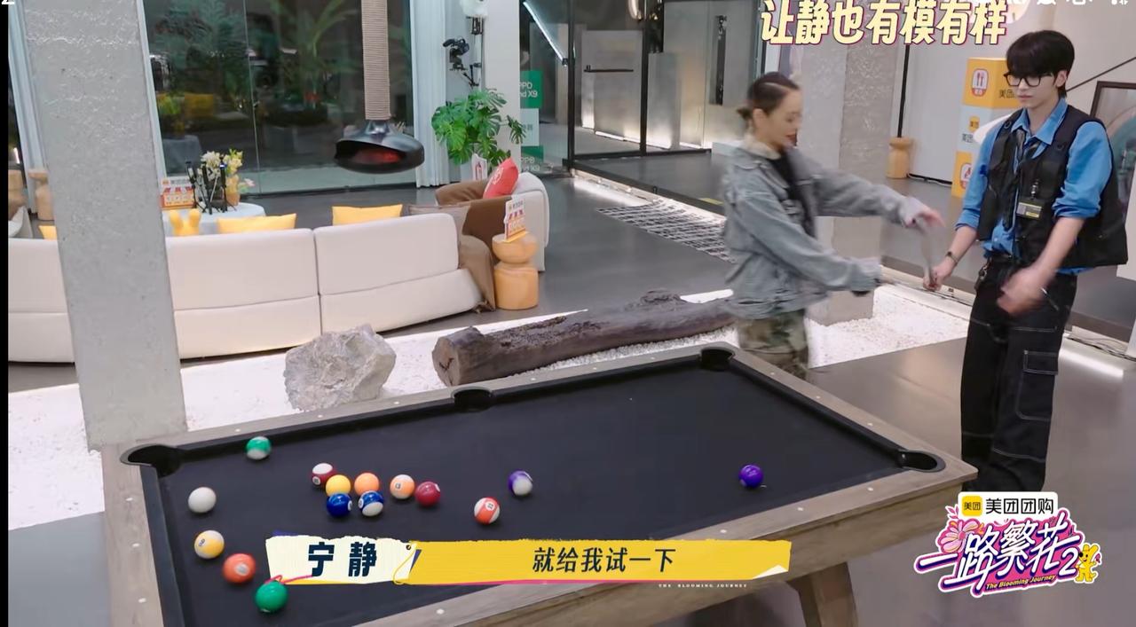 邵子恒在宁静面前这样操作, 宁静看了一眼, 想翻“白眼”。 邵子恒在玩台球, 第一个邀请的就是刘嘉玲。 哎呀, 这个情景是不是很熟悉, 对了, 上次邵子恒,柯淳买了烧烤 也是只邀请了刘嘉玲, 看来他们跟刘嘉玲玩得最好, 关系最铁。 还有一个原因, 就是别看刘嘉玲年纪大, 但是她是最容易尝试新事物的, 能够跟年轻人玩在一起的, 开得起玩笑, 一点都不生气, 没有长辈架子。 结果刘嘉玲过来一看, 觉得太简单了, 不想玩, 但是她没有走开, 就看着弟弟玩, 情绪价值拉满。 宁静看到邵子恒打台球, 不请自来, 要求要学习打, 就这样一顿教学操作下来, 宁静可以自己打了, 结果差一点球就进洞了。 邵子恒于是来了一个“神操作”, 直接用手把球推进洞里, 假装是宁静打进洞的。 宁静看到邵子恒这的操作都无语了, 就觉得小孩子把戏, 邵子恒这个把戏逗逗其他小姑娘 一点很好用, 但是遇到“静姐”, 就有点幼稚了。