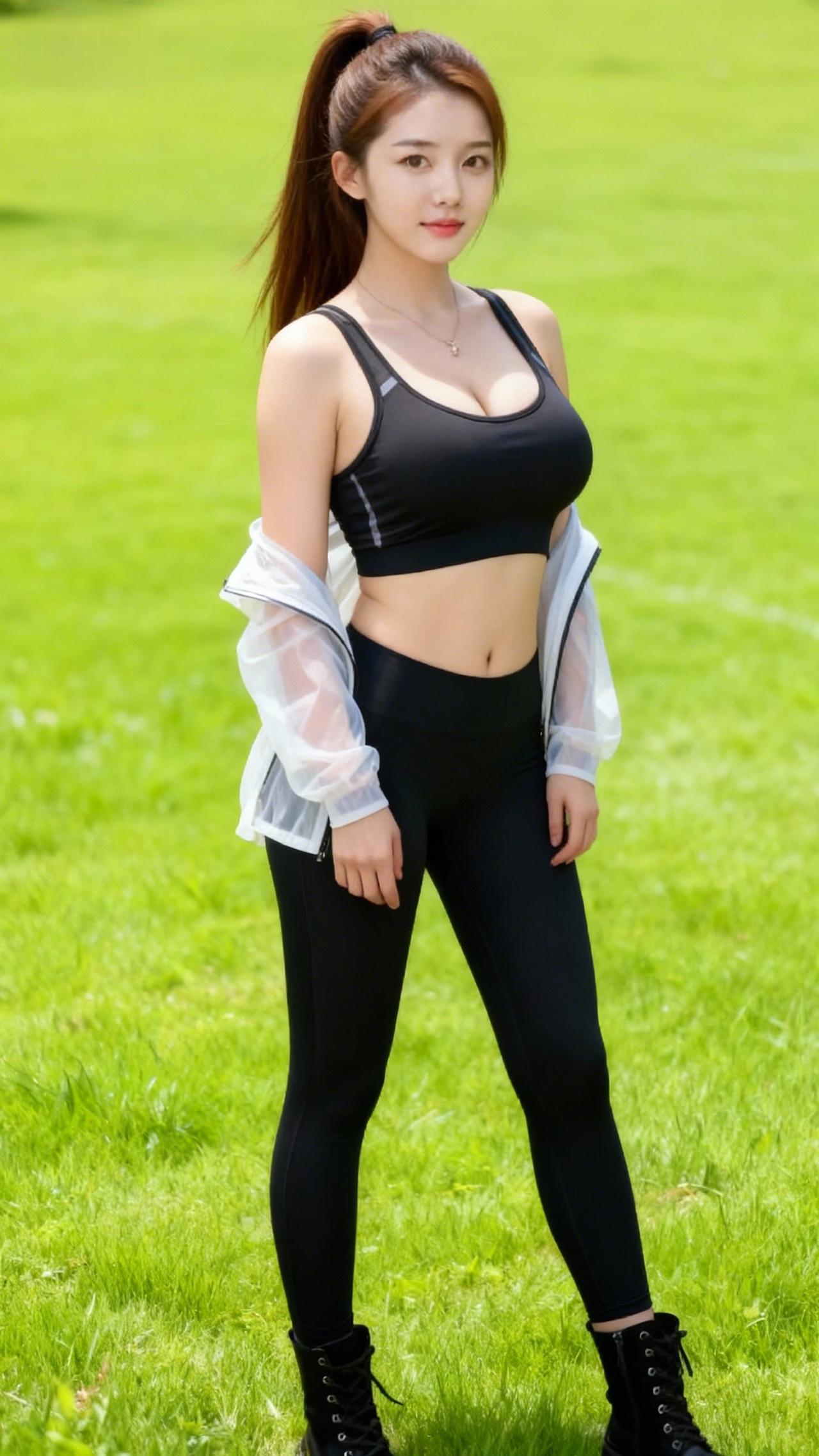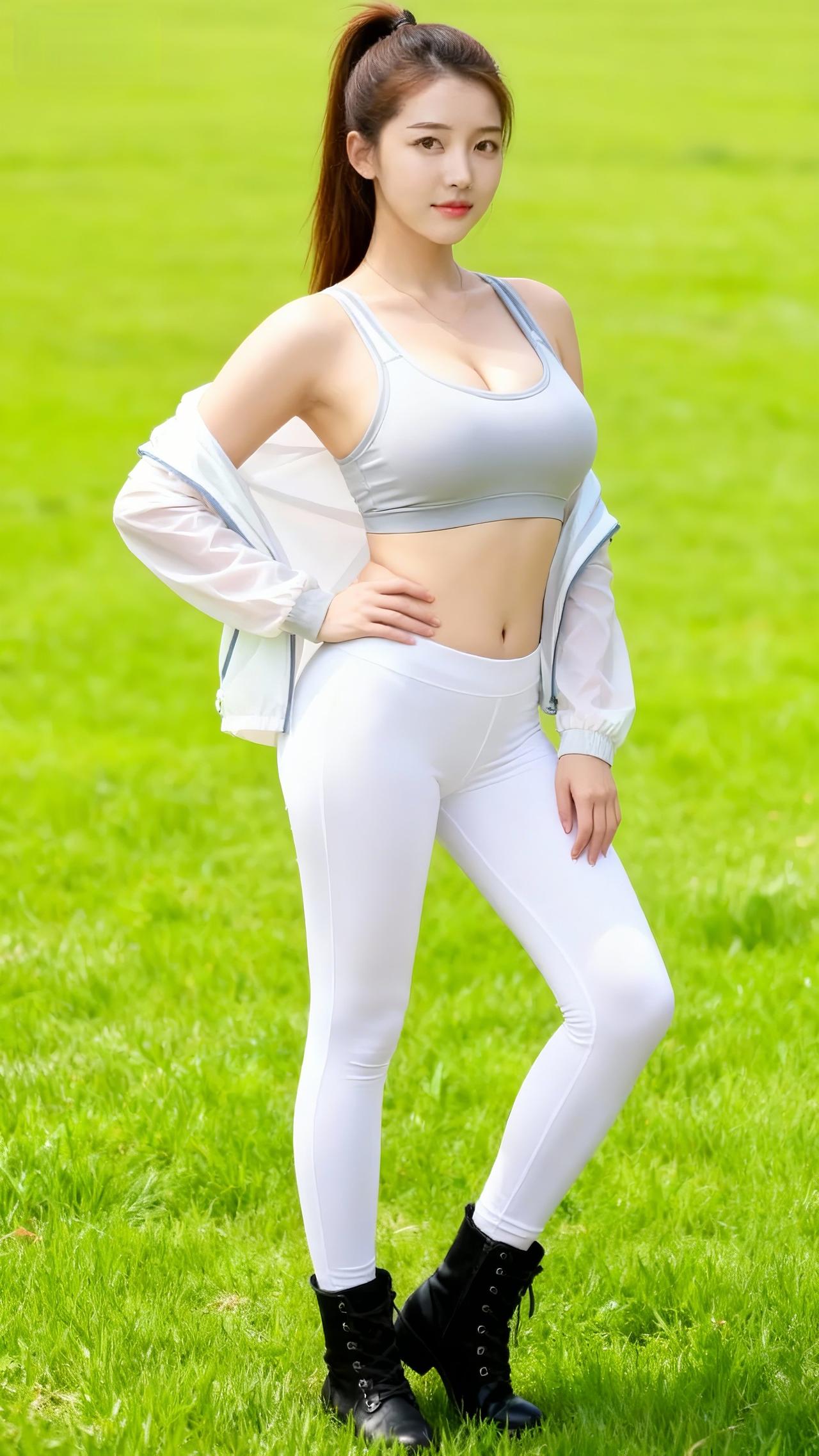 紧身裤+运动背心+防晒衣:运动风穿搭,清爽又吸睛!这身穿搭把运动风的清爽与吸睛感拉满:浅灰运动背心衬出利落线条,外搭轻薄透白防晒衣,既防晒又添了层清透氛围感;高腰纯白紧身裤贴合身形,衬得腿部线条修长,脚下黑色短靴则为柔美感加了点酷飒劲儿。草坪背景衬得整套look更显干净鲜活,松弛又亮眼,是日常出街或轻运动都适配的元气穿搭~做你女朋友好不?