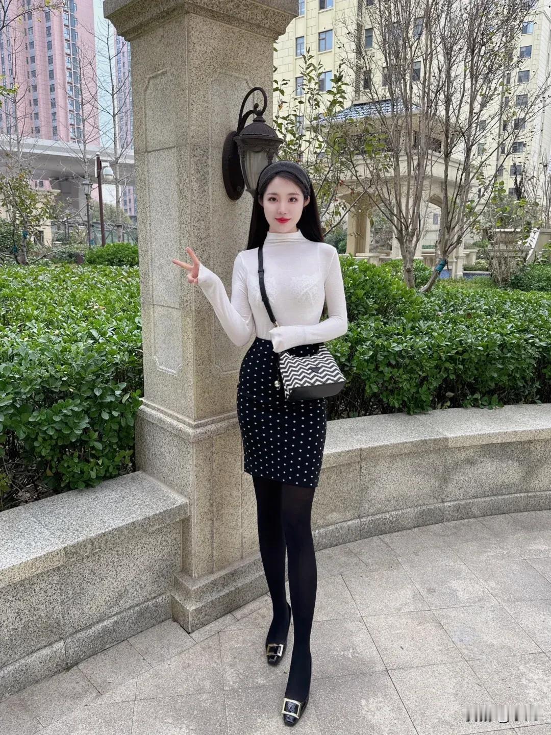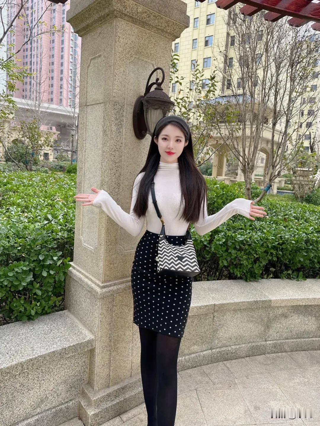黑丝袜搭配波点裙,时尚又可爱。时尚街拍怎么能让人过目不忘