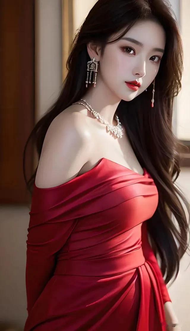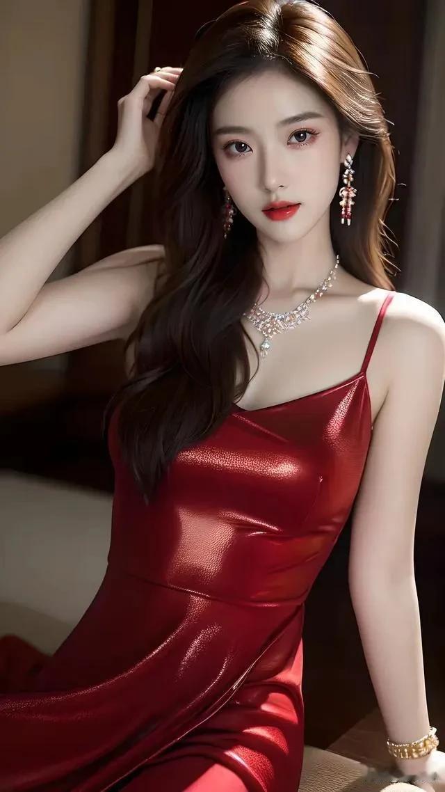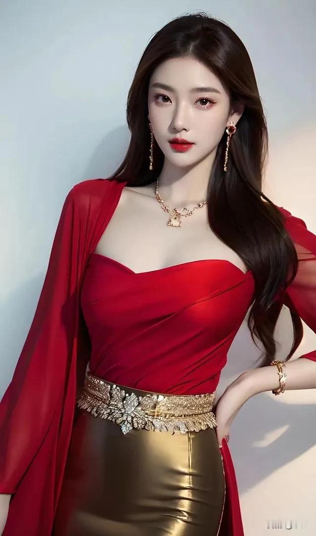 金光闪闪,华丽迷人!配上红色裙子,真是美翻了!女人长得漂亮重要吗