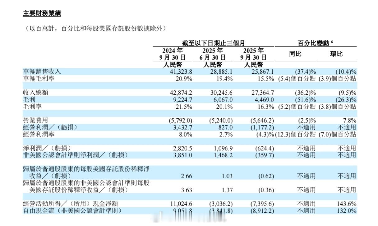 理想发布第三季度财报,MEGA召回影响,从盈利开始亏损了营收274亿,毛利率16.3%,剔除MEGA召回毛利率20.4%(召回成本近11亿);去年同期429亿,净亏损6.24亿汽车营收259亿,毛利率15.5%汽车交付93211,均价27.75万好消息是,理想i8和i6订单已经有10万,现在在产能加速交付