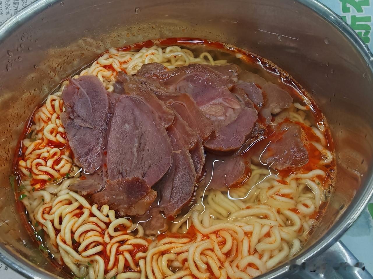 这个晚饭有些复杂了,尽管是泡面! 晚饭吃些啥,临近下班有了主意,在超市外送了二十块钱的牛肉和泡面,晚饭就来碗牛肉面吧! 小时候看方便面广告,特别是红烧牛肉面的,都是大块牛肉那种,尽管后来吃的时候牛肉是看不见的,还是很喜欢广告中那碗牛肉面的! 今晚把小时候的愿望给实现了,真不错,尽管是三十多年后。。。