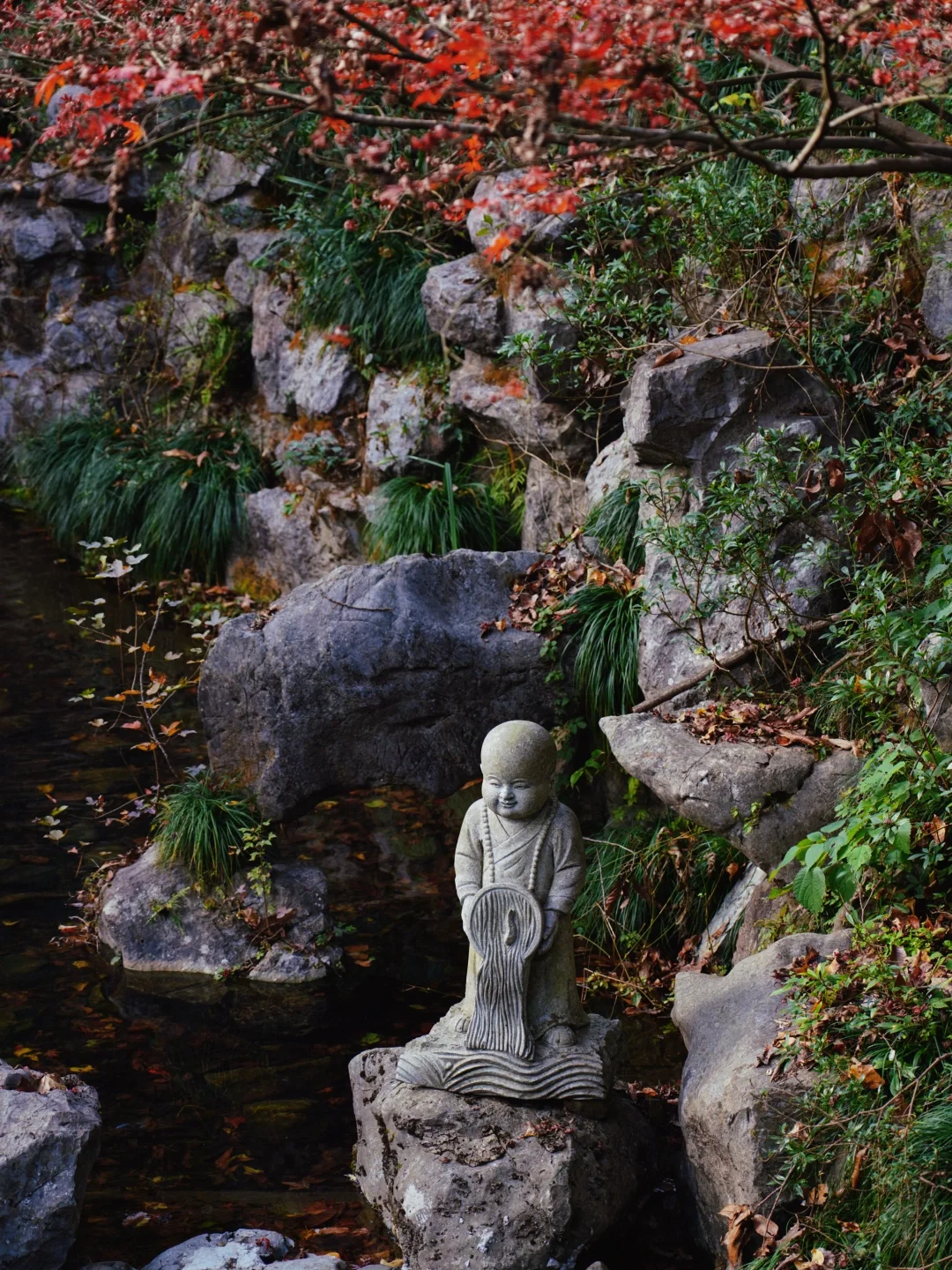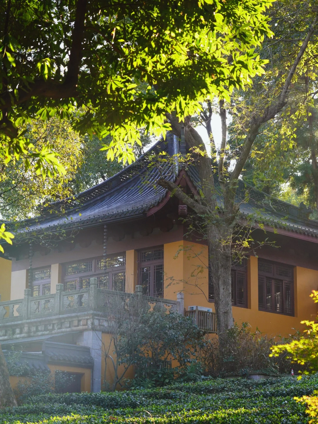 ❇️与旁边大名鼎鼎的“灵隐寺”相比,更喜欢这里的宁静与别致。这里以园林式院落见长,独特的地形使然,依山傍水,散落在青山翠林之间,深秋时节,红枫🍁掩映下的寺院更是禅意十足,美不胜收。