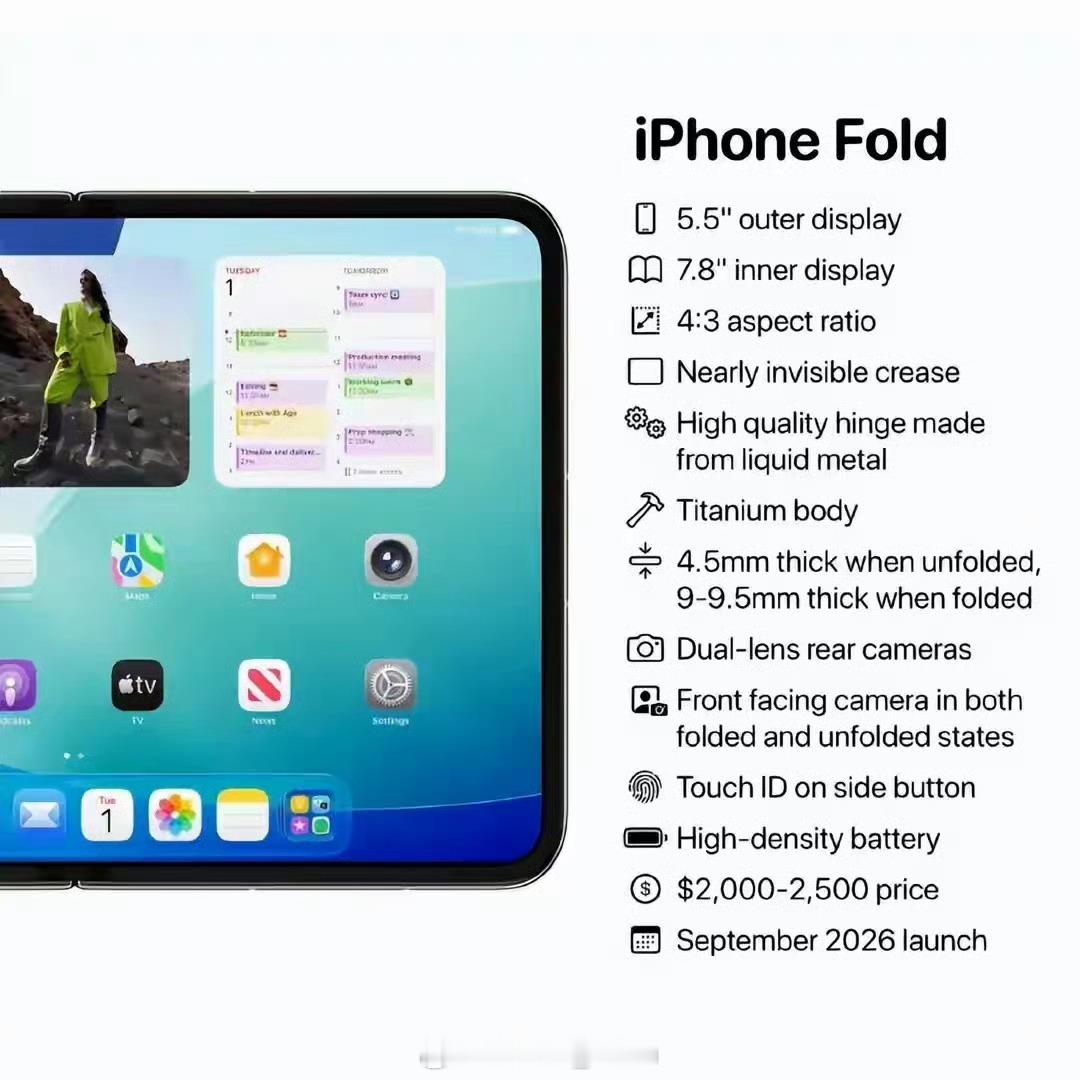 iPhoneFold三大亮点 诶不是如果是🈚️折痕的话那又是另说了2400万屏下摄像头感觉就OK啦加上5800mAh的电池估计是iPhone里面最大的电池了吧🔋那续航不得一雪前耻了咯 可是…如果像之前说的要2w的话好像有点贵了哈