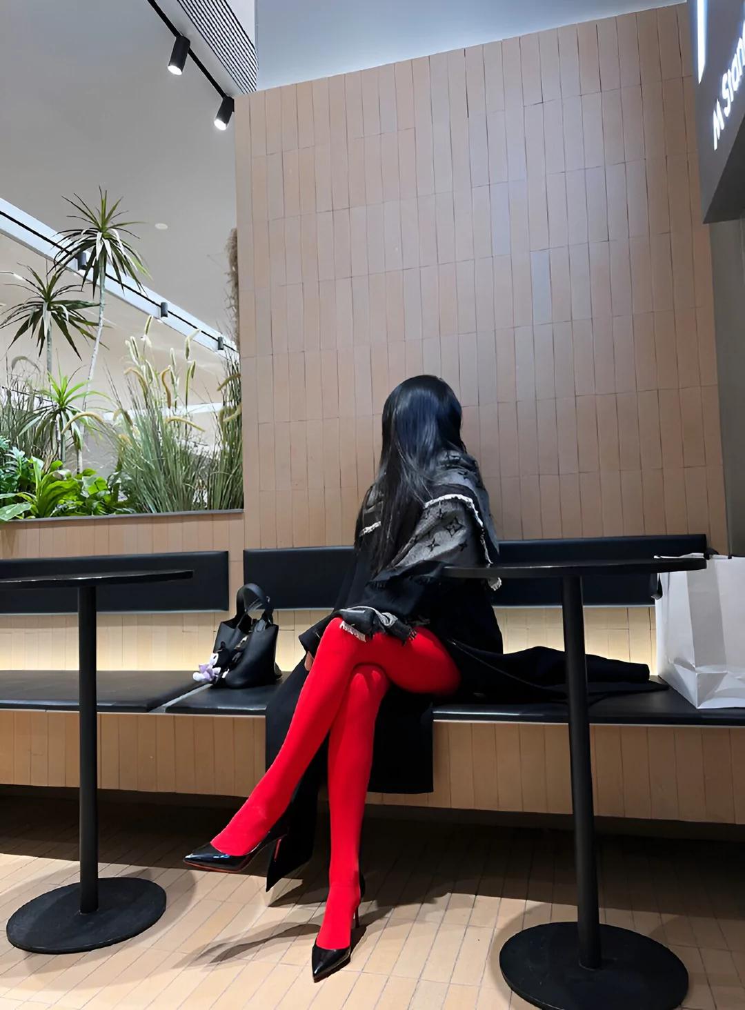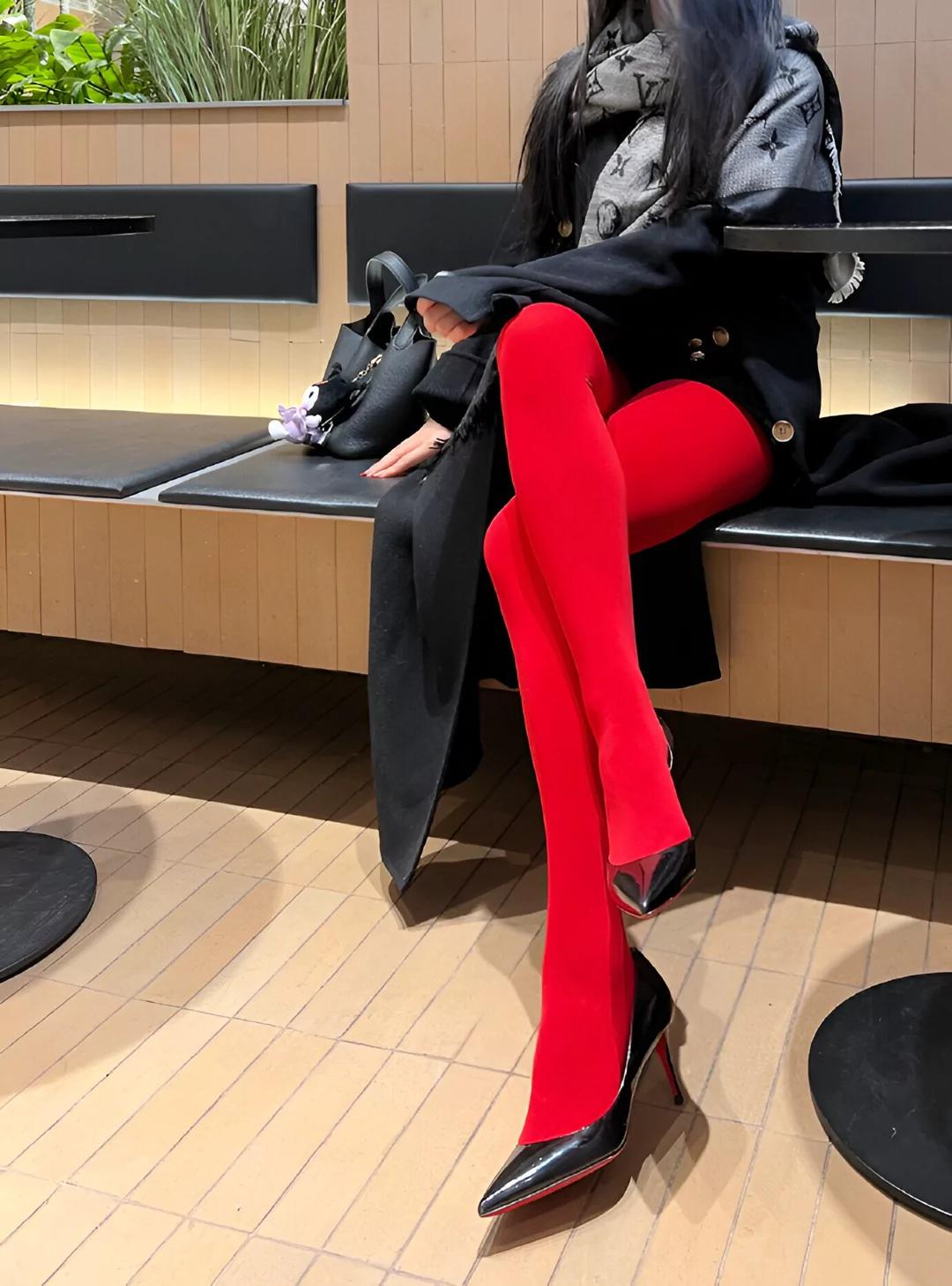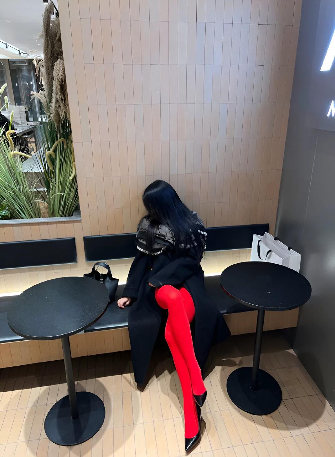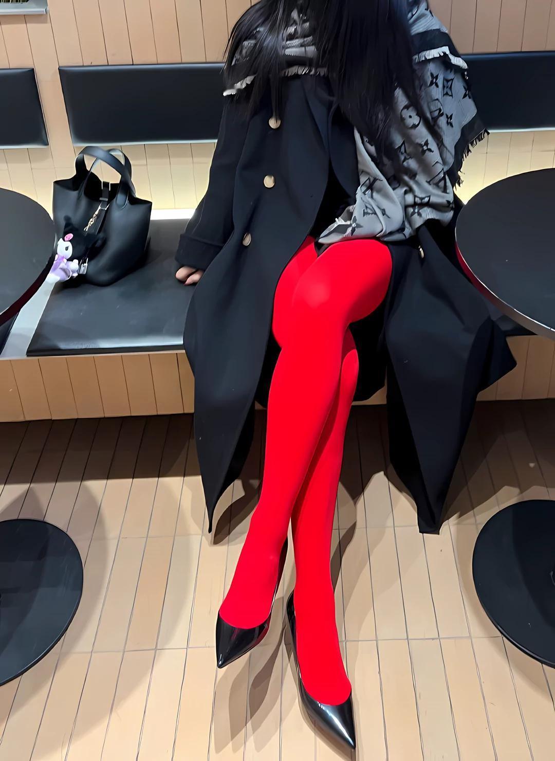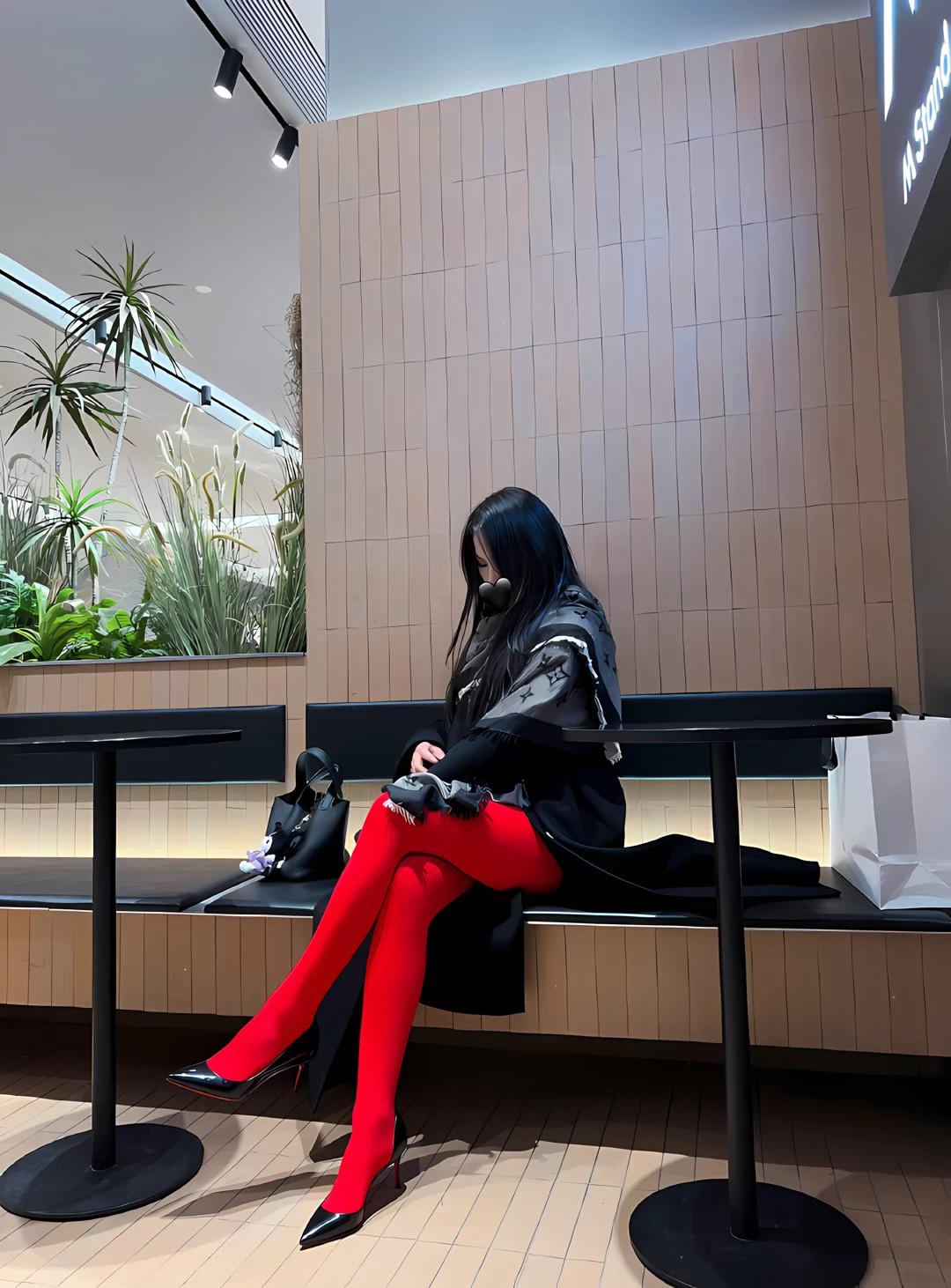 这抹正红丝袜,是把“焦点”焊在腿上的狠活——亮得扎眼却高级,裹出的腿线利落又勾人。黑大衣压不住这股艳,黑尖跟鞋刚衬得起这份热,连包上的玩偶都成了陪衬。红与黑撞得嚣张又刚好,走哪儿都是自带聚光灯的存在。御姐 美女丝袜高跟鞋
