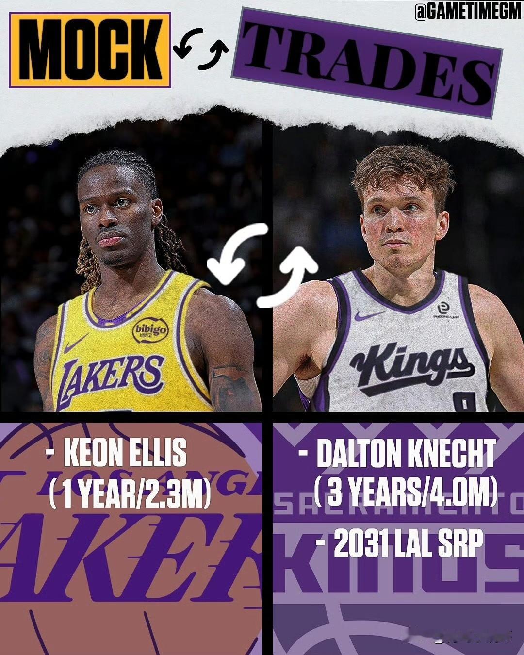 网友支招湖人交易得到埃利斯!!!克内克特+次轮单换埃利斯! 国王似乎已经没有了方向,他们也许对未来没有任何规划,可能就想走一步看一步吧,尤其是对于拿着230万廉价合同的埃利斯,他们似乎都没有想留下的念头,看来是时候为埃利斯寻找下家了。 于是又有国外的网友为湖人支招,让他们主动联系国王去追求埃利斯,他提供的交易方案是拿克内克特来换,但是需要搭上一个未来的次轮签,只不过他的方案略微有些错误,是2032年的次轮,不是2031年的。 埃利斯确实也是目前国王一名有交易价值的球员,但是一个次轮能满足国王的胃口吗,而且湖人需要的还是锋线上的球员,他们的后卫线还是不缺人的。 大家觉得网友支招的这个方案可行吗,埃利斯对湖人到底有用没用呢,他确实能够提供出一些后卫线上的防守,能帮助湖人走多远呢? 湖人次轮选秀 湖人战略交易 湖人 国王队