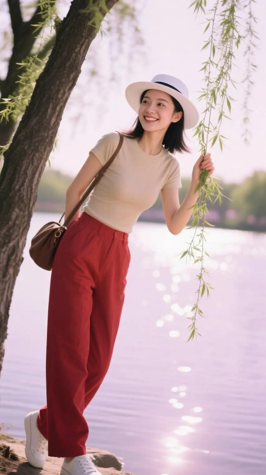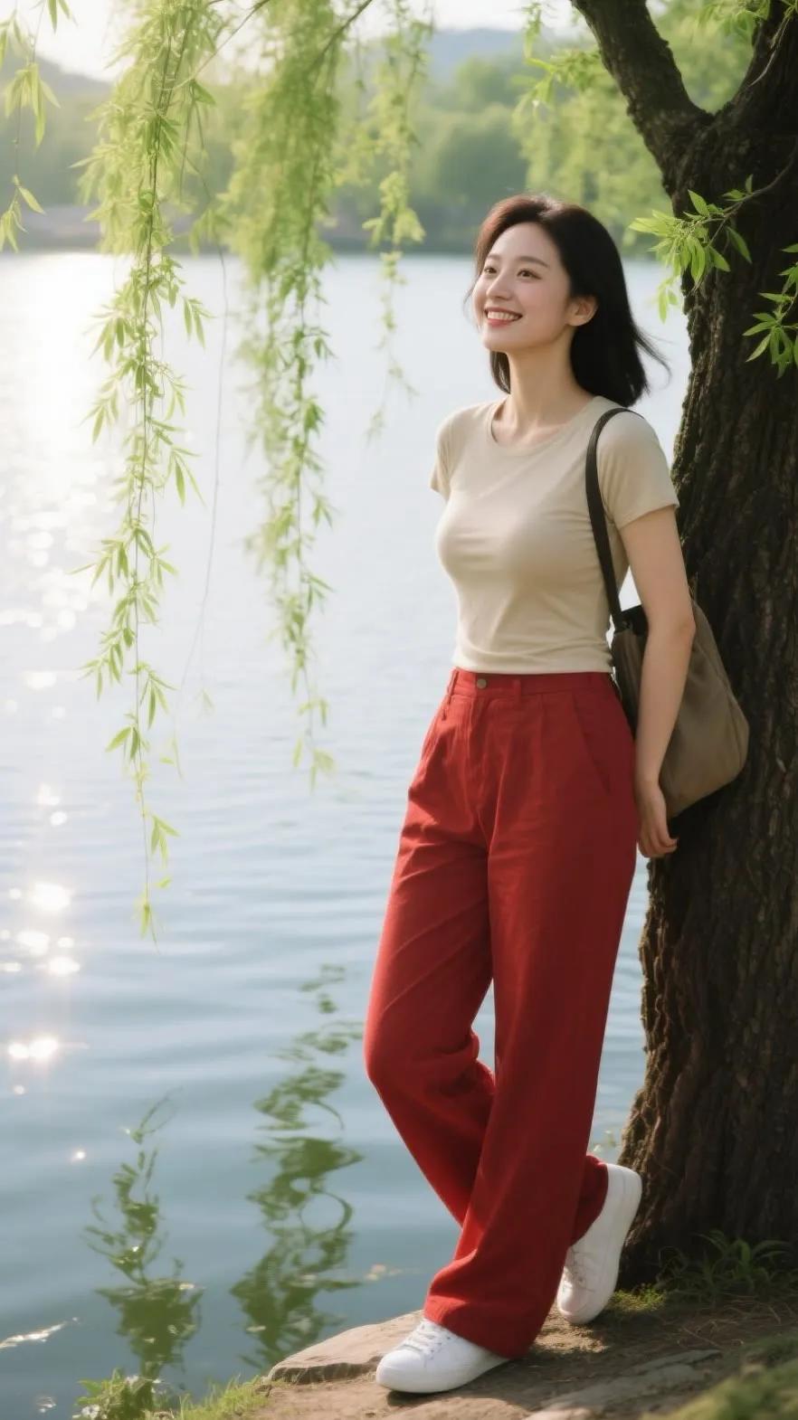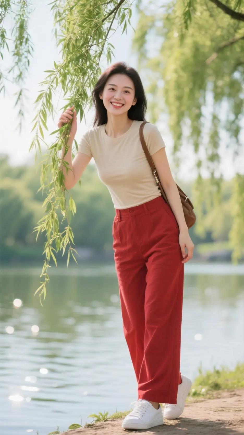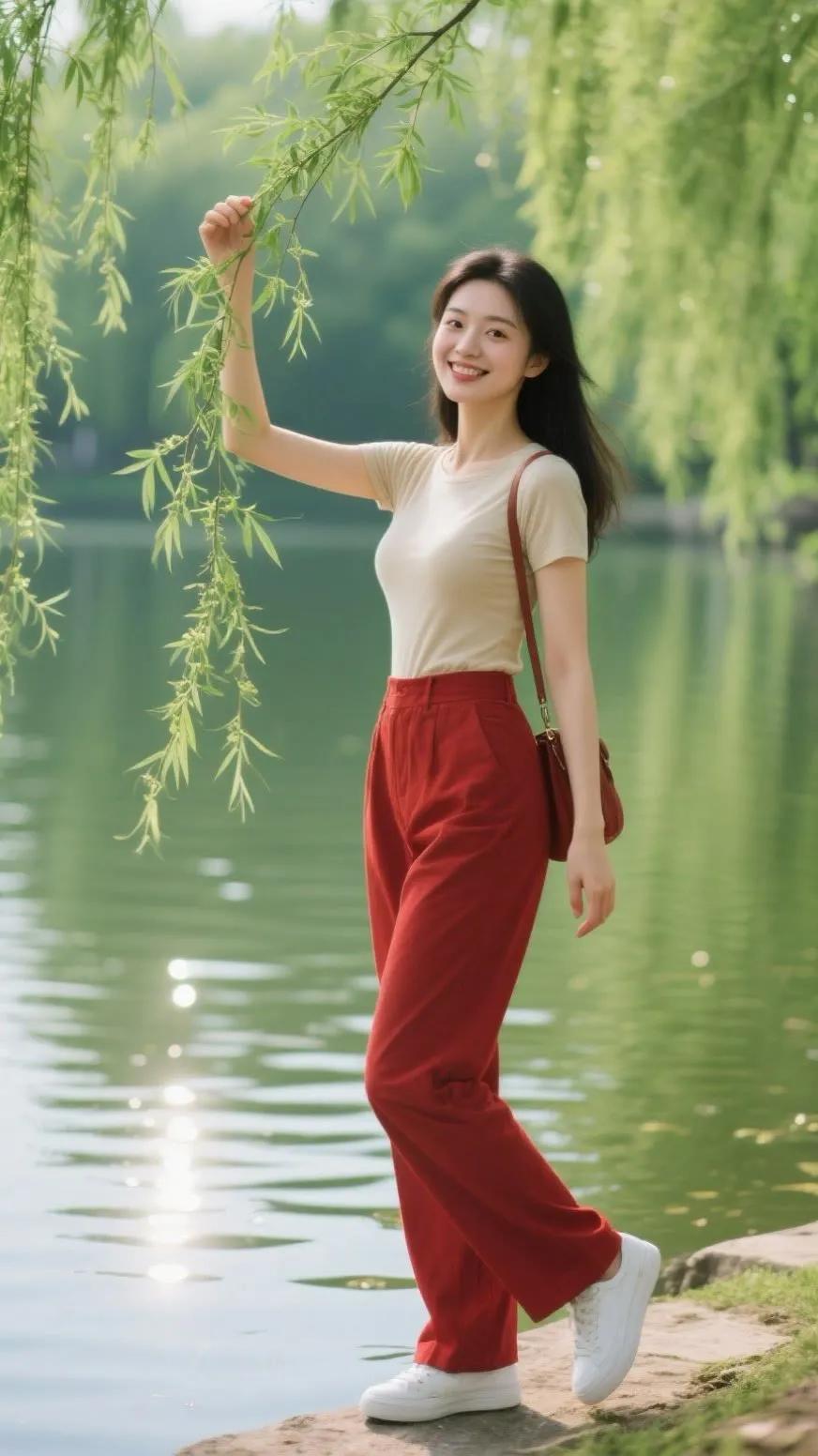 温柔微笑,绿意盎然,优雅气质,尽显自然之美。