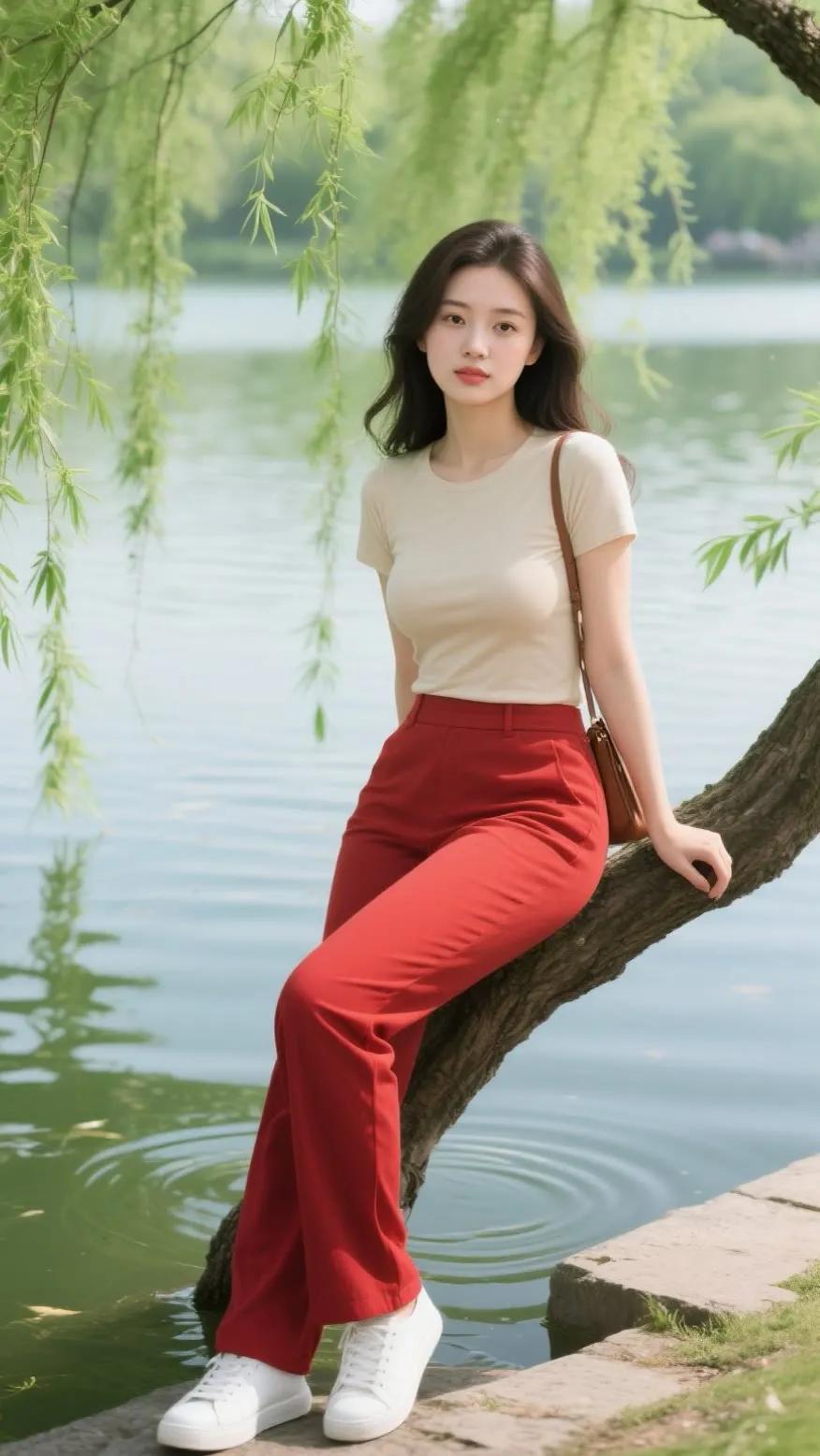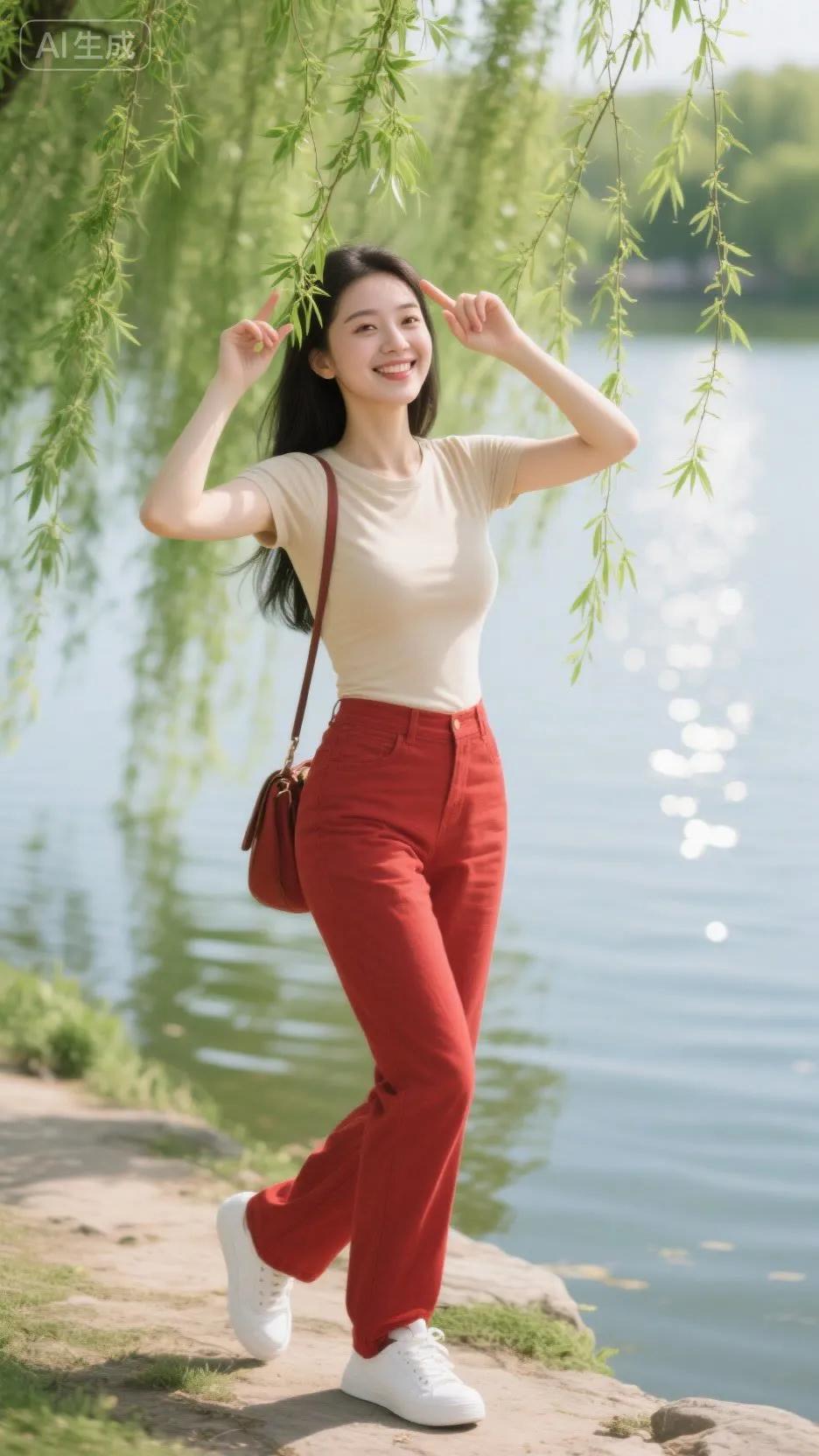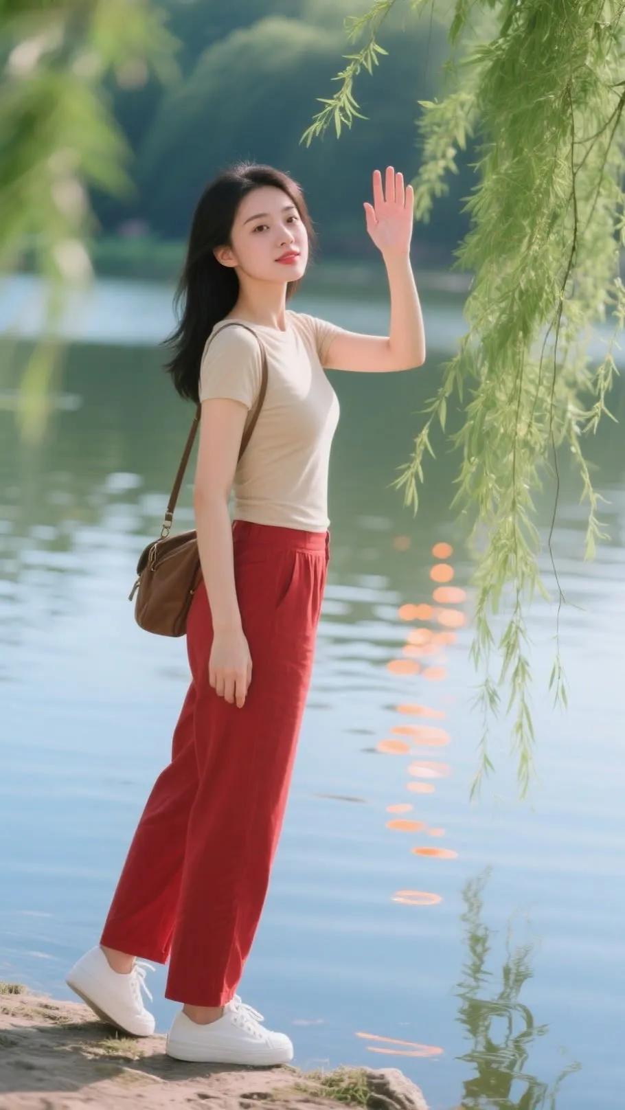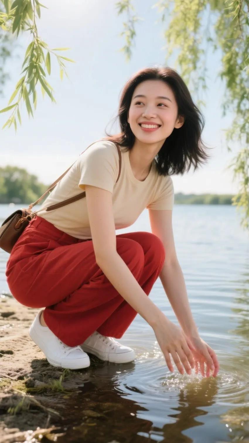 温柔微笑,绿意盎然,优雅气质,尽显自然之美。