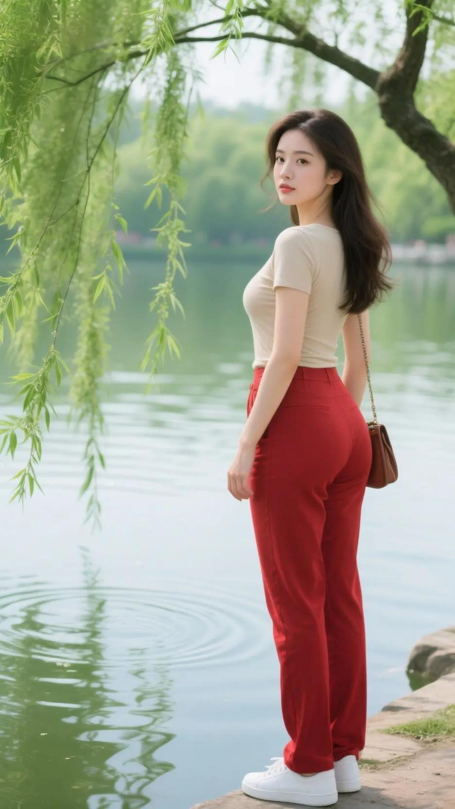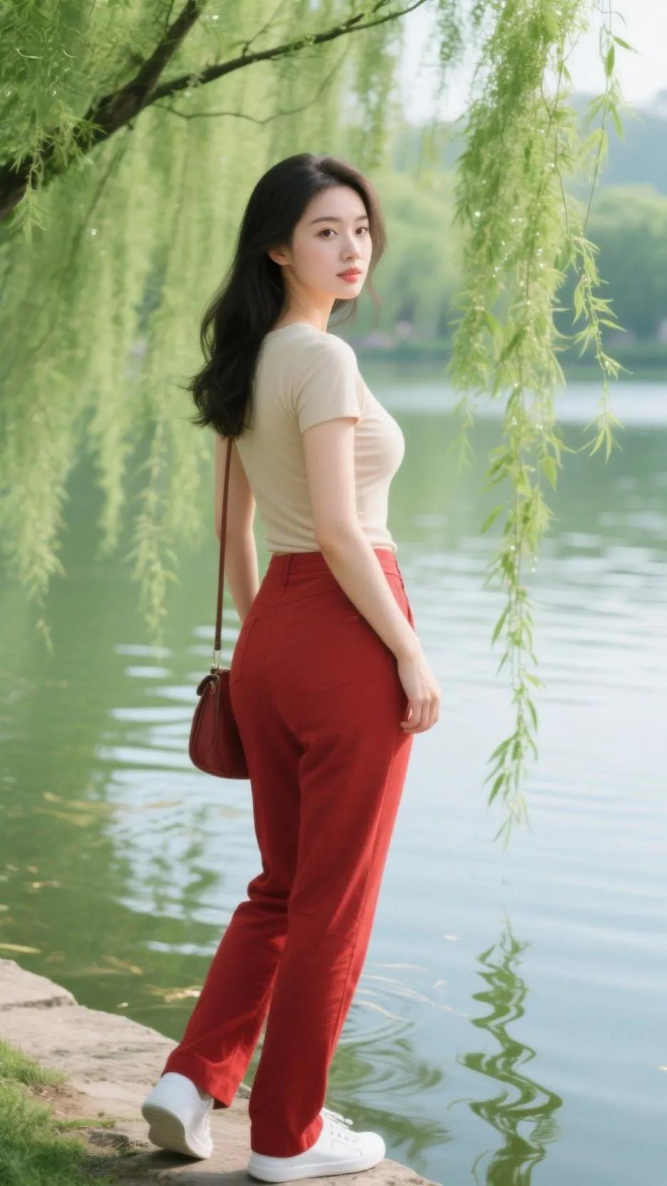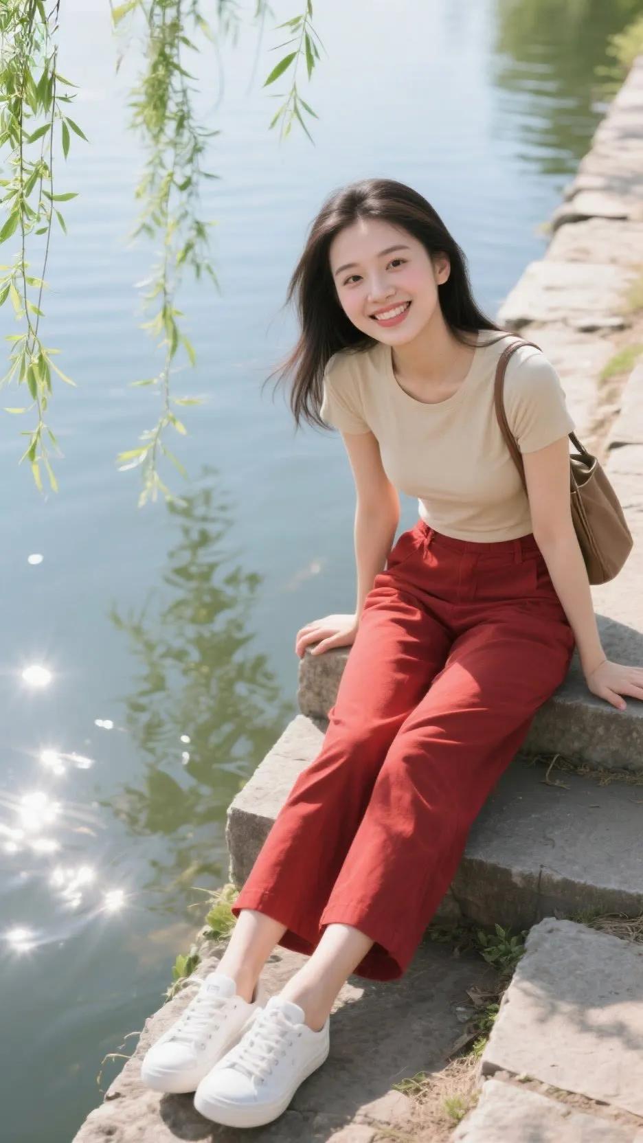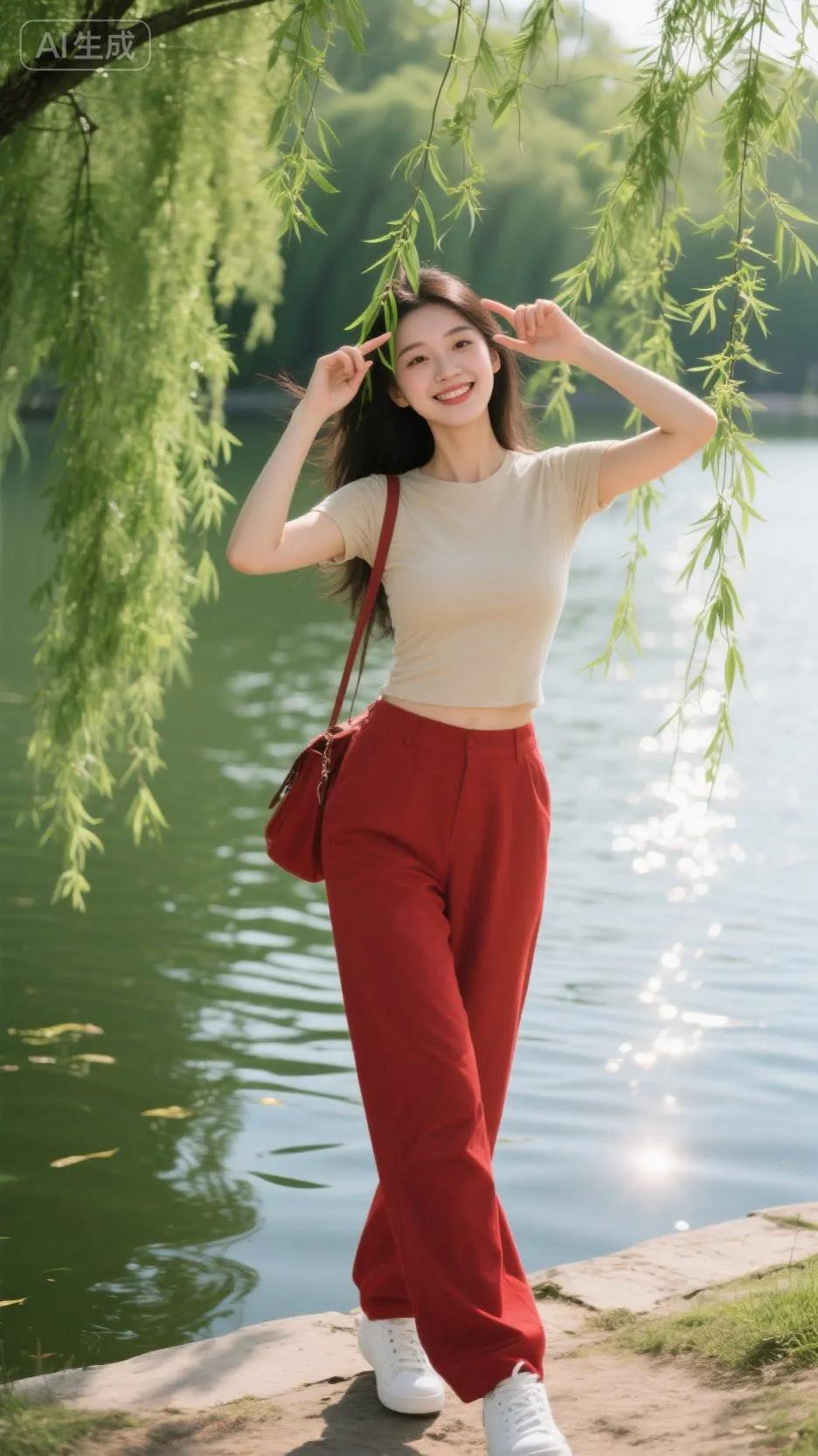 温柔微笑,绿意盎然,优雅气质,尽显自然之美。