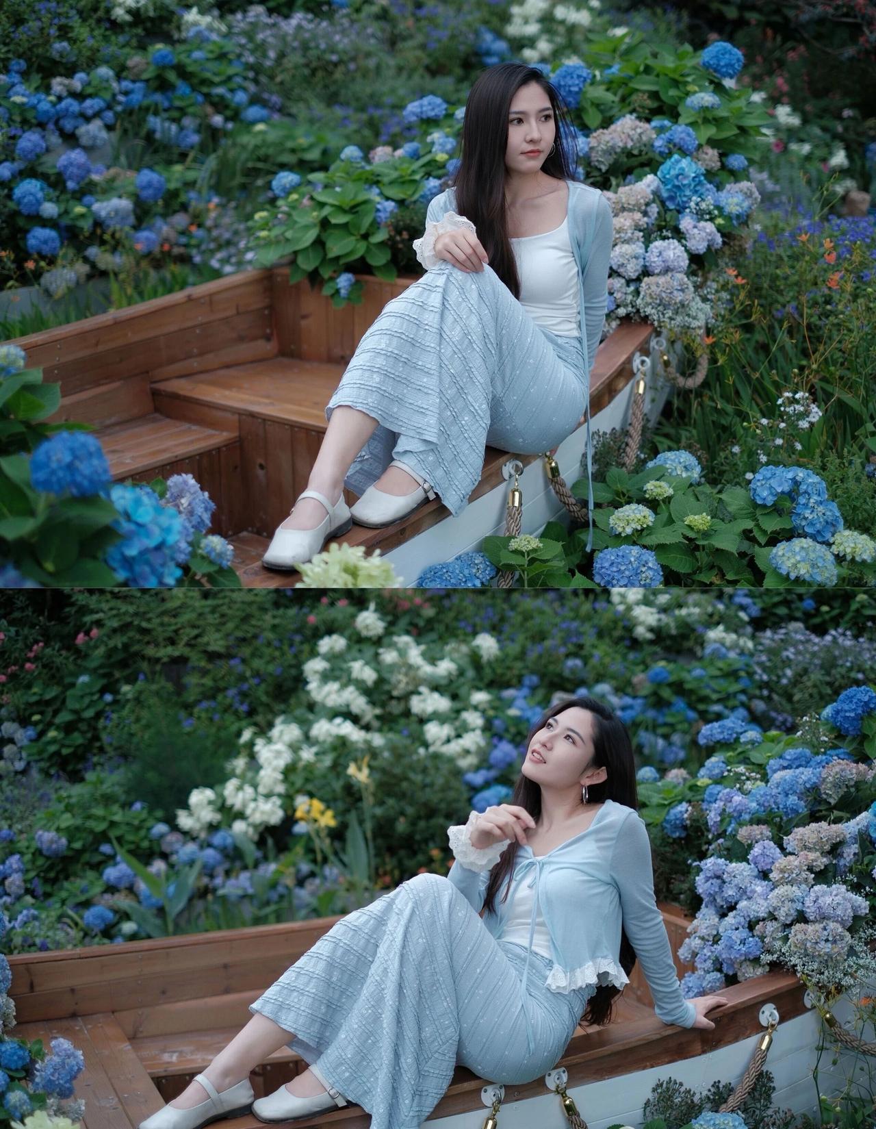 清晨的阳光洒在花园的每一个角落,露珠在花瓣上闪烁着晶莹的光芒。这里是一个远离尘嚣的世界,一片宁静与和谐的自然角落。一位年轻女子身着浅蓝色的吊带连衣裙,搭配着白色的内搭,静静地坐在一张木质长椅上。她的笑容如同这清晨的阳光,温暖而明亮,仿佛能驱散一切阴霾。 这位女子名叫林晓,是一名插画师,她喜欢在这样的清晨来到这个花园寻找灵感。花园里,蓝白相间的绣球花争相开放,形成了一片花海。绿叶丛中,几朵红色的花朵点缀其中,犹如星星点点的火焰,为这幅宁静的画面增添了几分热烈。远处,金属栏杆在阳光下闪烁着冷冽的光芒,与花园的柔和形成了鲜明的对比,却又不失和谐。 林晓闭上双眼,深吸一口气,空气中弥漫着花香与泥土的气息。她仿佛能感受到每一朵花的呼吸,每一片叶子的颤动。这种与自然的亲密接触,让她感到无比的放松与愉悦。她轻轻抚摸着身边的花朵,仿佛在与它们对话,诉说着心中的故事。 突然,一阵微风吹过,花瓣随风飘落,如同雪花般在空中翩翩起舞。林晓睁开双眼,看着这如梦如幻的景象,嘴角不禁微微上扬。她拿出随身携带的素描本和铅笔,迅速地将眼前的美景记录下来。她的笔触流畅而细腻,每一笔都充满了对自然的热爱与敬畏。 在这个花园里,时间仿佛静止了。林晓沉浸在自己的创作中,忘记了周围的一切。她画下了绣球花的花瓣,画下了绿叶的脉络,画下了远处栏杆的轮廓,也画下了自己心中的那份宁静与喜悦。她知道,这些画面将成为她未来创作的源泉,也将成为她心中永恒的记忆。 当太阳逐渐升高,花园里的光线变得更加明亮,林晓收拾好自己的画具,准备离开。她回头看了一眼这个美丽的花园,心中充满了感激。这里不仅给了她创作的灵感,更给了她心灵的慰藉。 走在回家的路上,林晓的心情格外轻松。她知道,无论未来的路有多么艰难,只要心中有这样一片花园,有这样一个清晨的微笑,她就能勇敢地面对一切。这花园中的微笑,将永远留在她的心中,成为她人生旅途中最美的风景。