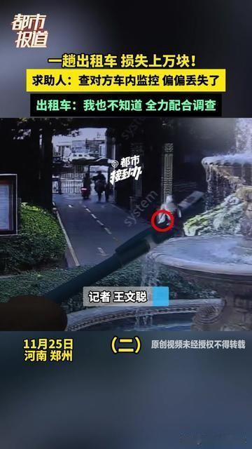 你有没有过这种堵到嗓子眼的窝心时刻? 丢了贵重东西,好不容易找到能证明的监控,结果被告知监控丢了? 有位求助人坐出租车丢了上万块,急着查车内监控找线索,偏巧最关键的那一段,没了! 出租车说全力配合,但不知道情况。 换谁不窝火?就像你要维权时小票刚扔,查快递偷拿时小区监控刚坏,这种巧到离谱的事,怎么总落在着急找说法的人头上? 监控是真意外丢了?还是有啥没说透的隐情? 要是你遇到这种事,是认栽算了,还是死磕到底? 大家要的从来不是别的,不过是个明明白白,谁的钱不是血汗赚的?丢了已经够疼,连查真相的门都被监控丢失堵死,这口气怎么咽? 遇到关键证据凭空消失的事,你会怎么办?