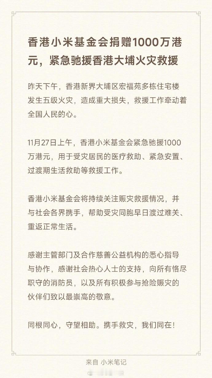 香港小米基金会捐赠1000万港元 这时候看图就可以了,小米每次都是最快之一。