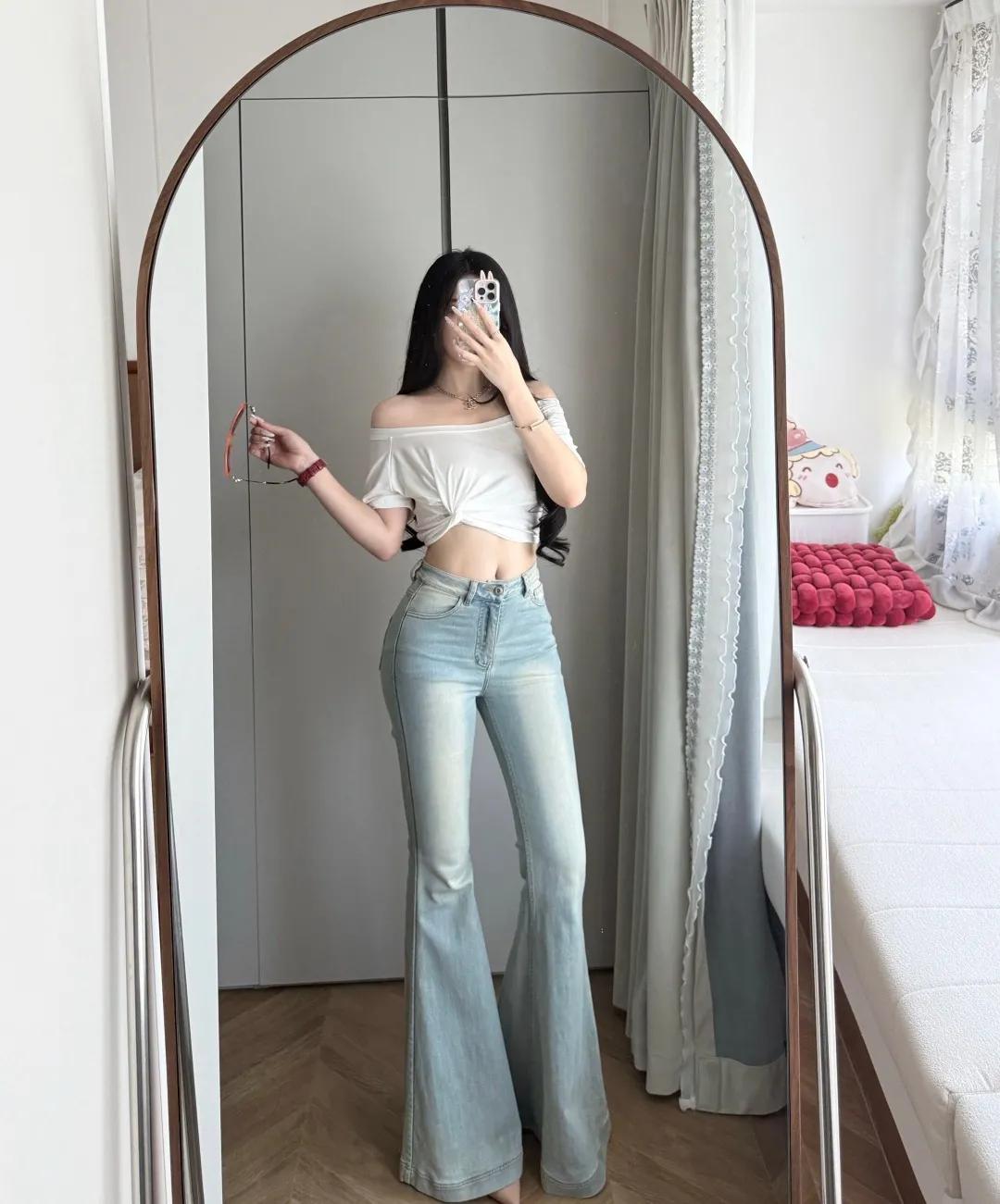 什么样的牛仔裤,显着身材性感高挑那还得是紧身微喇牛仔裤性感风牛仔裤完美身材牛仔