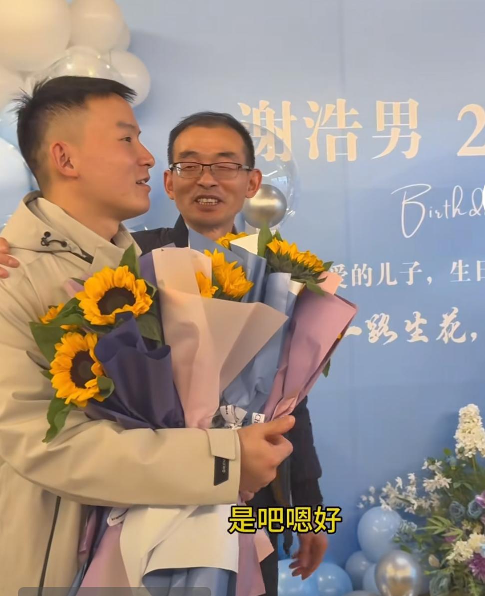 谢浩男爸爸谢岳真的好用心,在谢浩男27岁生日的时候,提前一个星期订了52层的酒店,代表他永远爱儿子。还给谢浩男准备27朵向日葵,代表着27年,希望谢浩男向阳而生,浪漫又温情。 谢岳不愧是做服装的,眼光非常在线,这套衣服穿在谢浩男身上,是真的很帅。妈妈爱不爱谢浩男我不知道,但爸爸是真的爱谢浩男,可能妈妈不善言辞,不会表达吧。 谢岳的情商很高,虽然平时一惊一乍的,但每个重要的时刻,他总会出现谢浩男身边。每次都很用心,情绪价值直接给谢浩男拉满了,连谢浩男都有点搓手不及,心想我都没这么浪漫过。