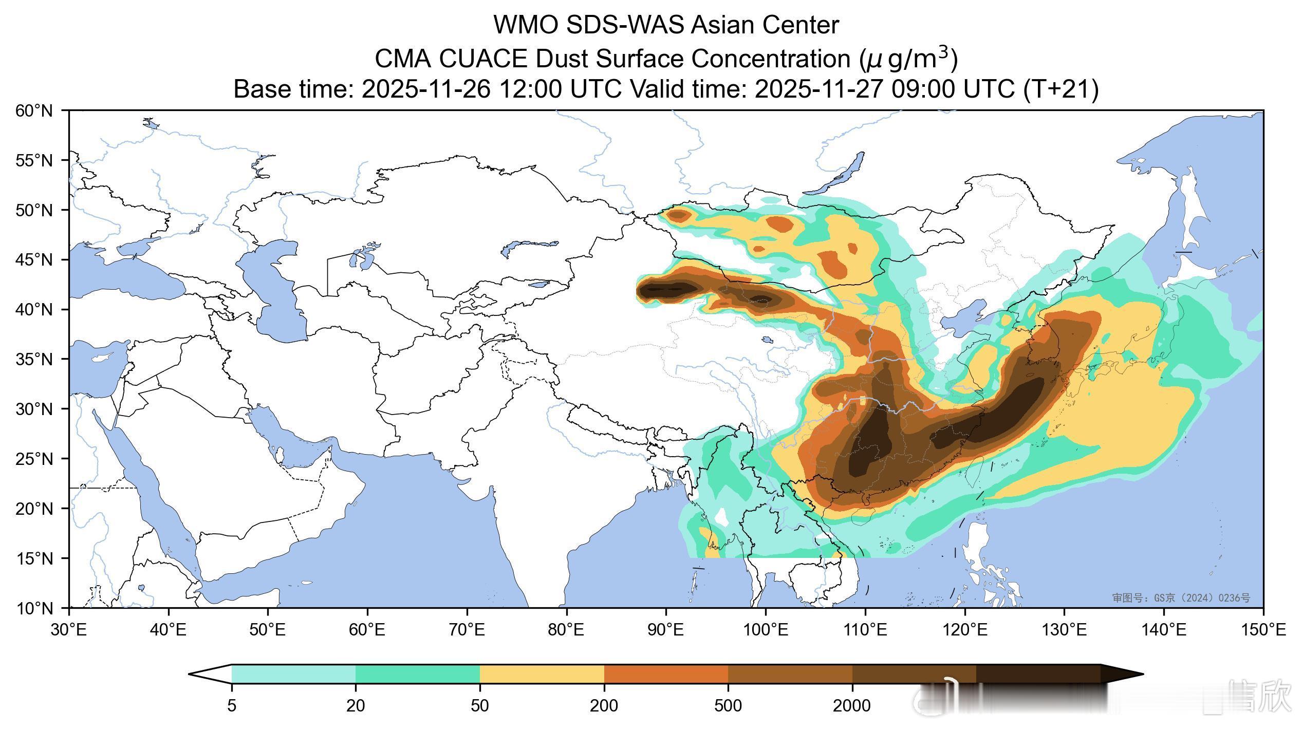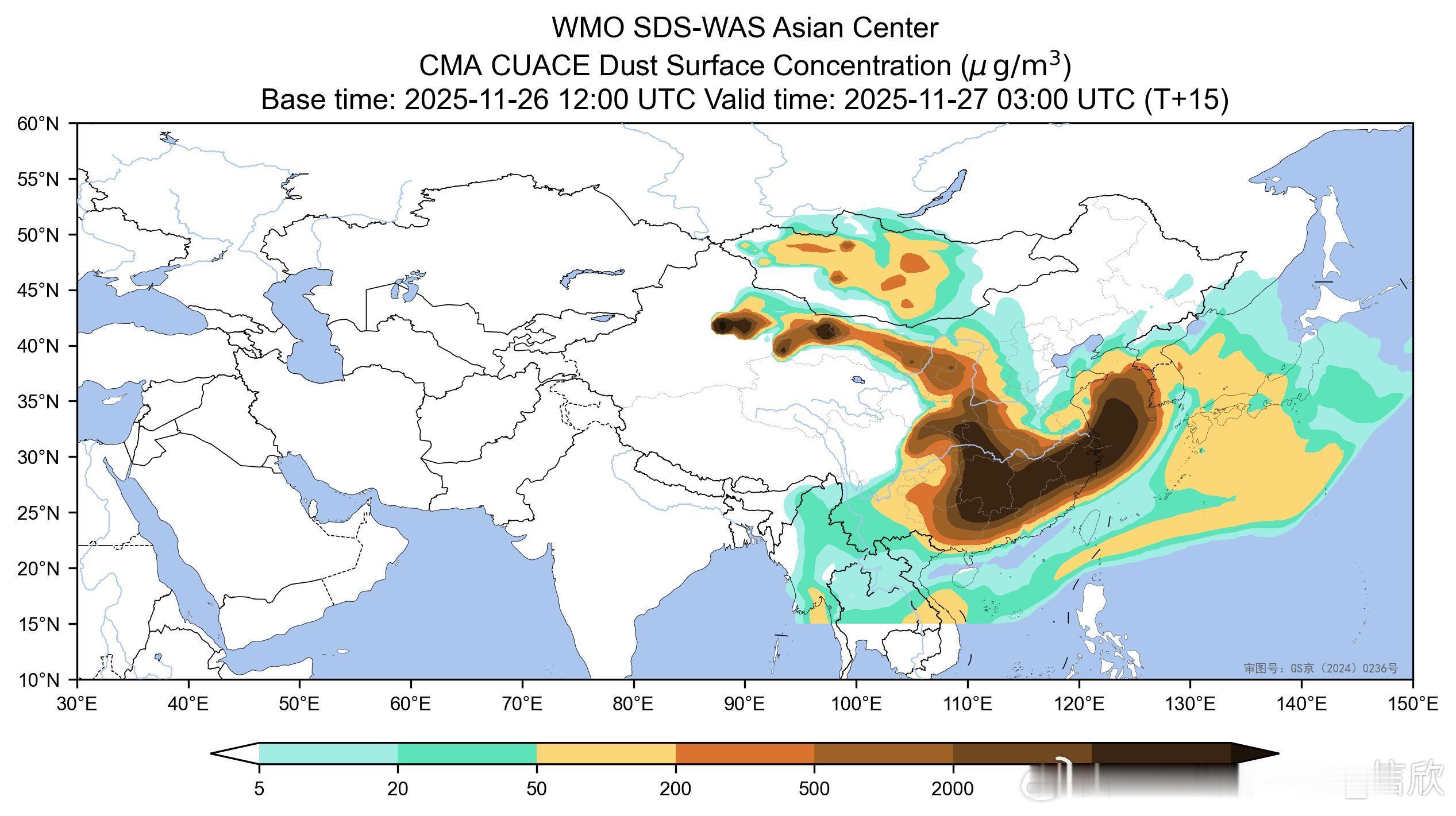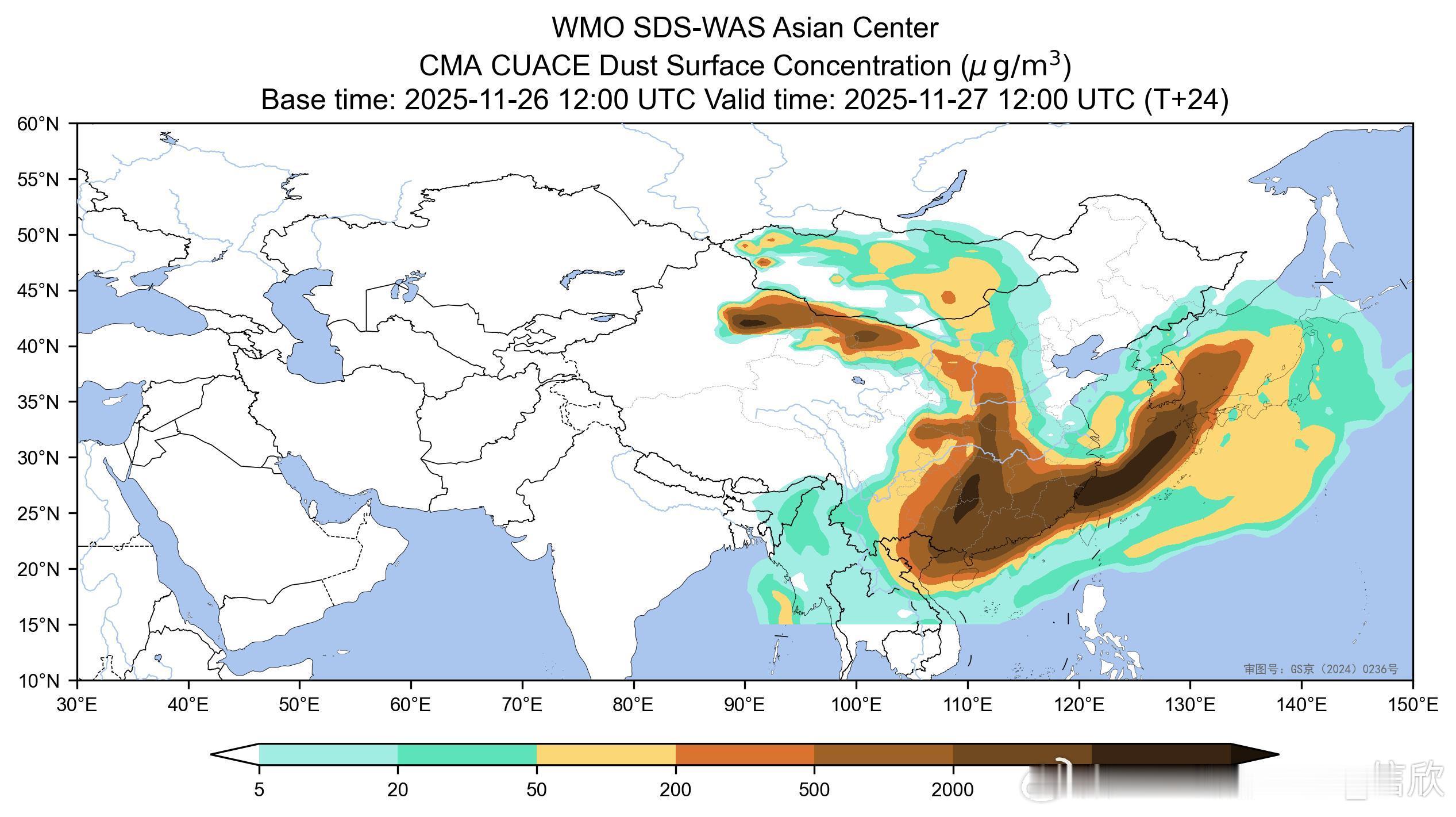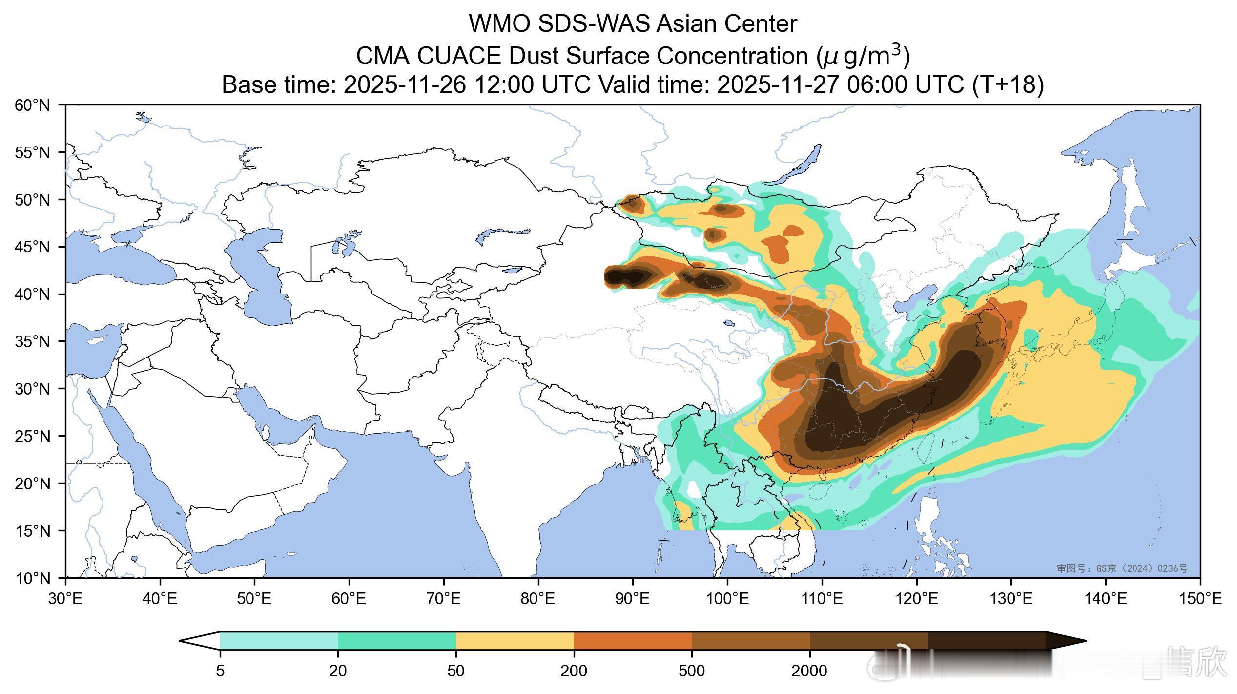 下图为数值预报模拟的27日08时-28日08时,沙尘南下情况。需要强调的是,数值预报的沙尘浓度比实际高出了大约10倍。而且模拟今天8时的沙尘南界也相对偏南。但沙尘南下的趋势可以参考。这次沙尘有可能波及到华南,导致PM10浓度上升。远距离输送来的沙尘都是相对细小的颗粒,到华南时,看起来可能更像霾。