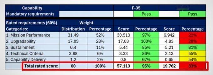 2025年11月26日,加拿大广播公司报道,在加拿大国防部2021年举行的一项竞标中,美国制造的F-35战斗机在技术和军事能力方面全面领先了其瑞典竞争对手鹰狮战斗机。 此次竞标侧重于每款战斗机在保卫北美大陆方面的能力,以及在对抗现代军事力量的各种任务中取得成功的可能性。 F-35在军事能力方面得分为95%,总分60分中获得了57.1分。 相比之下,根据加拿大广播公司获取的加拿大国防部评标结果,鹰狮-E型战斗机得分为33%,总分60分中获得了19.8分。 两者在"任务性能"和全寿命周期升级能力方面的得分差距尤为显著。 加拿大国防部在被要求对此竞标结果置评时表示,对F-35采购案的审查仍在进行中。 几位专家以及两家竞标公司的代表均表示,他们此前从未见过这些具体数据。 加拿大全球事务研究所所长大卫·佩里表示,两款战机之间的显著差异或许有助于解释特鲁多政府为何决定违背其2015年不继续采购F-35的竞选承诺。 "这里的性能评估表明,存在一个明确的赢家,毫无争议,毫无模糊之处,"他说。"我预料到[F-35]会是一个明显的赢家,但竞标结果表明:这是一位遥遥领先的赢家。" 魁北克大学蒙特利尔分校的国防专家贾斯汀·马西表示,加拿大国防部的评估表明,鹰狮在军事能力方面的结果"系统性地劣于"F-35。 他说,这一结果尤其值得关注,因为加拿大正在审查减少F-35采购数量而倾向于购买鹰狮战斗机的可能性。 马西说,我们想要给加拿大一款性能较差的战机么? 前加拿大皇家空军中将伊万·布朗丹表示,这些数字证实了F-35与所有其他曾参与加拿大合同竞标的美国或欧洲飞机之间不具备真正的可比性。 他说,F-35的优势在于其更强的隐身能力以及整合来自不同军用装备(如舰船、其他F-35和侦察机)信息的能力。 "当你比较它们时,甚至不在一个级别上,"于2015年从加拿大武装部队退役的布朗丹说。"F-35是当今世界上最好的战斗机,远超其他。" 然而,另一位退役军官查尔斯·"达夫"·沙利文辩称,加拿大空军长期以来一直想要F-35,并且2021年竞标中使用的标准有利于该机型。 沙利文指出,F-35的开发项目正遭遇挫折和延误,这意味着加拿大不一定能获得洛克希德·马丁所承诺的全部技术能力。 这位前少将在离开空军后曾为波音加拿大公司工作,他说,加拿大的项目办公室一直以来都是100%支持F-35的。 在比较了F-35和鹰狮之后,渥太华确定两款战斗机都满足了其最低强制性要求。然而,在综合考虑了技术能力、长期成本和经济利益后,政府于2022年将88架飞机的合同——目前估计价值超过270亿加元——授予了洛克希德·马丁。 随后,加拿大政府针对美国对加的贸易政策的变化,启动了对F-35采购案的审查。 加拿大工业部长梅拉妮·乔利上周表示,如果洛克希德·马丁不能改善该采购合同为加拿大提供的经济利益,政府正在考虑将其未来大部分机队转向采购鹰狮。 "我认为我们从F-35合同中获得的就业岗位和工业利益还不够,"乔利说。"我认为加拿大人期望更多,我们也应该得到更多。" 制造鹰狮战斗机的萨博公司代表表示,他们从未获得过2021年竞标的最终得分,因此无法置评。 尽管如此,他们仍为鹰狮辩护,称其是一款坚固耐用、技术先进的飞机,易于适应威胁,并且设计上比任何竞争对手都能更快升级。 鹰狮飞行员、萨博负责技术的副总裁马库斯·万特说,这是为一项我们尚不知晓的任务而建造的,也是为我们尚未见过的技术而建造的。 他表示,与F-35相比,鹰狮更易于维护和操作,尤其是在北极条件下。 万特说,鹰狮目前的一大能力就是可升级和可更新性极强,因此你可以让它长时间保持领先地位,"。 洛克希德·马丁没有直接评论结果,但表示其飞机是"加拿大的最佳选择"。 目前,加拿大仅确认订购了16架F-35。 如果加拿大政府选择混合机队,鹰狮战斗机将在加拿大进行总装。 加拿大政府对萨博的承诺表示感兴趣,即创造1万个就业岗位,在国内为加拿大武装部队和国际市场组装战斗机。 当加拿大与洛克希德·马丁签署合同时,外界已经理解该合同不包含传统的经济利益套餐。该订单是通过开发F-35的国际合作伙伴关系下达的,加拿大自1997年以来一直参与其中,从而确保了较低的采购价格。 总体而言,洛克希德·马丁承诺在合同期内提供超过150亿加元的利益,并指出在将交付给各国军队的大约3600架飞机中,每架都包含约300万加元的加拿大内容物。目前已有超过1000架交付的飞机上安装了加拿大制造的设备。