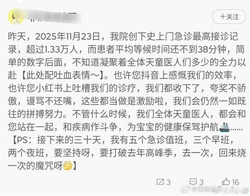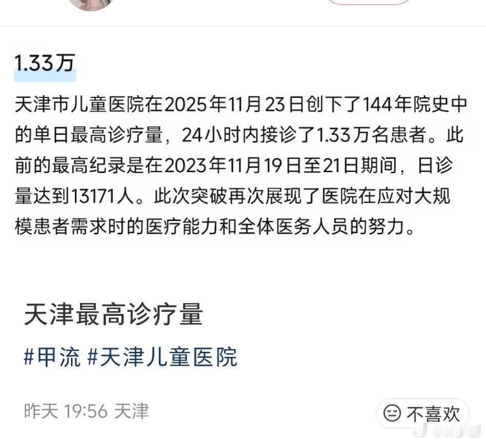 天津市儿童医院在2025年11月23日,创下了144年院史中门急诊单日最高诊疗量?超过了2023年创下的记录?所以,免疫债还了个啥,越还越高了。