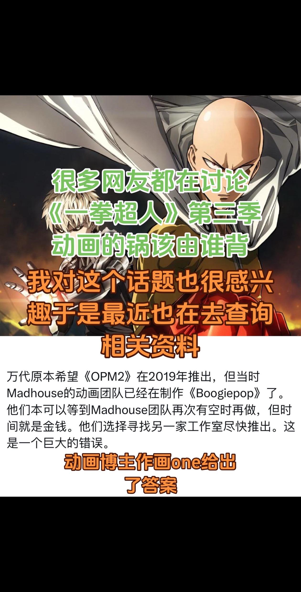 《一拳超人》第三季动画从来就不缺热度。这次不单单是网友之间的辩论,不少...