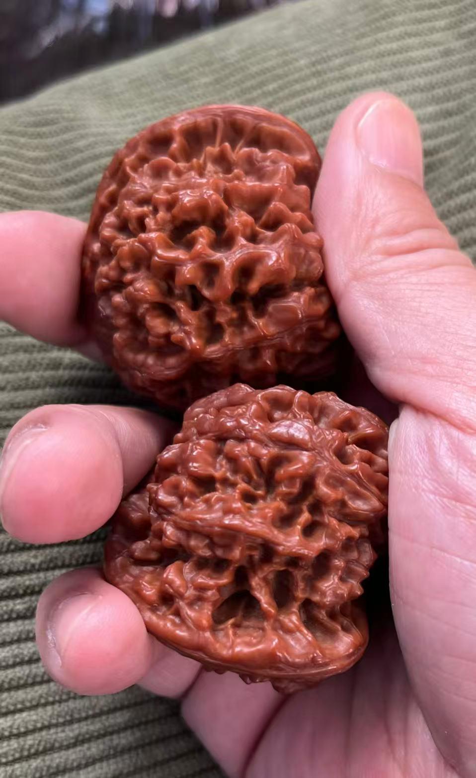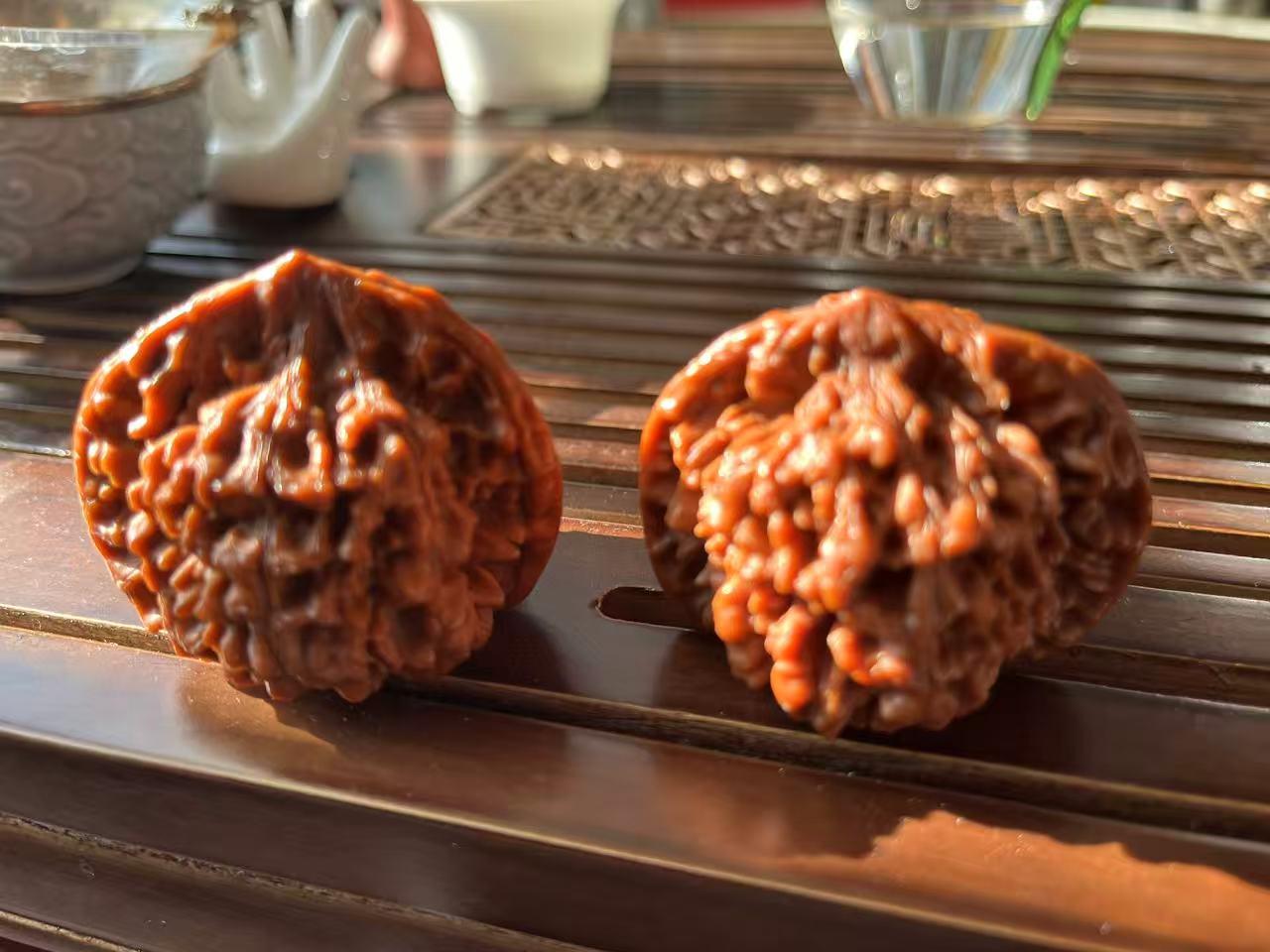 这核桃还能盘出来吗? 3年前朋友送了对核桃,看着挺大,挺好看,白茬给过来的。自己完全不懂怎么玩,有一搭没一搭的拿手里玩一下,中间有一年多放在盒子里没碰。如今虽然说颜色变深了好多,看起来也有些包浆,但是颜色不是红,而是有点黄黑,这核桃是不是盘废了啊?看人家玩几年都变得玉化的那种,晶莹剔透的,我这是盘的时间功夫不到,还是已经玩废了? 懂行的高手请帮忙指点一下!