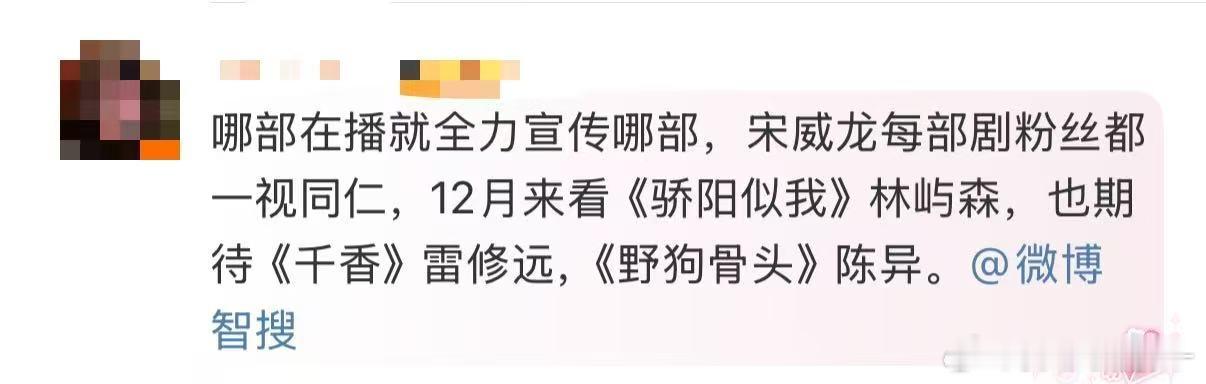 宋威龙粉丝挺不错的啊,粉丝说都会全力配合支持宋威龙一切决定,不管是活动还是待播作品,粉丝都会努力宣传的