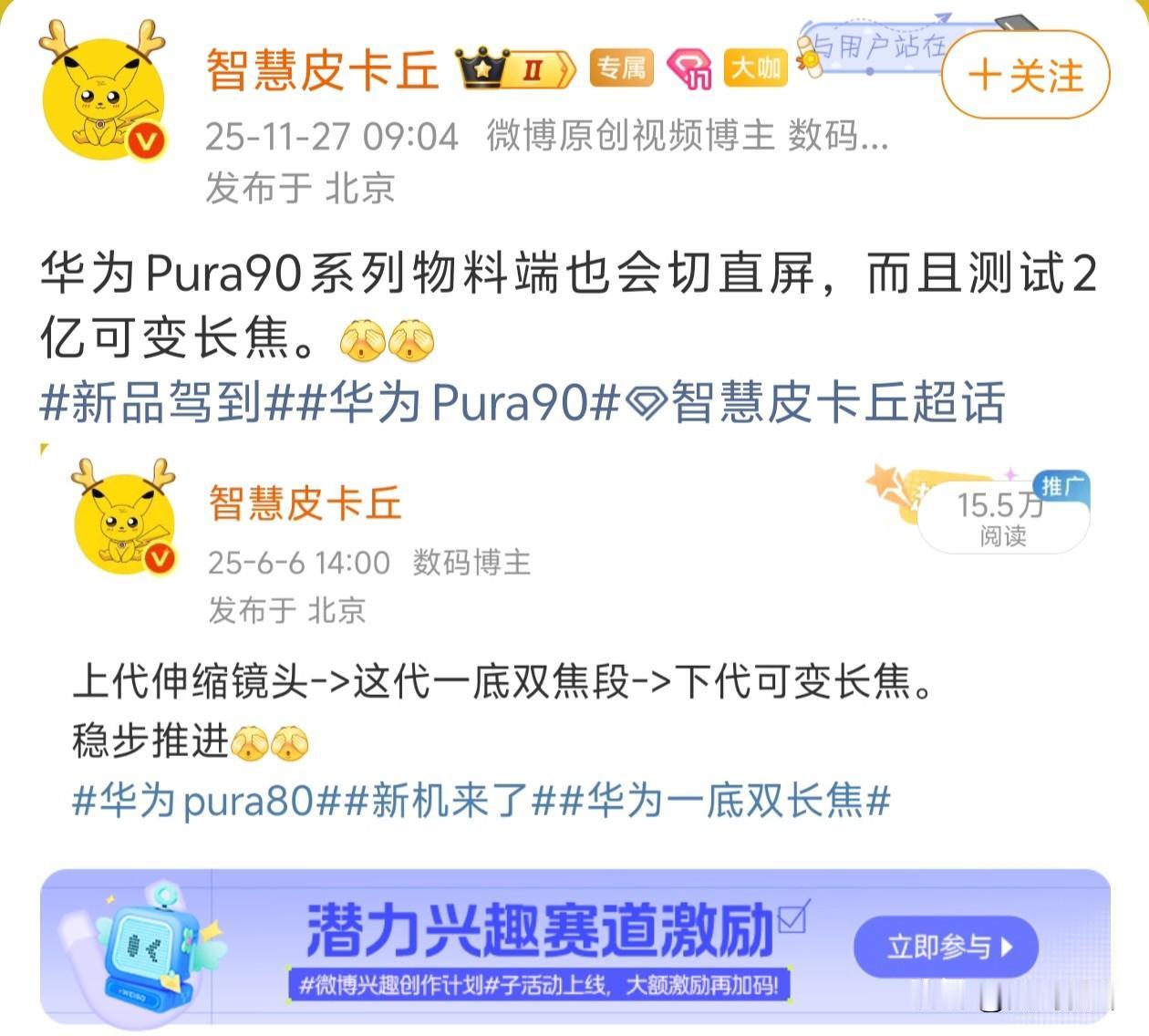 pura90系列冲击7K毫安电池[灵光一闪]如果可以落地,搭配9030+鸿蒙6续航应该很强!还在测试两亿可变长焦镜头!pura应该不会上3D人脸,还是要主打差异化的,主打的还是影像,希望华为系旗舰机电池容量快一点到7千毫安吧[笑哭]