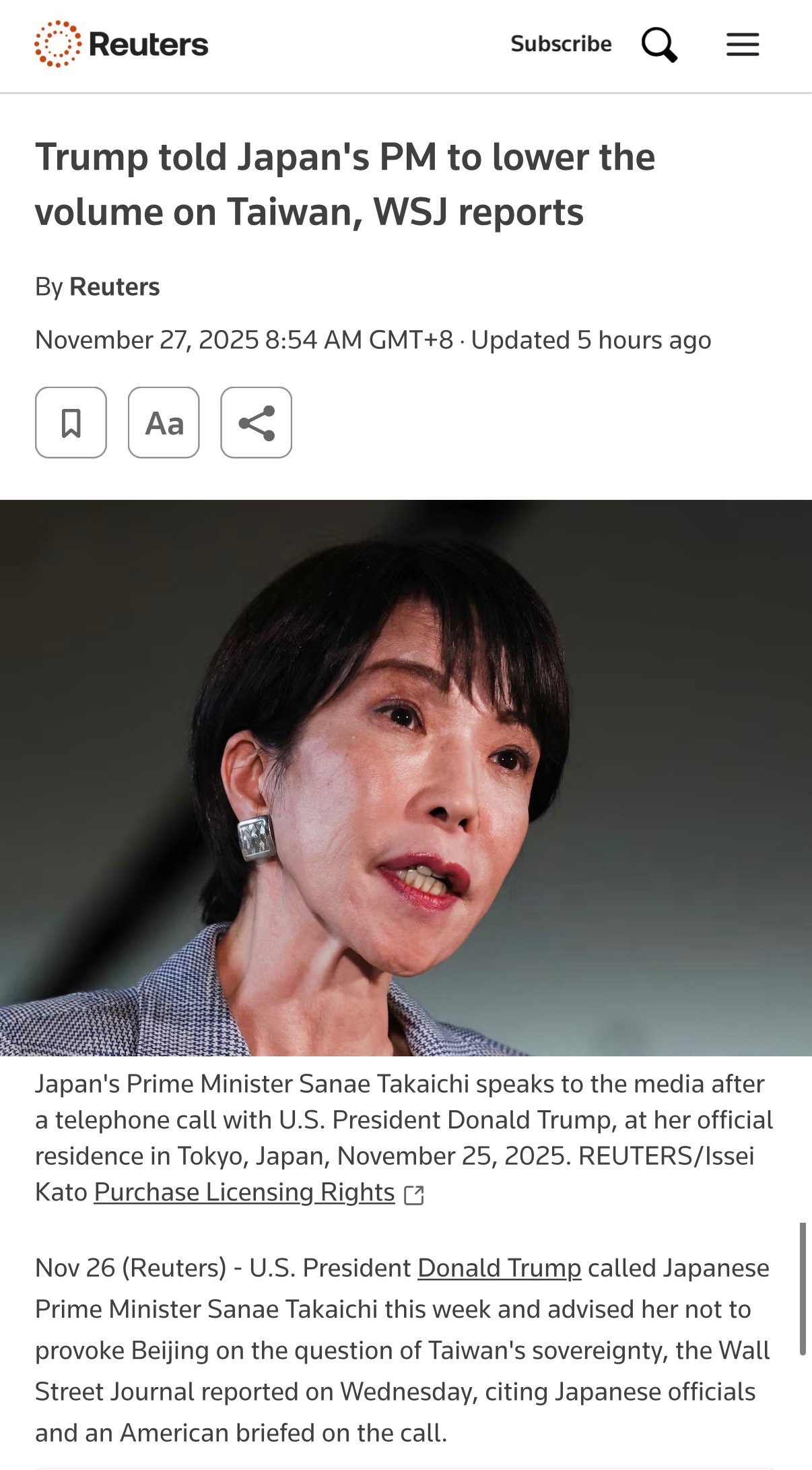 🔻路透社援引WSJ的报道称:特朗普“告诫高市早苗不要在台湾问题上制造挑衅”。高市被质问日中关系恶化该如何负责日本商家不断收到中国游客取消通知热点现场海外新鲜事