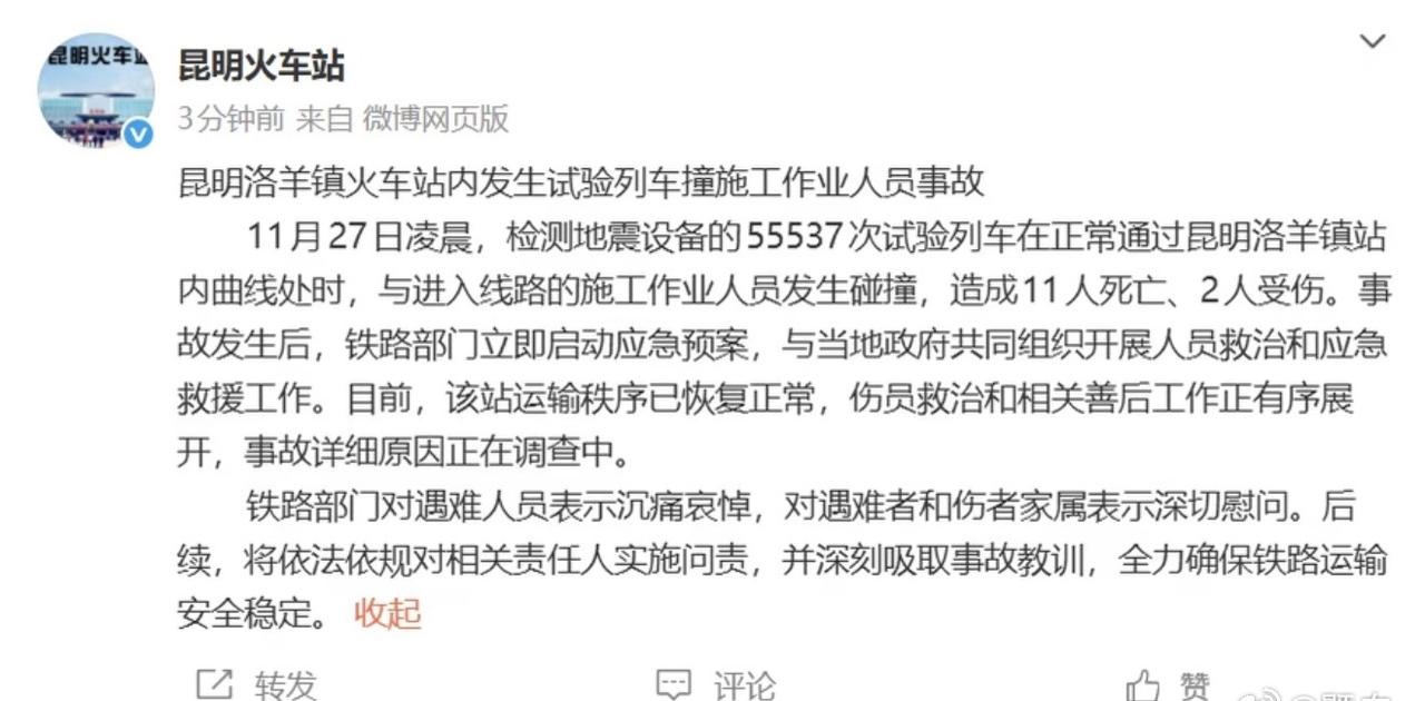十一条鲜活的生命,就这样倒在了冰冷的铁轨上。事情发生在一个昆明火车站里,一列负责
