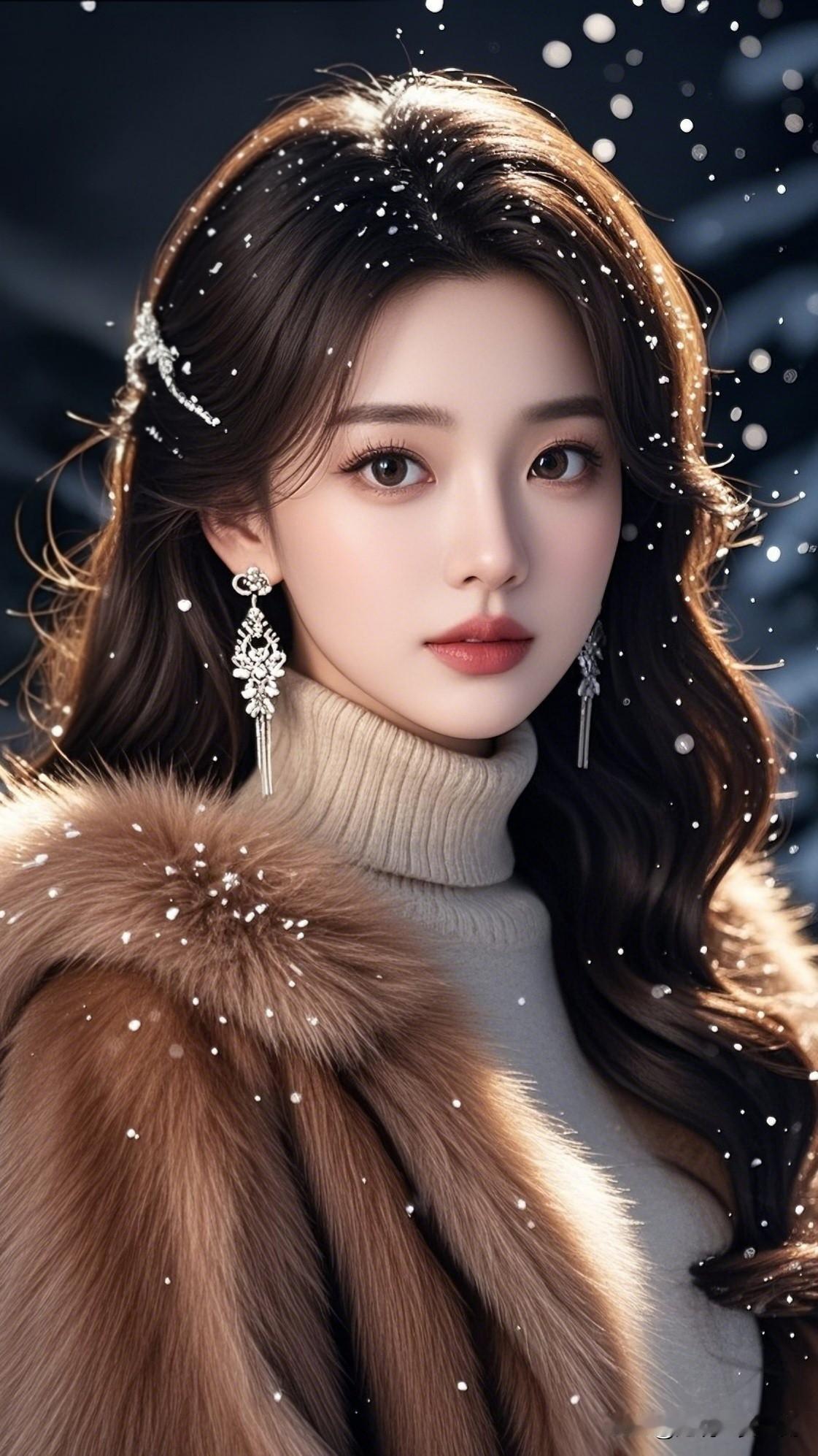 雪中美人,如诗如画。什么才是真正的古典美人? 冬日暖阳下的温柔女神,毛绒大衣与闪亮耳环的完美搭配,尽显优雅与魅力。