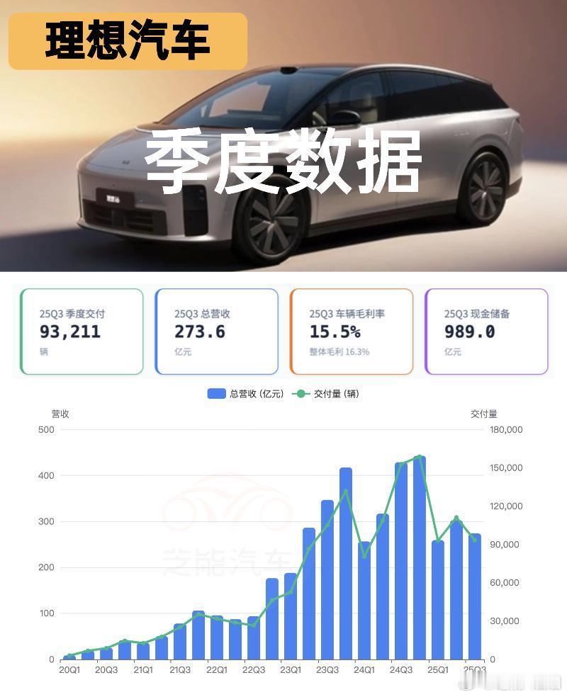 理想汽车三季度业绩受市场竞争和 MEGA 召回影响,营收、交付量均出现下滑,还出现了净亏损。剔除召回成本后,车辆毛利率仍保持相对健康水平。公司对第四季度的展望同样面临压力,2025 年整体处于承压状态,后续需调整发展策略以应对行业竞争。