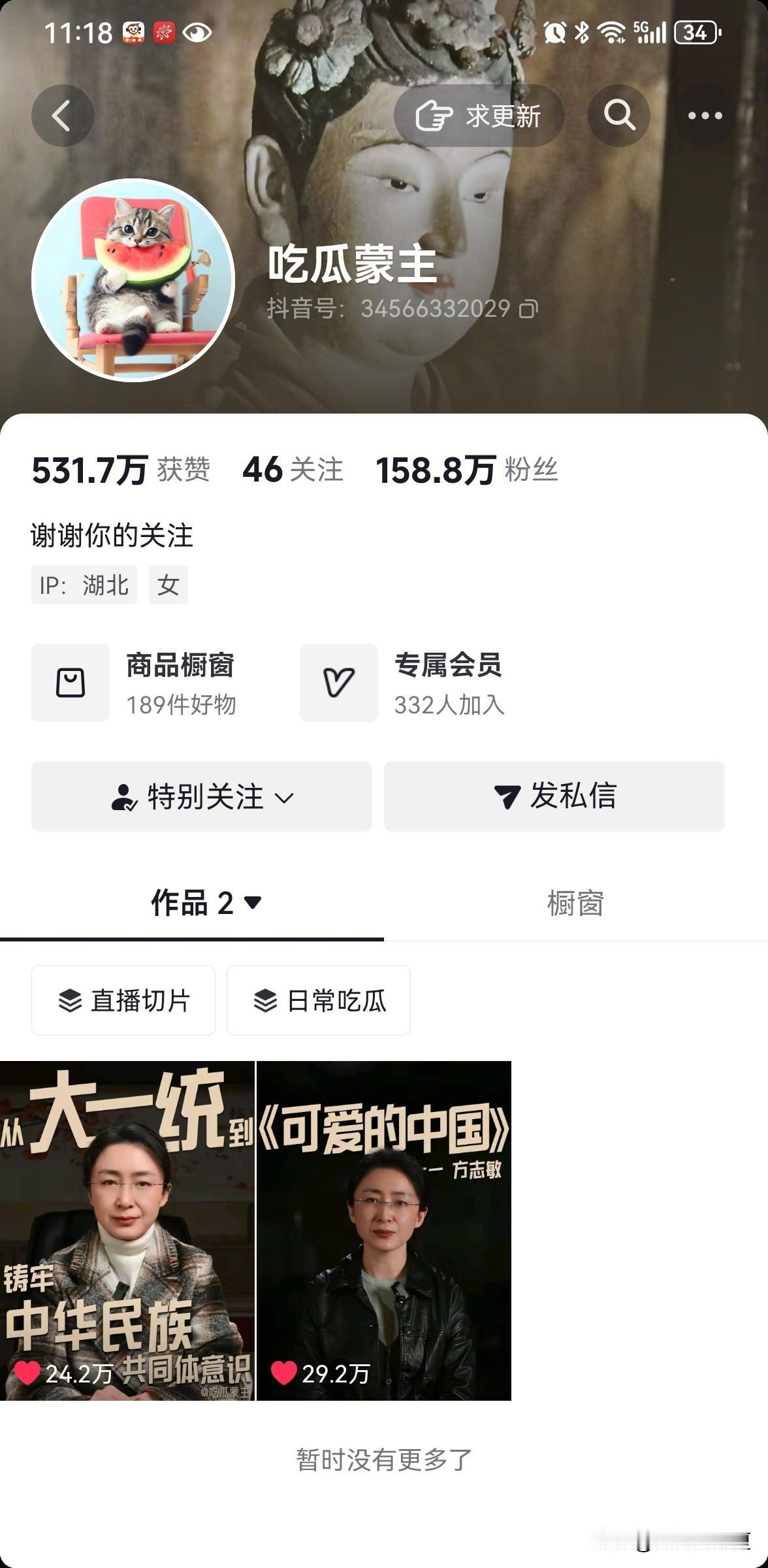 恭喜吃瓜蒙主粉丝继续高速上涨,158.8万了。 也佩服蒙主为了提升华夏自信心敢于斗争的精神和做出的成果, 本人作为华夏男儿,实在是惭愧至极。 只能是默默支持。