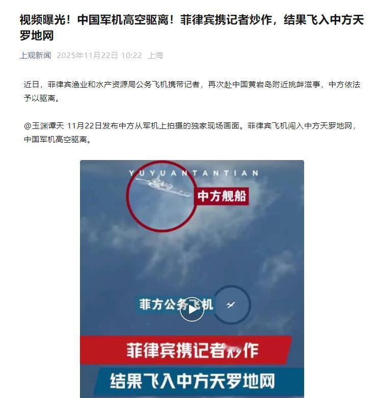 为了给日本撑腰,菲律宾的飞机闯入我国领空,不料掉进了天罗地网 11月22日上午,一架菲律宾渔业局的比奇1900C轻型飞机,机上塞了满满一肚子记者,鬼鬼祟祟地往黄岩岛方向飞,算盘打得在南海都能听见,无非是想拍点“中国施压”的假素材,转头就能卖给西方媒体换流量,顺便给刚送它武器的日本表忠心。 可它忘了,黄岩岛周边早就是咱们中国的“天罗地网”。这飞机刚进相关空域,记者们连相机都没调明白呢,中国的雷达就先把它锁得死死的。 地面指挥中心直接用国际通用频道喊过去:“你已经非法闯进中国领空,赶紧掉头滚蛋!”与此同时,附近巡航的海空力量立马动起来,战机升空警戒,海警船也转方向围过来,一套动作快得没话说,根本没给它留任何耍花样的机会。 机上的菲律宾记者估计都懵了,本来准备好的“受害者”戏码还没开演,耳边的警告声和雷达屏幕上的锁定信号就把人吓慌了。驾驶员更是不敢耽误,猛打方向盘就往回跑。从被警告到彻底飞出相关区域,前后连10分钟都不到。 到最后,记者们举着相机忙乎半天,别说“被压迫”的镜头了,连黄岩岛的清楚样子都没拍到,只能对着大海拍了堆空镜头,灰头土脸地回去了。 要说菲律宾这次敢这么横,背后没高人撑腰才怪,这个靠山就是日本。最近半年,日本给菲律宾的“军事红包”就没断过,先是把射程610公里的FPS-3/MEs防空雷达,送到了菲律宾的华莱士空军基地。 你知道不,这个基地离黄岩岛才300公里,明摆着就是帮菲律宾盯着南海呢;之前还贷款帮菲律宾造了两艘2200吨的大巡逻舰,甚至拍胸脯说要再建5艘快反艇。嘴上喊着“加强合作”,实际上就是想借菲律宾的手,把南海搅浑。 而菲律宾拿了日本的好处,就急着“交差表功”。自从日本放宽武器出口后,菲律宾是头一批尝到甜头的,除了雷达和军舰,还从日本买了10艘巡逻艇。这些家伙事儿,反倒成了它挑衅中国的“底气”。这次带着记者闯黄岩岛,一方面是想跟日本证明“你的钱没白花”,另一方面也是老套路了,靠炒作“主权问题”博国际关注,可惜这次彻底踢到了铁板上。 其实菲律宾早该长记性了。就今年2月,它的C-208飞机也非法闯过黄岩岛领空,当时为了造假碰瓷,故意在218秒内往下掉了920米,危险穿过咱们巡逻直升机的飞行高度,差点就撞上去了。那次咱们也是按规矩警告驱离,事后南部战区说得明明白白:“坚决捍卫国家主权”,可菲律宾压根没当回事。 得说清楚,黄岩岛是中国的固有领土,这可不是随便喊的口号。往远了说,咱们中国渔民祖祖辈辈都在这儿打鱼谋生,中国对这儿行使主权,有实打实的历史和法理依据。现在不管是海警船天天巡逻,还是海空力量联合警戒,都是在依法维护自己的领土主权,绝对容不得别人来撒野。 菲律宾怕是忘了,中国从来不会主动惹事,但也绝不怕事。这次没动它的飞机,是想着维护地区和平,可这绝不代表咱们能容忍它一次次挑衅。要是真把中国的克制当成软弱,拿着日本给的那些二手装备就敢来闹事,下次可就不是“掉头跑路”这么轻松了。 说到底,南海要太平,靠的是尊重别人的主权,不是拉帮结派搞对抗。日本想借菲律宾插手南海,菲律宾想靠抱大腿谋好处,这种互相利用的小算盘,在咱们中国捍卫主权的决心面前,根本没用。下次再想来碰瓷,还是先掂量掂量自己有没有那个本事接后果吧。