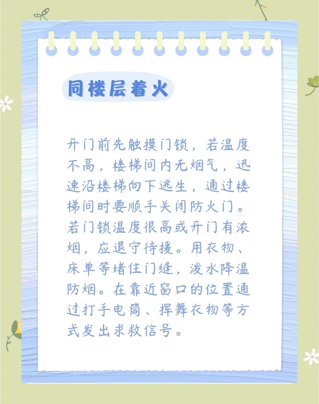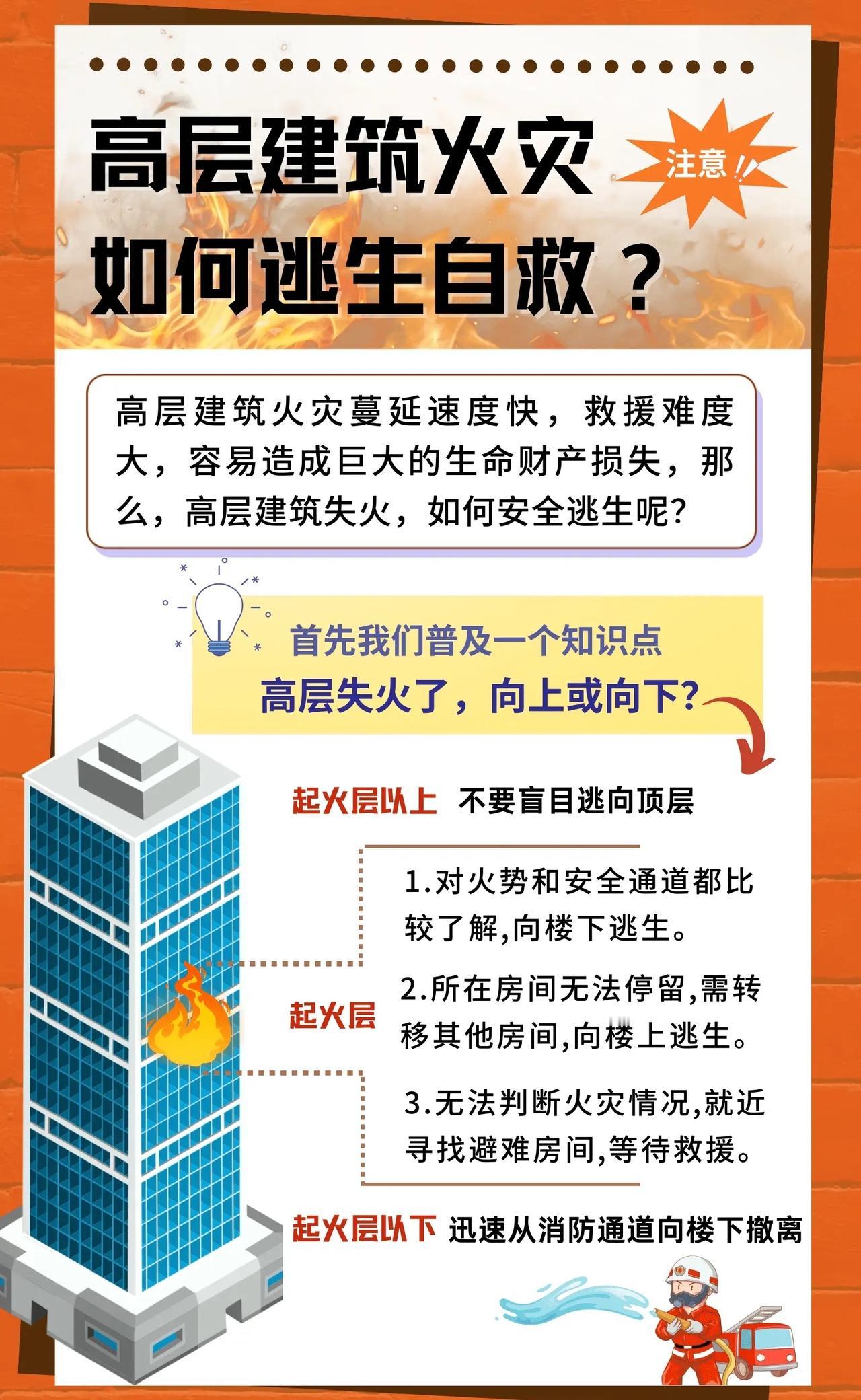 高层起火往哪跑?记住这些能救命 你永远不知道,意外和明天哪个先来。当高层楼道里响起刺耳的警报,浓烟顺着门缝疯狂涌入,耳边是玻璃炸裂的脆响和此起彼伏的呼救,30秒内,你必须做出决定:往上跑、往下跑,还是留在原地? 太多悲剧的根源,都是“想当然”的本能反应。重庆32层住宅楼火灾中,多名居民慌不择路冲下楼梯,却一头扎进每秒3-5米蔓延的毒烟里,最终倒在逃生路上;上海写字楼里,有人迷信电梯更快,结果被困轿厢,在浓烟中失去生命数据触目惊心:高层火灾80%的伤亡,都源于错误逃生方式。我们总以为“起火就往下跑”是真理,却忘了高层火灾的致命特点——3分钟烟气就能充满整栋楼,毒烟才是真正的“隐形杀手”。 深圳彭先生一家的自救案例,给所有人上了关键一课。当客厅起火、浓烟封死房门,他们没有盲目冲出去,而是立即躲进主卧关紧房门,用5条湿毛巾堵住门缝、捂住口鼻,在窗边挥舞鲜艳衣物求救。最终,门外墙壁被烧得漆黑,门内却几乎无烟,全家安全获救。这印证了消防专家反复强调的八字口诀:小火快跑,大火关门。 记住这几个场景判断,关键时刻能救命楼上起火且楼道无烟,立刻关家门沿楼梯下楼,绝不乘电梯;同楼层或楼下起火,开门见烟就果断退回,用湿毛巾、衣物堵死门缝,甚至向门板浇水降温;逃生通道被火封死,就躲进有外窗的房间,保持手机畅通,清晰告知消防员“楼栋-单元-楼层-房间号”。 别等到灾难发生才后悔,现在就能做的防护的:给家里装个智能烟感报警器,备上防烟面罩(记住“开拔套拉”四步佩戴法),再检查一遍消防通道是否被杂物堵塞。那些被我们忽视的细节,可能就是生死之间的距离。 火灾面前,没有侥幸可言。你多掌握一个逃生常识,家人就多一分安全保障。转发这篇文章,给身边住高层的朋友提个醒,也许某天,就能挽救一条生命。你家备了消防工具吗?遇到火灾会选择固守还是逃生?欢迎在评论区分享你的看法!