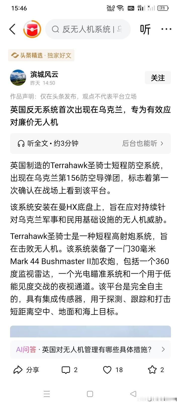 问题是个大趋势! 网络上有消息说,英国的反无人机系统第一次出现在乌克兰的防空导弹的团级部队。这本来也不算个什么重大新闻,因为西方、特别是北约的大多数国家,好像一直都在持续不断的向乌克兰提供武器装备。 问题是,现在向乌克兰的提供武器装备,已经不是传统意义上的普通武器,而大多是专门针对乌克兰战争的实际状态,研制的更有效、更专业的新武器。由于这些支持和援助乌克兰的国家的数量相对比较多,又在经济、科学技术方面比较发达和先进,这些新武器在战争中可能起的作用,如果不出意外的话,效果应该是相当好。另外,如果战争的时间拖的越长,这种有针对性研制的武器就会越多,在战争中相应的效果就更明显。 然而,与此恰恰相反的是,战争的另一方在这方面,几乎就是个空白,而且经济状况目前好像也是一团糟,别说大力研制新武器,就是目前现有武器弹药的供应,估计都存在相当的问题。