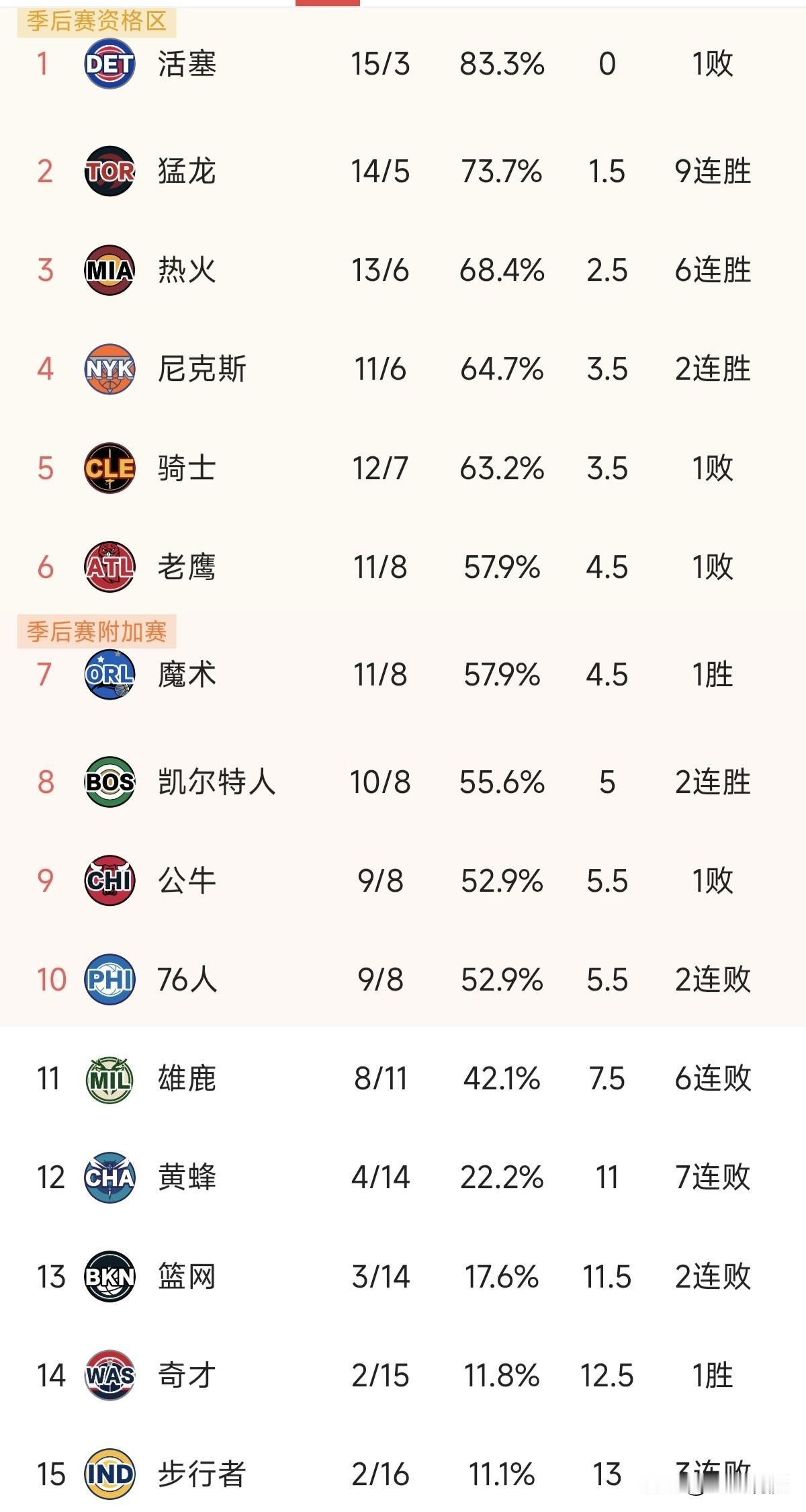 凯尔特人今天主场险胜活塞,让对手无缘14连胜同时自己也能歇口气进入东部前八,热火胜雄鹿,一个六连胜一个六连败,没有字母哥的雄鹿真的啥也不是。猛龙现在不知不觉已经有九连胜了仅次于雷霆的十连胜,我感觉他们两个最近都可能要输球了!