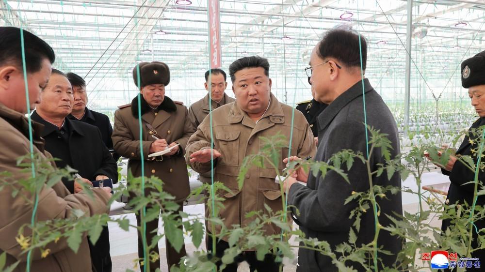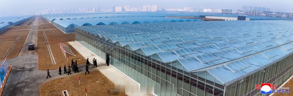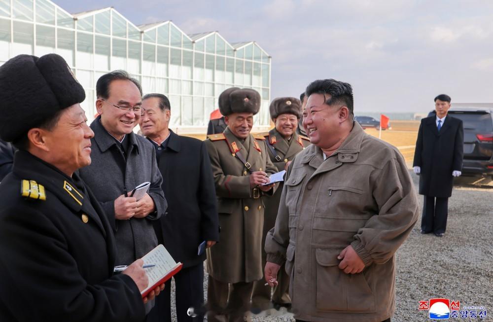 敬爱的金正恩同志视察进入完工阶段的新义州温室综合农场建设工地朝中社平壤11月27日电 朝鲜劳动党总书纪、朝鲜民主主义人民共和国国务委员长金正恩同志11月26日亲临现场指导进入完工阶段的新义州温室综合农场建设工程。朝鲜劳动党中央委员会书记赵甬元、朴正天和朝鲜劳动党中央委员会部长金才龙、金勇帅以及朝鲜劳动党平安北道委员会责任书记金哲三陪同前往。参加建设工程的人民军部队指挥员、白头山英雄青年突击队和设计及有关部门干部在场迎接金正恩同志。金正恩同志察看半球形玻璃水培温室、玻璃土壤温室等基本建筑项目和农场地区干线道路、堤坝建设工地等各处,具体了解了工程进展情况。人民军部队官兵和青年突击队员们日夜奋战在朝向光荣的党代表大会的创造斗争一线。由于有他们的劳动贡献,新义州温室综合农场建设工程大有进展,工程进度达到总建筑工程量的97%,营造农场地区园林景观和防风林的周边环境整理作业完美结束,自然公园和贮水池场地清理作业完成率分别达97%和87%,营造数百公顷面积草坪作业进度达95%,农场地区干线道路和温室区内铺路作业进入72%阶段,温室号栋、蔬菜科研中心、旅馆、服务设施、托幼等公共建筑和数百套住宅电力及供排水系统的试运行正在进行中。金正恩同志高度评价说,按照党的决议,该地区所有开发项目工程都做得非常讲究实效,完全符合最佳化、最优化原则。尤其是,公路建设和堤坝永久化区域景观营造等大面积环境整理作业质量水平很高,突出地区固有特色,真是尽善尽美。金正恩同志对曾被称为不毛之地的该岛屿地区名副其实地转变成为能够牵引地方发展和地区人民物质文化生活改善的潜力雄厚的黄金岛表示极大满意。金正恩同志指出,我们正在亲眼目睹绝不可忽视的地区的沧桑巨变。全面振兴的宏伟构想和任务逐一落实到位,创造财富不断增加。这固然是值得高兴的事,但我们党更珍视的是青年们在这一过程中成长为爱国大树。将肩负朝鲜未来的新一代成长为首先为祖国尽忠、在考验中体会到搞革命的意义的爱国者大部队,这才是世上亿万财宝都无可比拟的我们党、国家和人民的喜悦和骄傲。金正恩同志强调完成项目工程的一系列任务后,阐明了农场运营准备及经营管理方面的途径问题。(完)