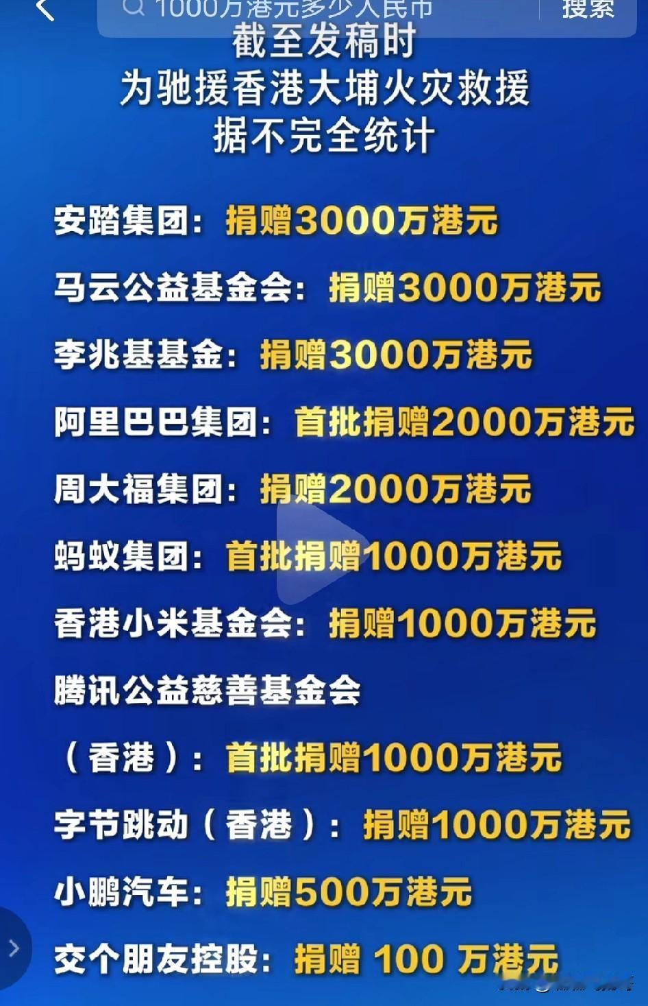 香港回归祖国的好处来了! 此次香港大埔火灾,损失惨重,祖国的不少企业纷纷伸出