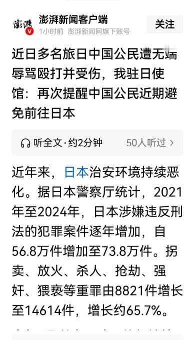 /此刻,日本关西机场里,挤满了焦急回国的中国面孔,他们都在盯着大屏幕,希望能够看到可以飞回祖国的航班信息,前几天国家三番五次的提醒,全当耳旁风,还说什么钱是自己的,爱怎么花就中怎么花,谁都管不着。 机场大厅里的空气都透着焦灼,有人拖着行李箱在值机柜台和信息屏之间来回奔波,有人靠着墙角刷着机票 APP,屏幕上的价格一路飙升,之前几百块就能拿下的单程票,现在翻了三四倍还显示 “无余票”,偶尔弹出的转机航班,不仅要绕路十几个小时,还得额外掏几千块。 充电口前挤满了人,大家的手机电量都在告急,却没人舍得关掉购票软件,生怕错过任何一个航班动态,和出发时晒美食、拍风景的潇洒模样比起来,此刻的狼狈显而易见。 没人愿意陷入这种困境,但这一切其实早有预警,不是国家突然发难,而是风险信号已经持续释放。 早在 11 月中旬,外交部、文旅部、教育部还有驻日本使领馆就联合发布了出行预警,明确建议近期别去日本旅游或留学,就连中国香港特区政府也跟着更新了旅行提示,让计划去的人提高警惕。 可当时不少人觉得这是 “小题大做”,在社交平台上直言 “旅游自由不容干涉”,还有人说 “花自己的钱看自己的风景,国家管得太宽”,完全没把这些提醒放在心上,一门心思打包行李往日本跑。 他们不知道的是,国家的提醒从来都不是空穴来风,背后是实实在在的数据和风险。截至 11 月 24 日,已经有 12 条中日航线彻底停航,涉及名古屋、福冈、札幌、大阪这些热门目的地,未来一周的航班取消率还要涨到 21.6%,创下一个月来的最高值。 而关西机场作为这次的重灾区,几条主流航线的取消率高得吓人,天津飞关西的航班取消了 65%,南京出发的接近 60%,就连上海、广州这些大城市的航班,取消率也超过了 30%。 各大航司早就开始调整运力,要么直接关闭部分航班的预订,要么减少每周的飞行班次,北京飞札幌的航班原本要加开到每天一班,最后还是改成了每周四班,成都、武汉、西安等城市的不少航班,也都悄悄停售了。 更让人揪心的是,航班取消只是一方面,日本当地的安全环境也在持续恶化。驻日大使馆 11 月 26 日刚发布的消息显示,最近几个月针对中国公民的歧视类案件越来越多,不少人在日本街头遭到无端辱骂甚至殴打,受伤后还没人负责,多起案件至今没侦破,施暴者依然逍遥法外。 而且日本的整体治安状况也在下滑,2021 年到 2024 年,涉嫌违反刑法的案件从 56.8 万件涨到了 73.8 万件,杀人、抢劫、强奸这些重罪更是增长了 65.7%,从 8821 件冲到了 14614 件,这样的环境下,就算顺利抵达,旅游的安全感也早就打了折扣。 可能有人会说,以前去日本也没遇到过这些问题,这次只是运气不好。但熟悉情况的人都知道,关西机场早就有过 “孤岛” 的先例,之前台风 “飞燕” 登陆时,一艘油轮撞坏了机场的联络桥,整个机场被海水倒灌,3000 多名旅客被困,其中就有 750 多名中国公民,最后还是中国驻大阪总领馆连夜协调了 15 辆大巴,分批次把大家转移到市区,还帮忙协调机票改签和签证延期。 那次的教训还没过去,现在又叠加了航班调整和安全风险,国家反复提醒,其实就是不想让大家重蹈覆辙,可总有人觉得 “倒霉事不会轮到自己”。 说起来,中国游客一直是日本旅游业的 “金主”,2025 年前三季度,光是中国内地就有 748.72 万人去日本旅游,同比增长了 42.7%,直接超过韩国成了日本第一大游客来源地。 而且中国游客的消费力特别强,2024 年在日本的购物支出占旅游总花费的 43.1%,人均花 11.9 万日元购物,比其他国家游客高出一大截,日本东京迪士尼、各大药妆店都指着中国游客撑场面。 可就算是这样,也不代表就能无视风险,毕竟旅游的前提是安全,花钱是为了开心,不是为了在异国他乡焦虑地抢机票、提心吊胆防意外。 现在关西机场里的这些人,可能已经开始后悔当初没听提醒。他们或许没想到,自己以为的 “消费自由”,在客观风险面前如此脆弱,钱能买到机票和酒店,却买不到航班不取消的保障,也买不到绝对的安全。 国家从来没有阻止大家消费,只是在风险来临前敲个警钟,就像家人提醒出门带伞一样,不是多管闲事,而是怕你淋雨。 那些之前吐槽 “国家管太多” 的人,此刻对着大屏幕上寥寥无几的航班信息,对着手机里暴涨的机票价格,对着不确定的安全环境,大概也能明白,国家的提醒从来都不是限制,而是最实在的保护。