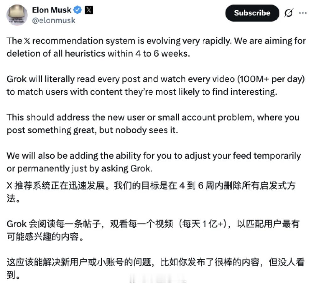 AI会最先替代哪些岗位马斯克在公司裁员方面是带了风气的,现在又开始带节奏了。 X 上解雇了负责内容安全与推荐算法的工程团队近 90% 的成员(从超 100 人缩减至不足 10 人),将移除传统的启发式推荐算法,由Grok 接手全量内容的兴趣匹配与审核。AI 将优先替代规则清晰、重复性高、数据密集型的“执行类”与“信息中转类”岗位:第一类是标准化内容与创意执行岗: 基础文案编辑、初级广告设计师、计算机图形艺术家、翻译等。第二类是数据处理与流程执行岗: 初级会计、数据录入员、行政文员、基础客服。第三类编程支持岗: 标准化组件开发的初级程序员。涉及“照搬”、“套路化”以及“重复执行”的工作,AI 在效率和准确度上均优于人类。目前难以取代具备共情能力、审美判断、复杂决策以及深层基础知识构建的能力。老马这人对打工狗来说,绝对不是善茬😂