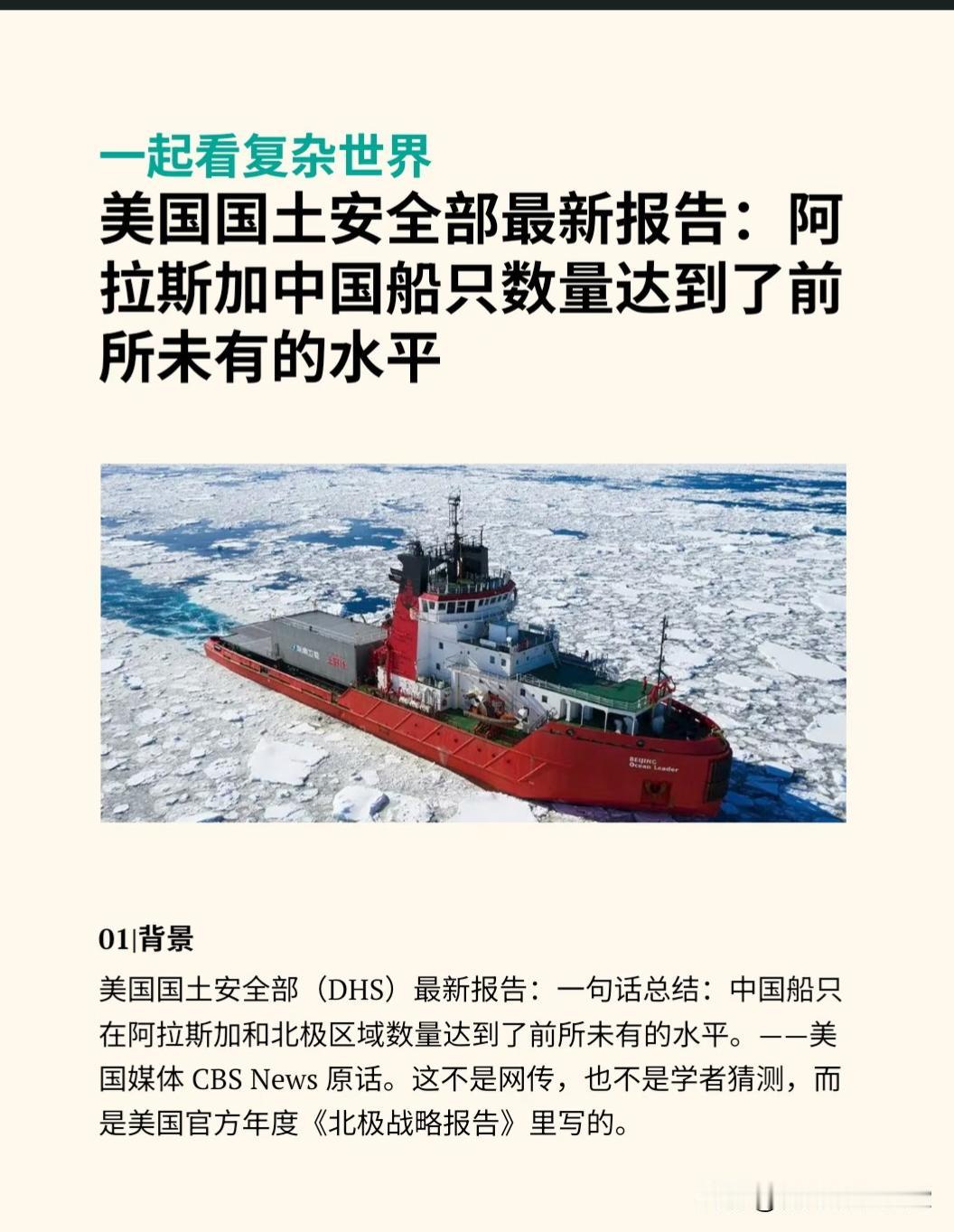 美国白皮书:阿拉斯加出现大量中国船只 。谁先进入了北极,谁就优先掌握未来几十年的北极资源。 从航道、资源到科研,越来越多的目光盯着阿拉斯加。但这片冰冷的海域,到底会属于谁的未来?你怎么看?