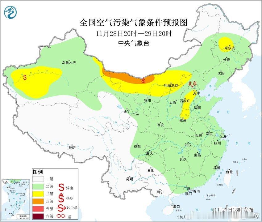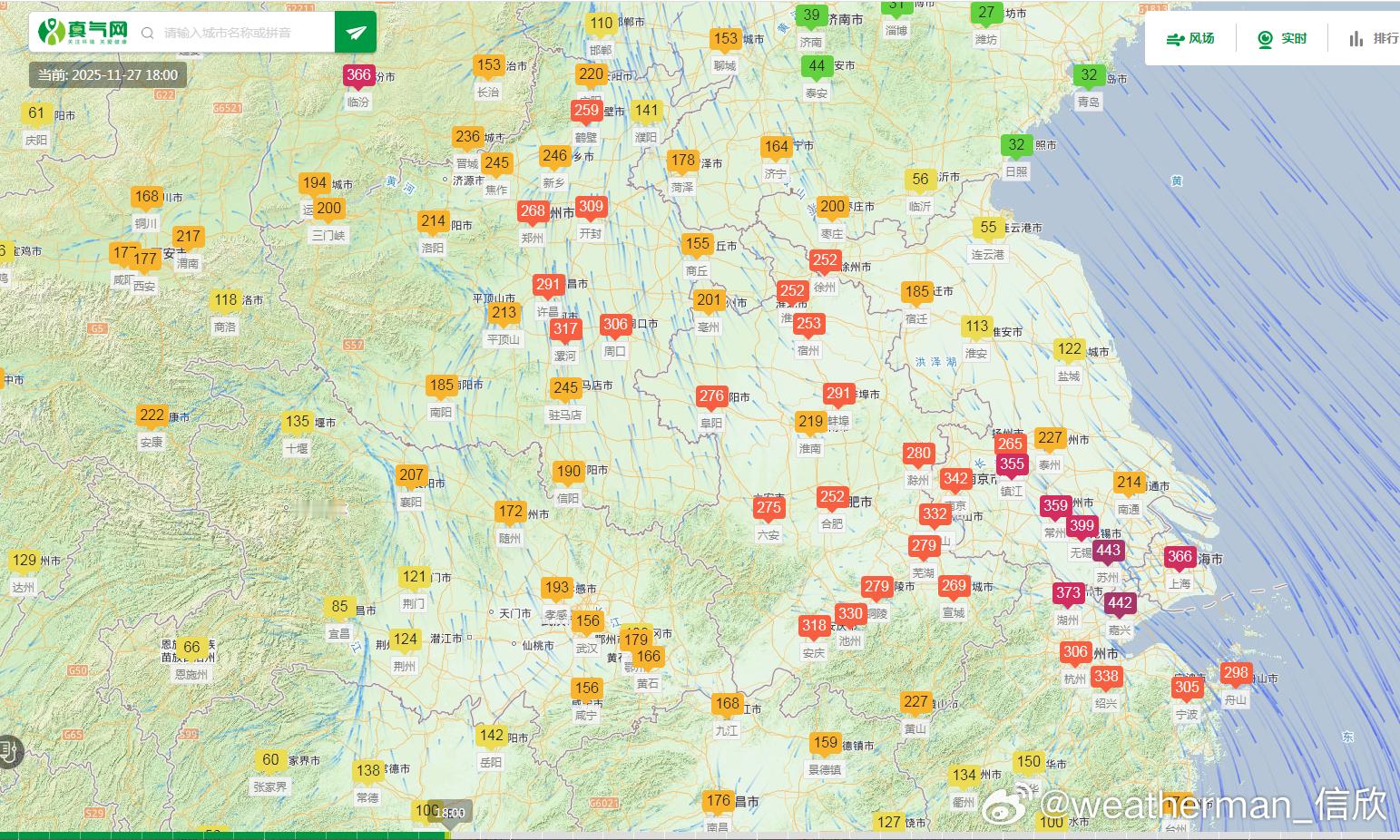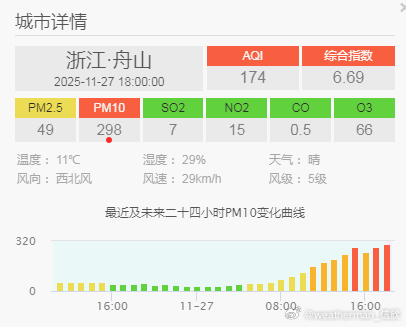 【沙尘】今天下午沙尘继续向东南推进。其中浙江舟山PM10也明显上升,达到了298,但PM2.5值不高,为49。因此为典型的沙尘输入导致的污染。今晚到明天,近地面北风南下转为东北风(地转偏向力),沙尘可能沿着东南沿海一路南下减弱稀释。到福建台湾甚至广东东部时,可能不会有明显的沙尘,但PM10依然可能会出现超100的情况。另外在西北上游,因为还有大风天气,会在内蒙古西部、甘肃西部等地再次引发新的沙尘起来,之后沿着西北风,向宁夏陕西山西河北等地传输。但这次起沙的量应该弱于26日,沙尘的强度和影响范围,也弱于26-27日的这轮过程。