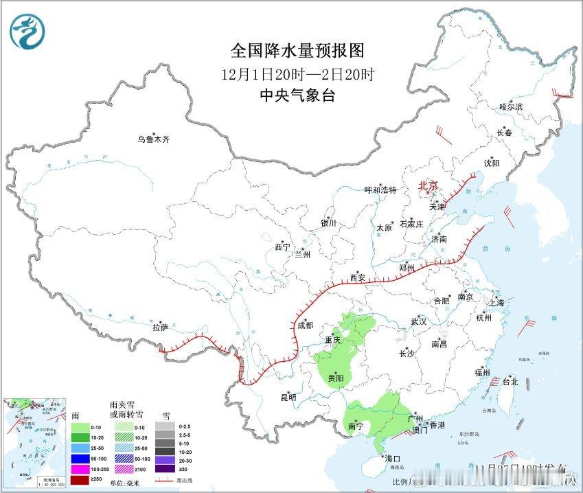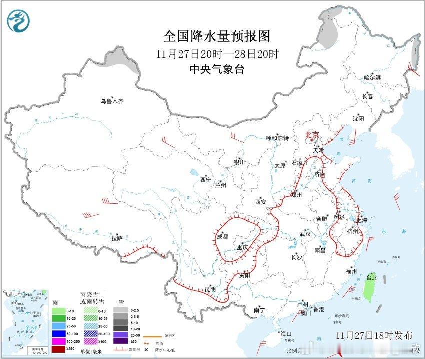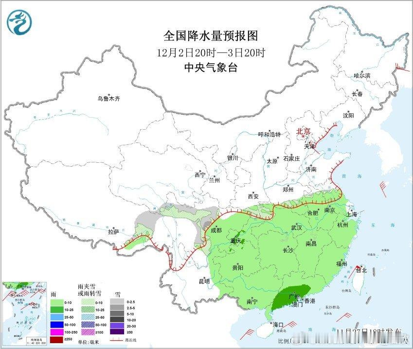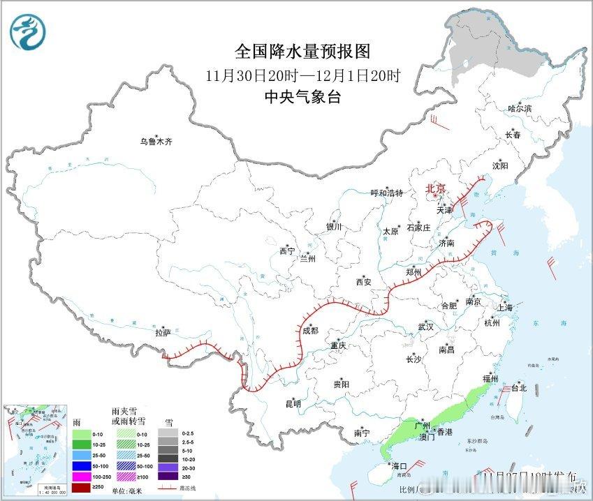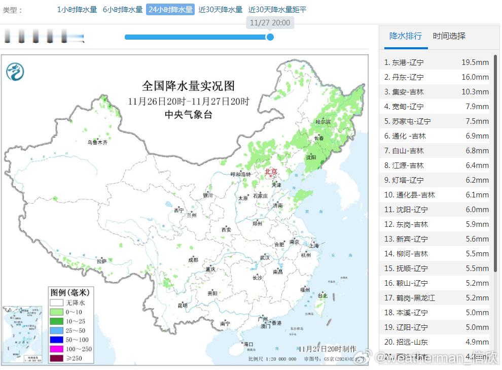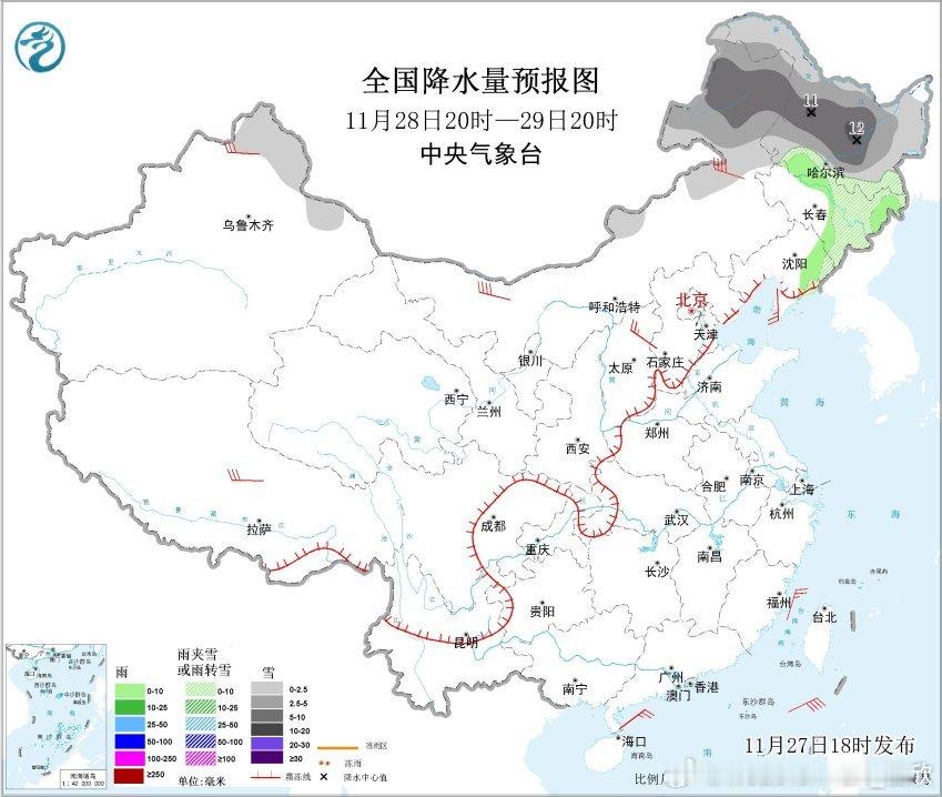 【降水】昨晚到今天,我国降水主要在东北地区。明天东北的降水也明显缩减,我国可能超过900多万平方公里的国土无降水。这将是下半年以来降水最少的一天,估计会看到小时降水榜,凑不齐10个甚至凑不齐5个的情况。看看会不会在某个时次出现全国无降水的情况。未来东北降雪依然比较频繁,重点在11月29日,内蒙古东部和黑龙江中北部可能有中到大雪,局地暴雪。南方干燥的局面在11月底会持续。不过12月初,暖湿气流开始增强,配合冷空气南下,12月2日晚-3日南方可能出现一轮较大范围的降雨,雨不大,但能润润燥。