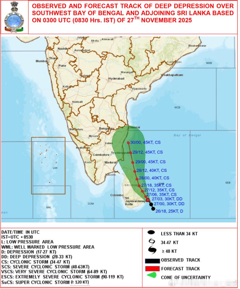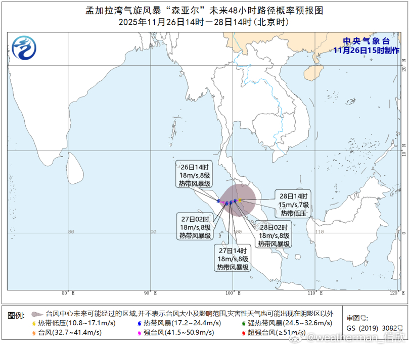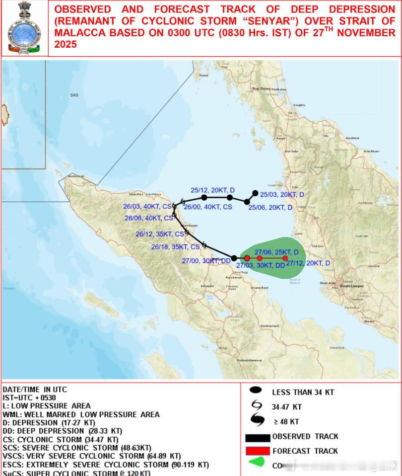 【热带气旋】目前除了南海上的台风天琴,在北印度洋还有两个深低压。昨天在马六甲海峡里生成了一个气旋风暴,森亚尔,今天减弱为深低压。在这个位置形成气旋风暴也是难得一见。另外在斯里兰卡附近的深低压(原扰动96B),从云图看已经有清晰的螺旋结构,今天晚些时候,估计就会编报为气旋风暴。未来主要影响斯里兰卡和印度东南部的泰米尔纳德邦。