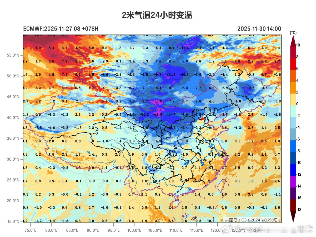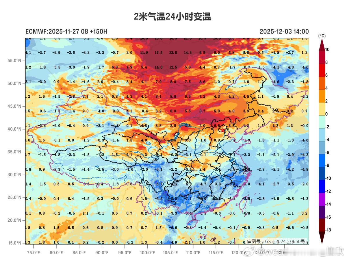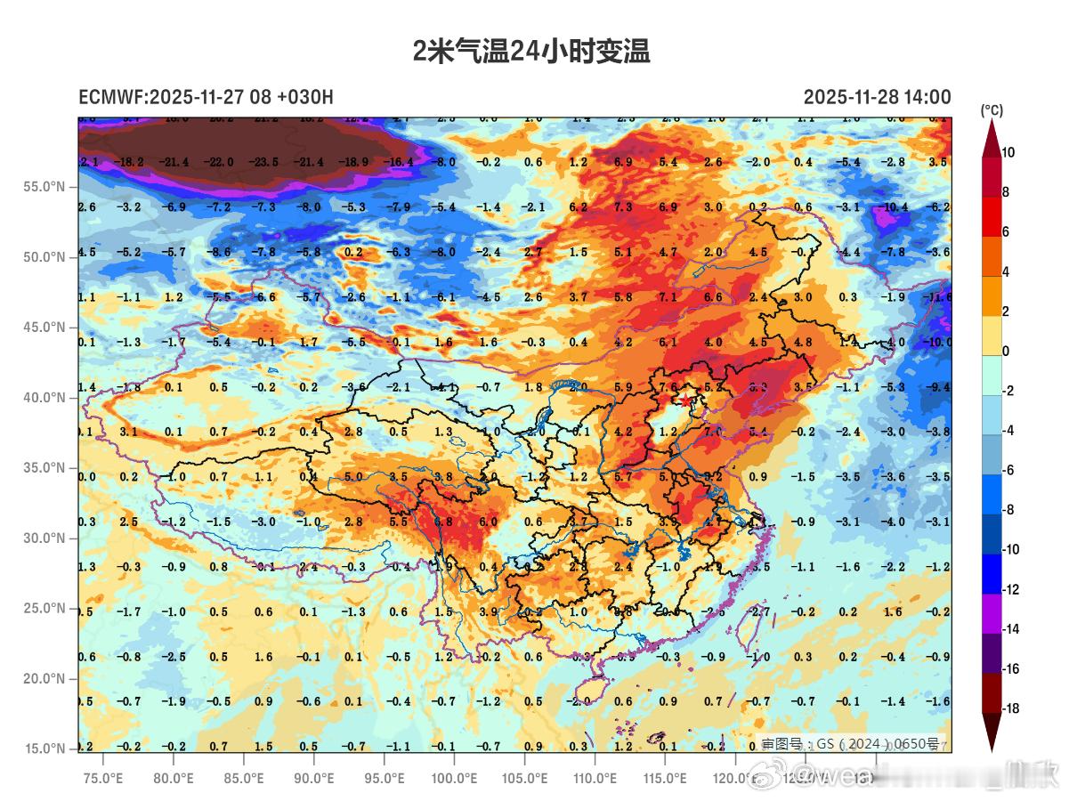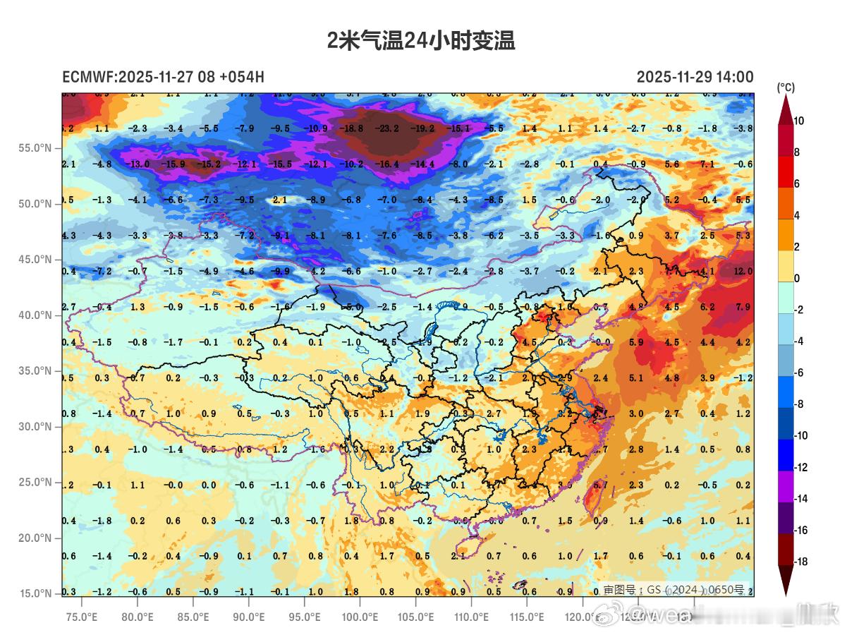 【气温——东北起伏最大】今天东北降温之后,明天又迎来明显回升。沈阳今天14时为零下2℃,明天下午预计最高7℃。11月29日东北气温将达到近期高点,之后在冷空气接连影响下,一路下降。对比11月29日和12月2日最高气温,沈阳降18℃、长春降16℃、哈尔滨降14℃。从明显偏暖变明显偏冷,并创立冬后气温新低。短期内,冷空气对长城以南地区的影响相对弱,未来2天最高气温20℃线会不断北扩,挺进到河南。郑州29日最高可达22℃,如果兑现,将打破当地11月下旬最高气温纪录(21.7℃,2010-11-29)。不过12月初因为冷空气影响,气温也会大幅下降,12月2日郑州最高降至8℃,相比11月29日高点,降幅有14℃。总体来看,30日的冷空气重点影响内蒙古和东北。12月初的冷空气会波及到中东部的大部地区。南方在12月2-3日还有阴雨,最高气温也会有明显的下降。比如武汉11月30日最高22℃、12月3日最高10℃。南京11月30日最高21℃、12月3日最高10℃。杭州11月30日最高23℃、12月2日最高13℃。