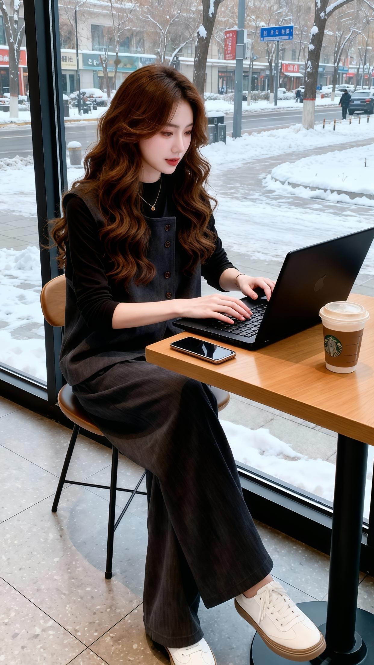 当然是黑色打底毛衣+外套黑色大衣+灰色连体袜不仅仅时尚还保暖