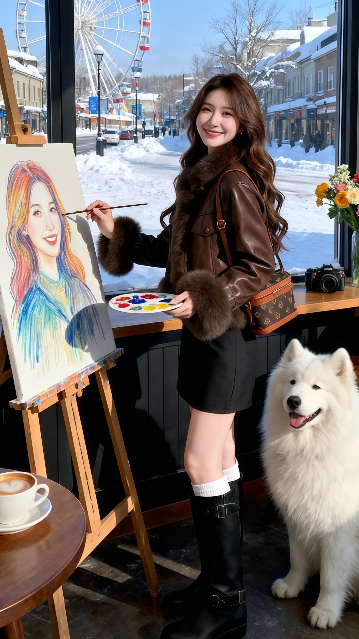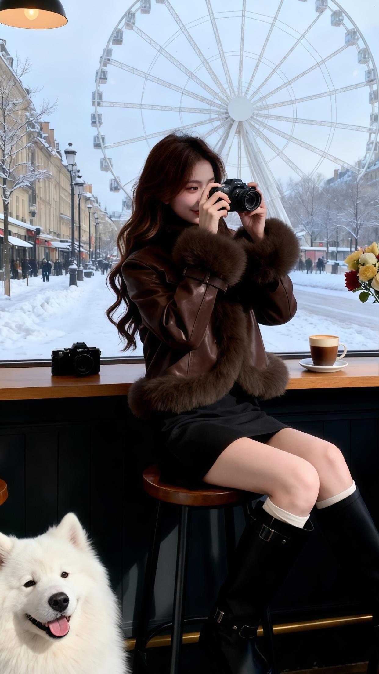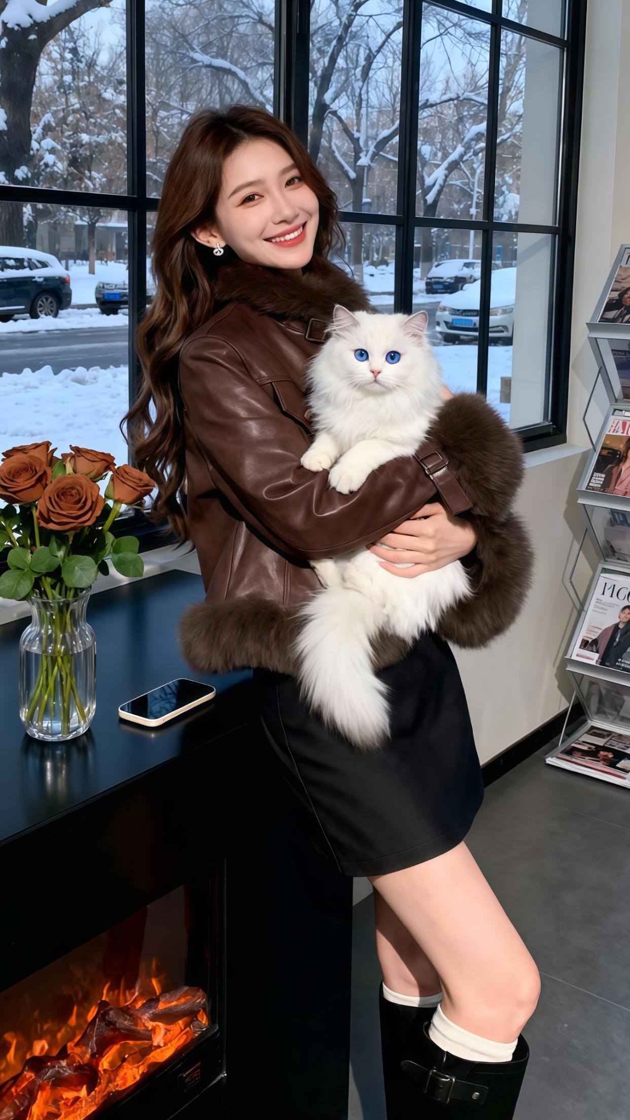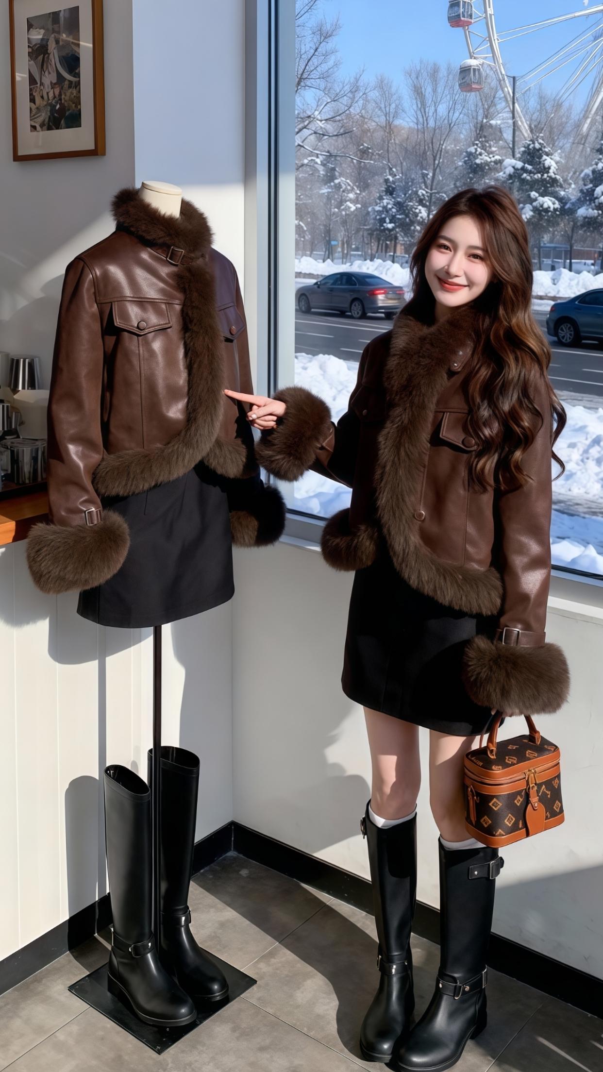 降温这么穿,温暖时髦全都有!这一组很适合怕冷的姐妹们,宽松的皮毛一体外套搭配直筒