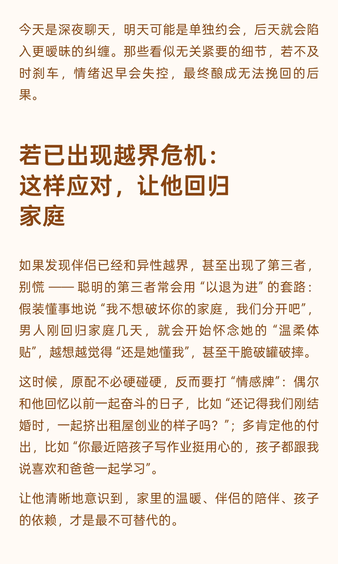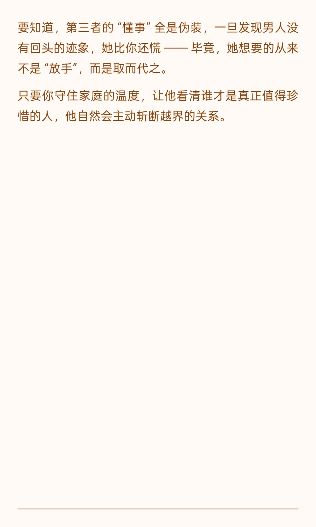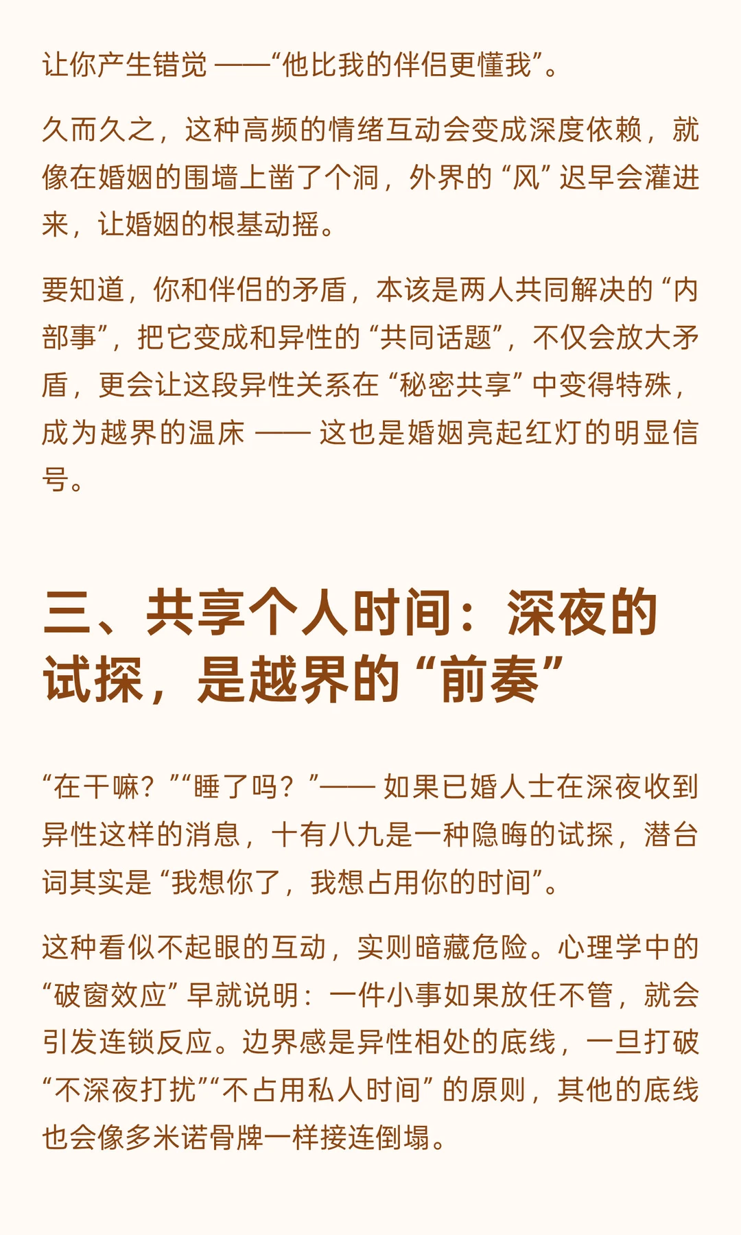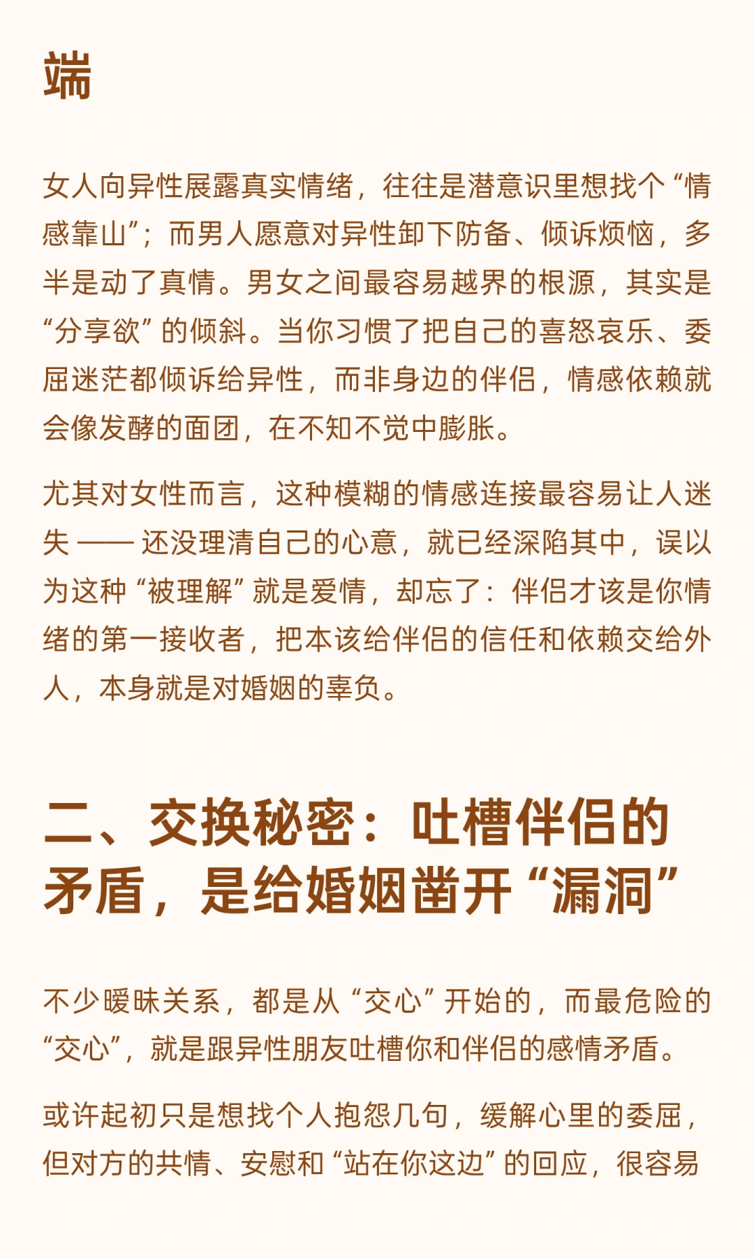 异性相处,最忌讳的是模糊边界 —— 有些看似平常的互动,实则早已越过了 “普通朋友” 的底线。 就像我老公说的:“异性之间,一旦分享这三样东西,就意味着越界的开始,对婚姻更是隐形的伤害。” 1️⃣倾诉情绪:把喜怒哀乐交给异性,是情感依赖的开端 2️⃣交换秘密:吐槽伴侣的矛盾,是给婚姻凿开 “漏洞” 3️⃣共享个人时间:深夜的试探,是越界的 “前奏”