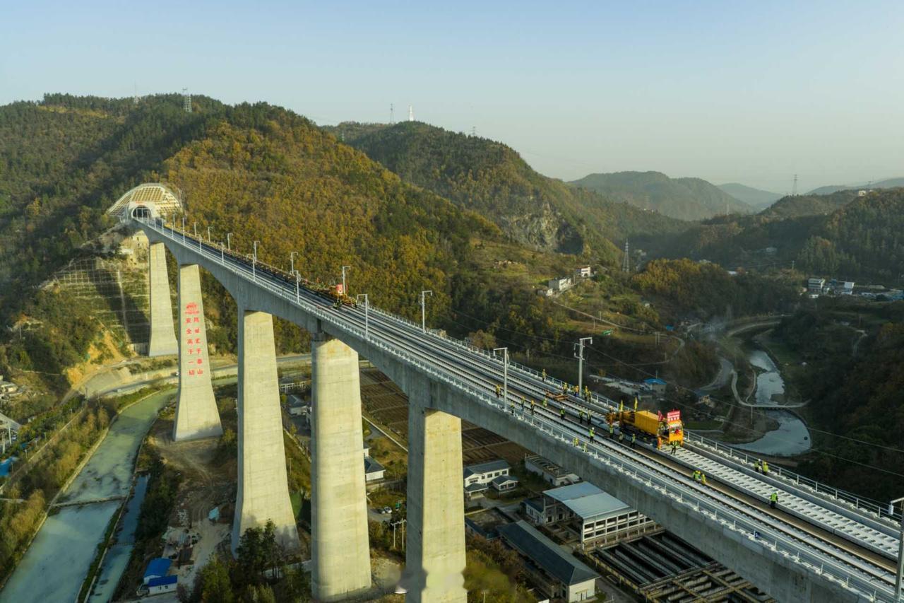 11月27日,随着最后一对500米长钢轨在神定河大桥上平稳铺设就位,西安至十堰高速铁路全线铺轨施工圆满完成。西十高铁自西安东站引出,经蓝田、商洛西、山阳、漫川关、郧西站,接入既有十堰东站,正线全长255.7公里,设计时速350公里。 西十高铁途经西安、商洛、十堰三市,预计2026年6月开通,将与现有的汉十高铁共同组成西武高铁。以往武汉至西安需绕行郑州,总行程约1059公里;西十高铁通车后,线路总长将缩短至716公里,直接减少约343公里,武汉至西安的铁路运行时间将由目前的5小时缩短至2.5小时左右。(湖北日报)